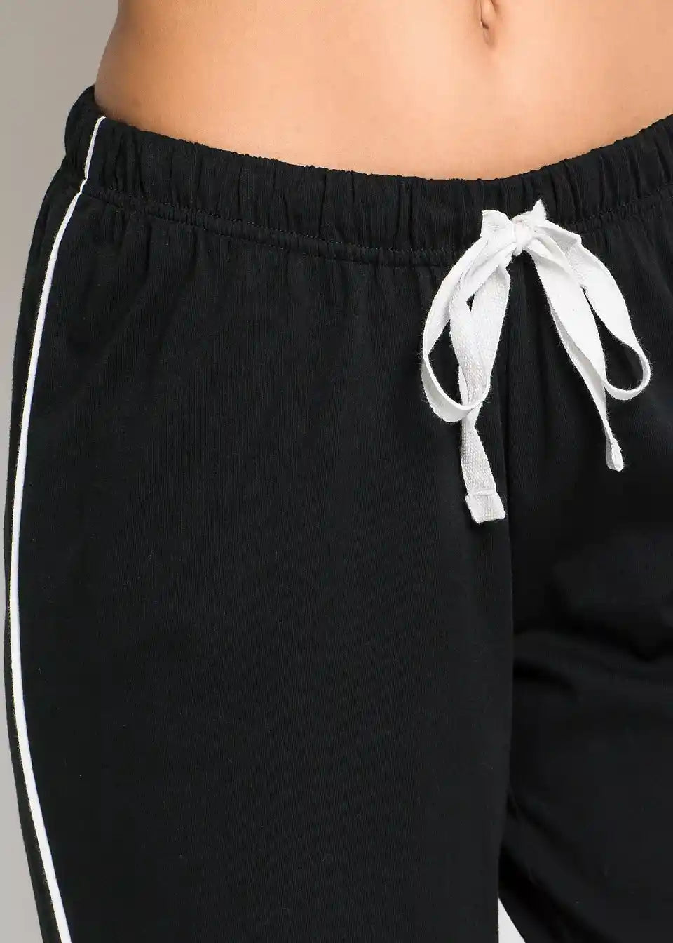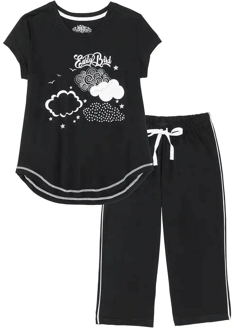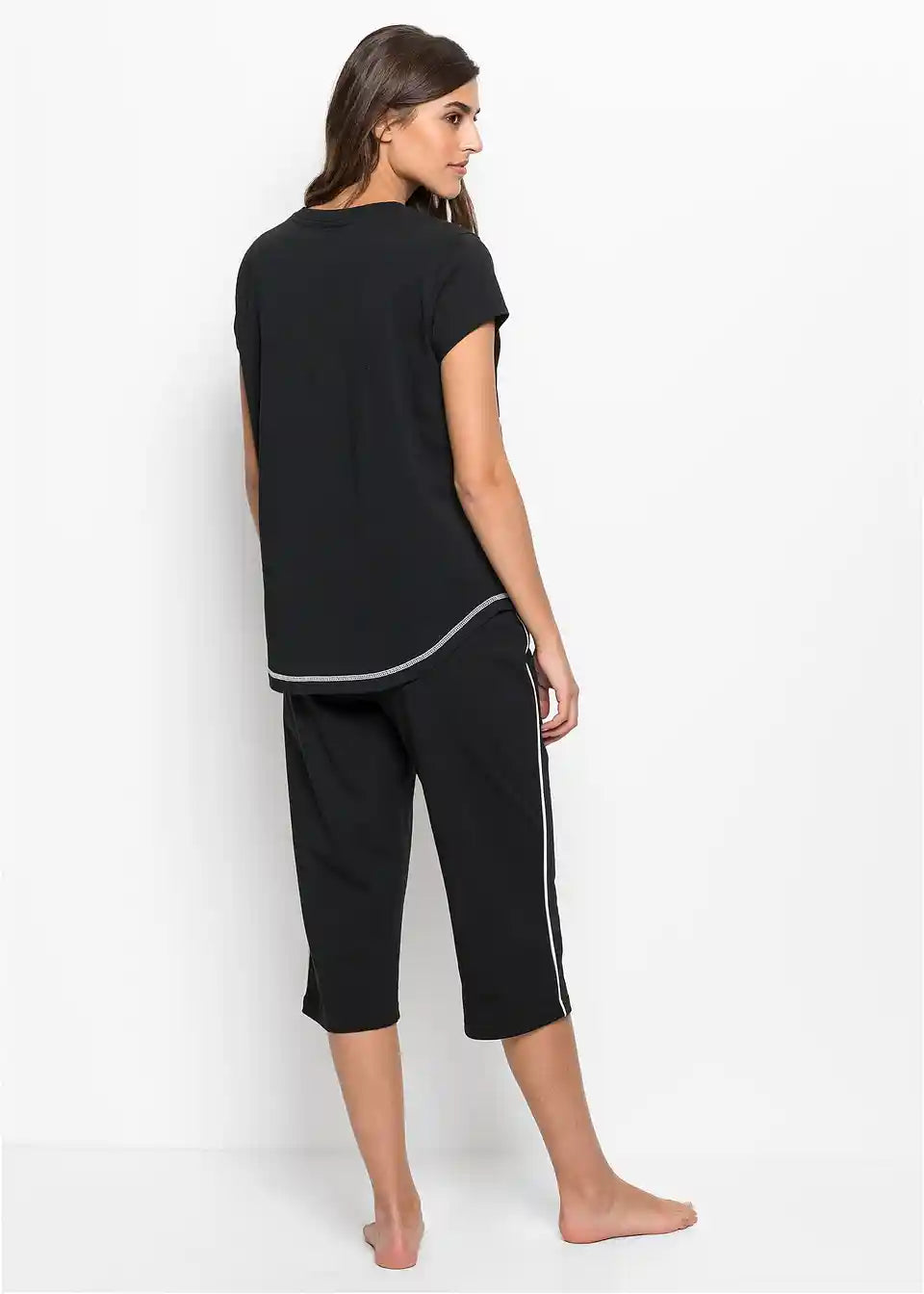 Sodobna Capri pižama navdušuje s svojo prijetno mehko organsko bombažno tkanino. Kontrastni šivi na močno zaobljenem robu in črta na stranskem šivu hlač poskrbijo za športen videz. Privlačen potisk na sprednjem delu majice zaokroži videz pižame.