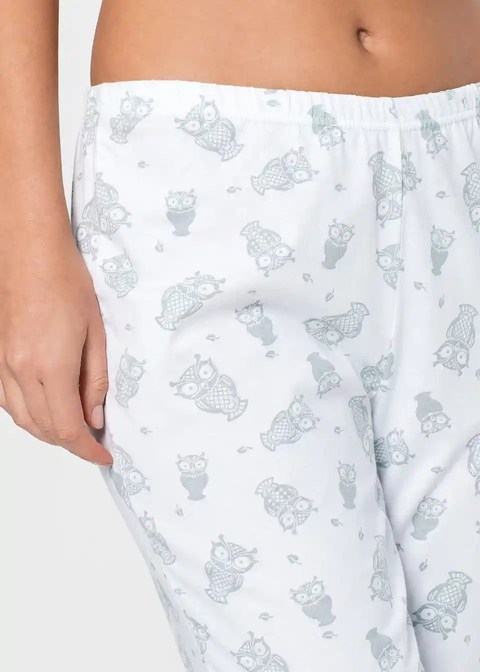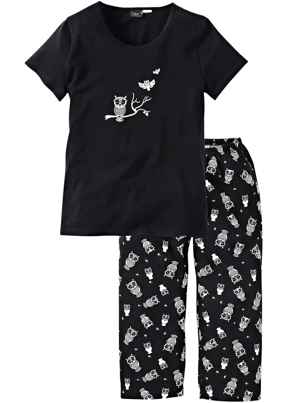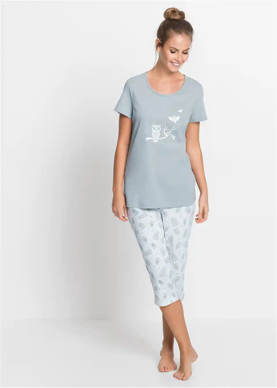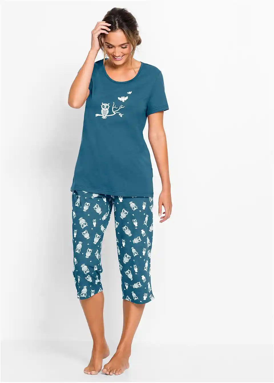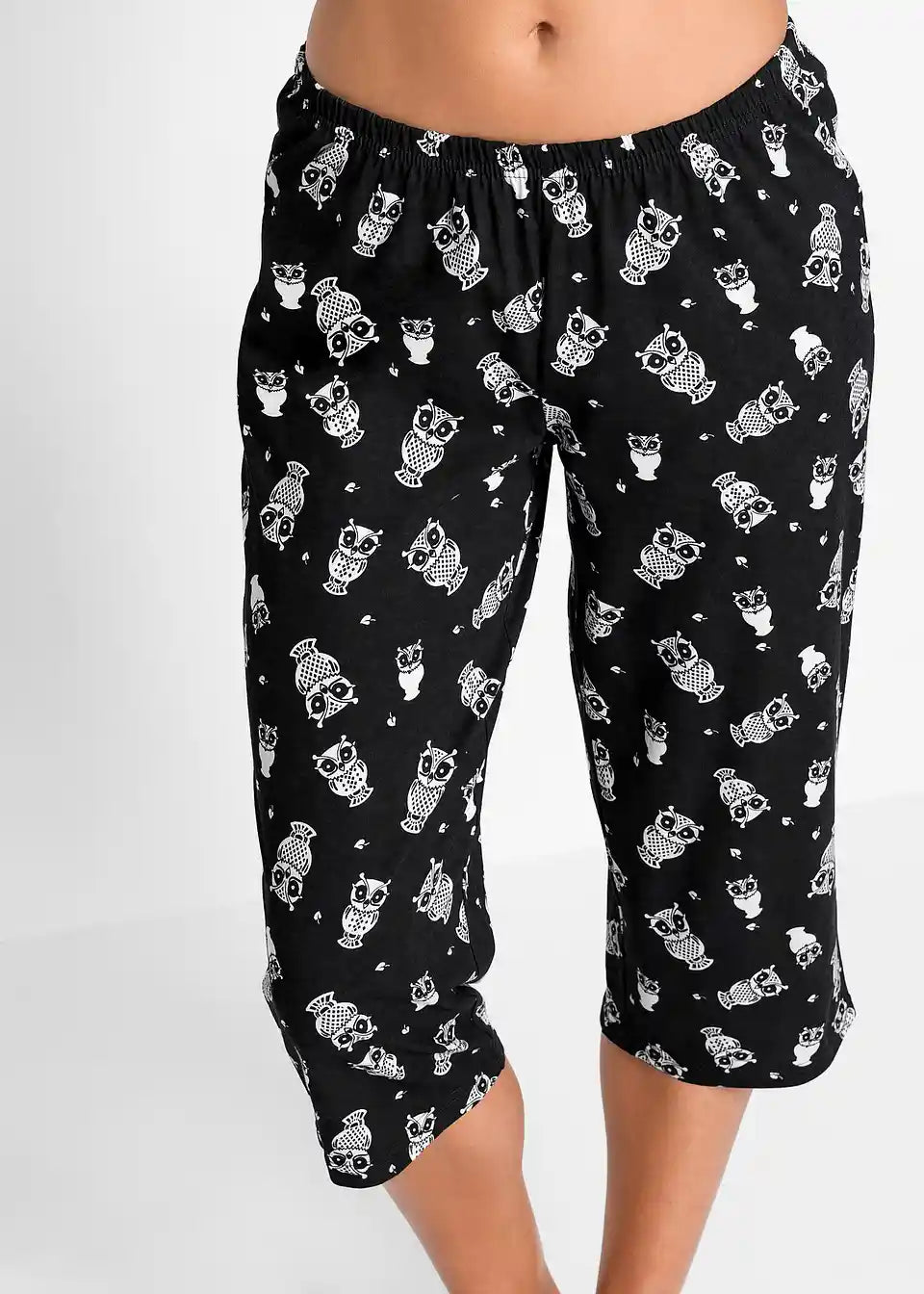 Za sproščeno spanje je potreben outfit, ki zagotavlja udobje. Ta sproščena Capri pižama znamke bpc zagotavlja veliko svobode gibanja, hkrati pa prepriča s prikupnim in modnim videzom. Čudovit potisk sove na Capri hlačah in majici s kratkimi rokavi je zelo trendi in preprosto vzbuja dobro voljo. Pižama je na voljo v različnih čudovitih barvah.