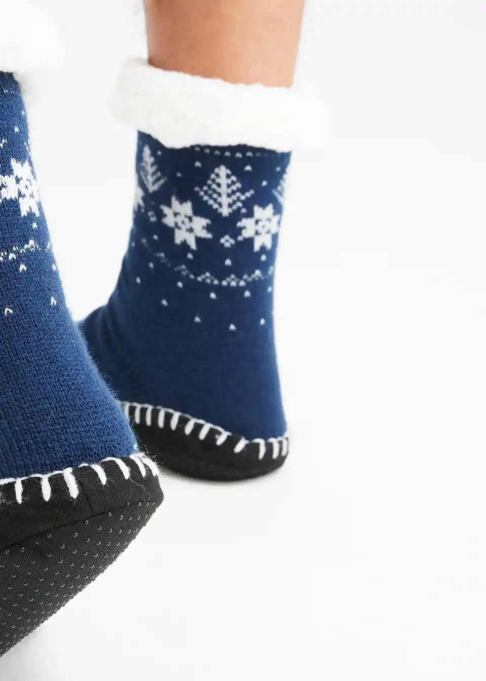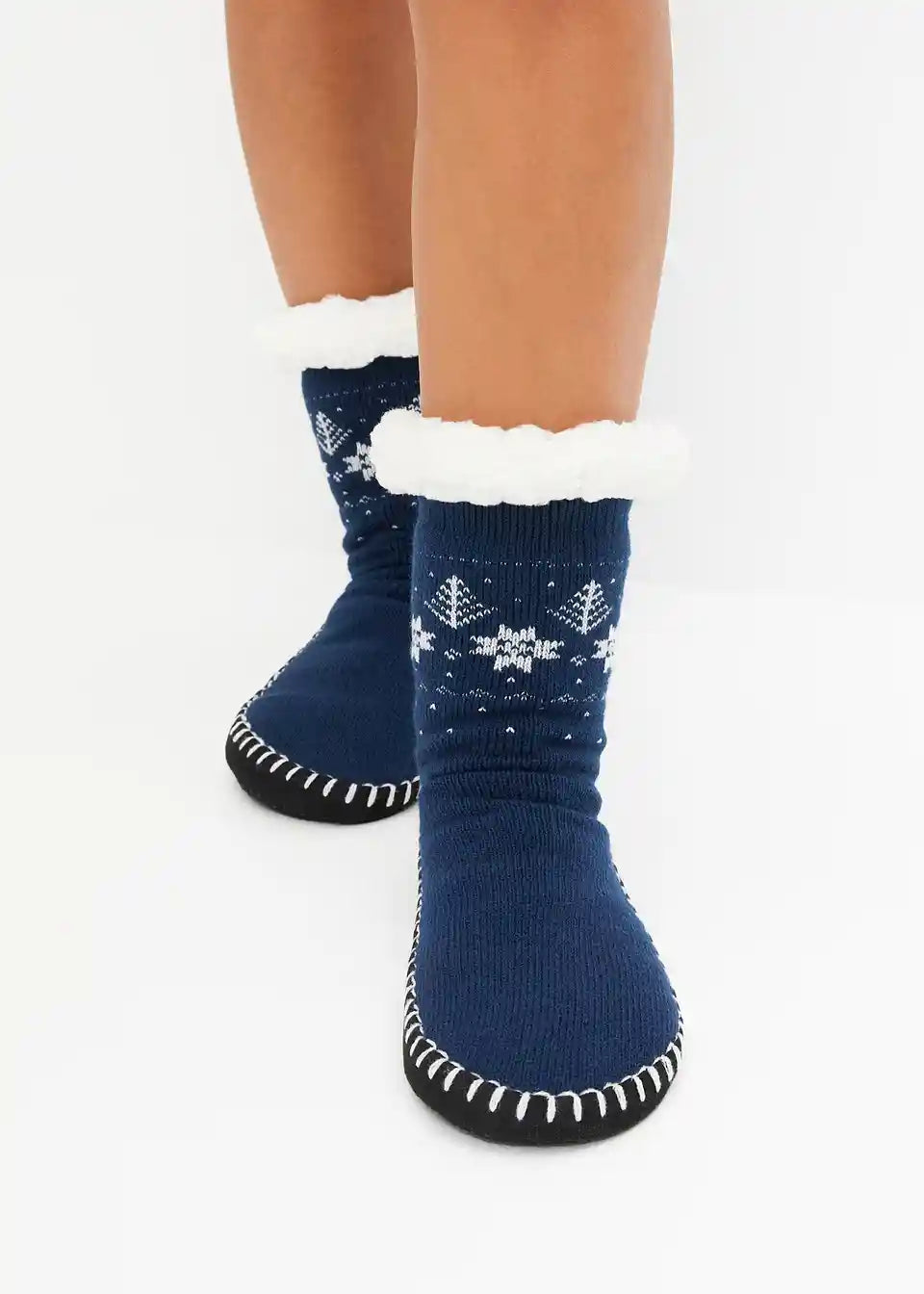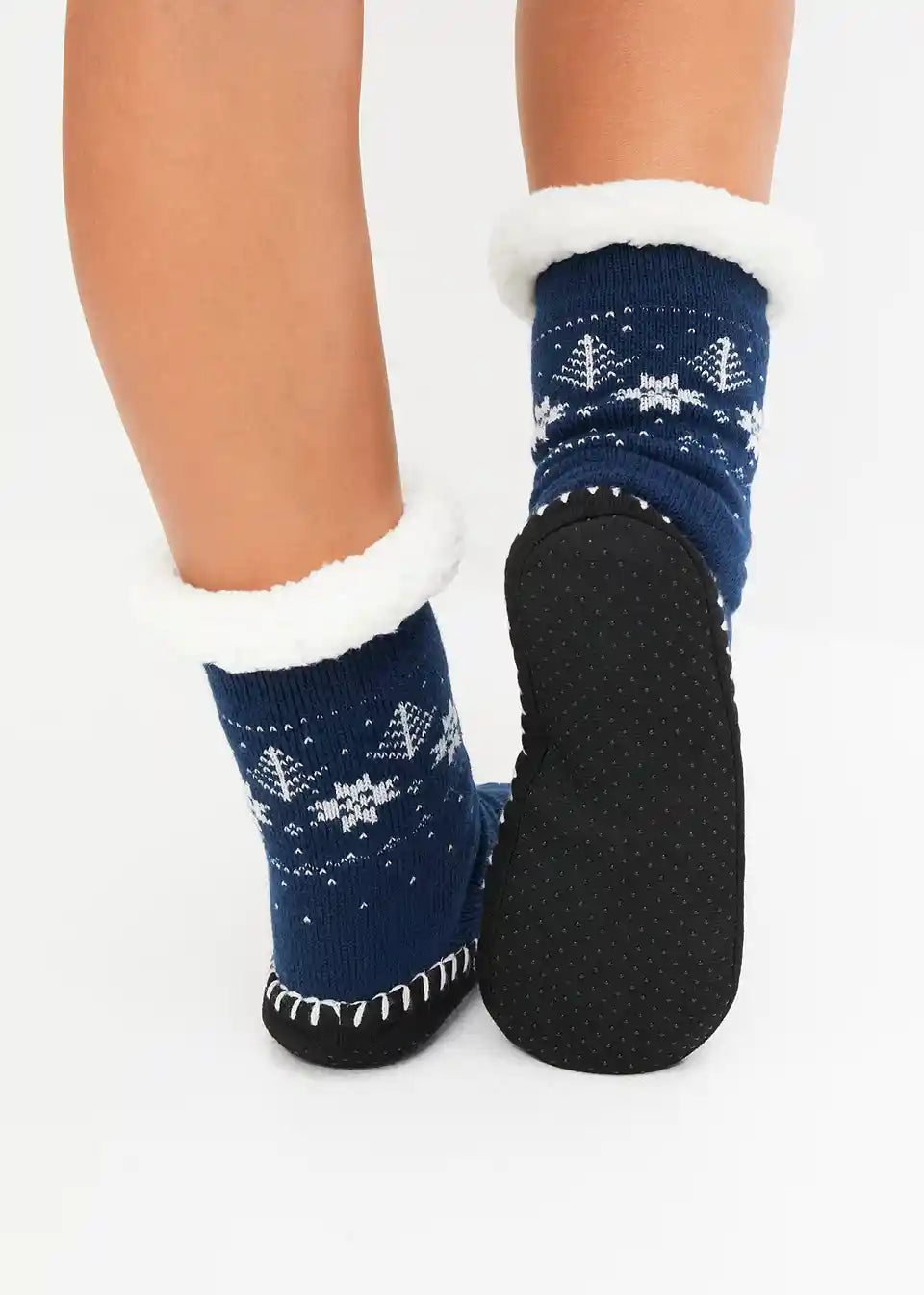 Hišne nogavice s protizdrsnim podplatom in podlogo iz umetnega ovčjega krzna
