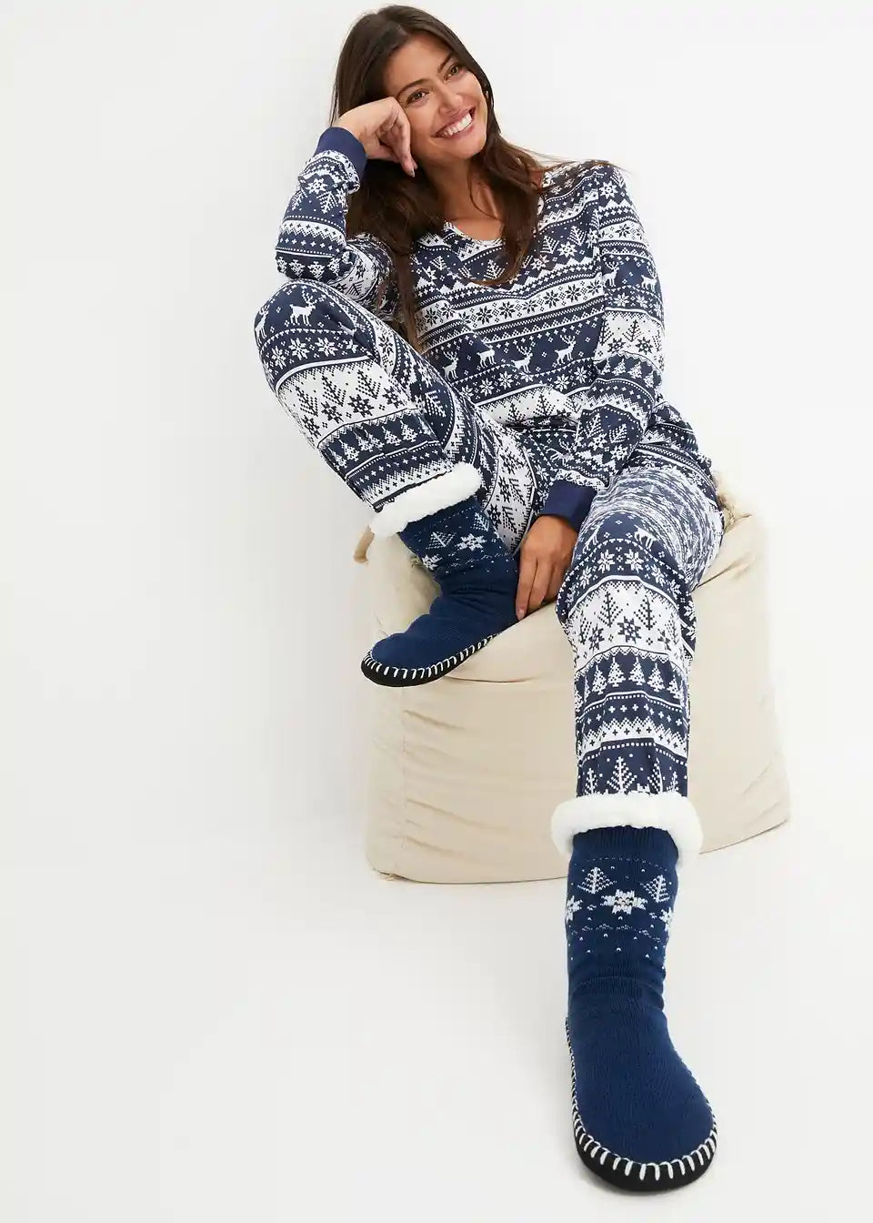 Udobne hišne nogavice z anti-zdrsnim podplatom in teddy podlogo