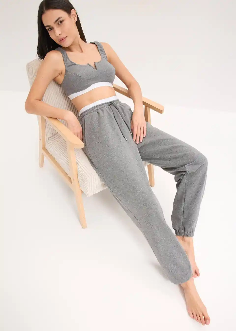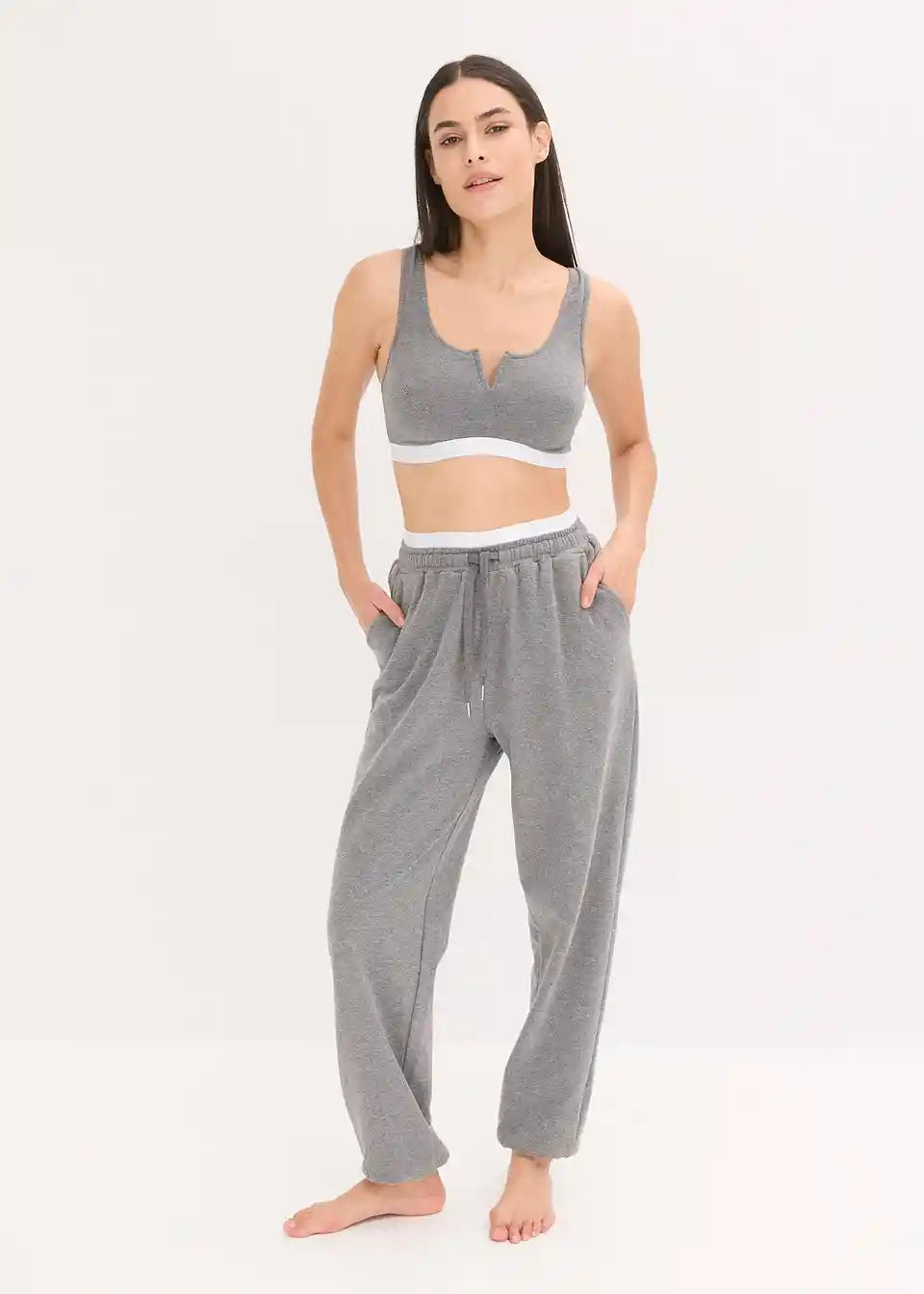 Modno udobne hlače iz trikoja s patentno obrobo in trakom za zavezovanje