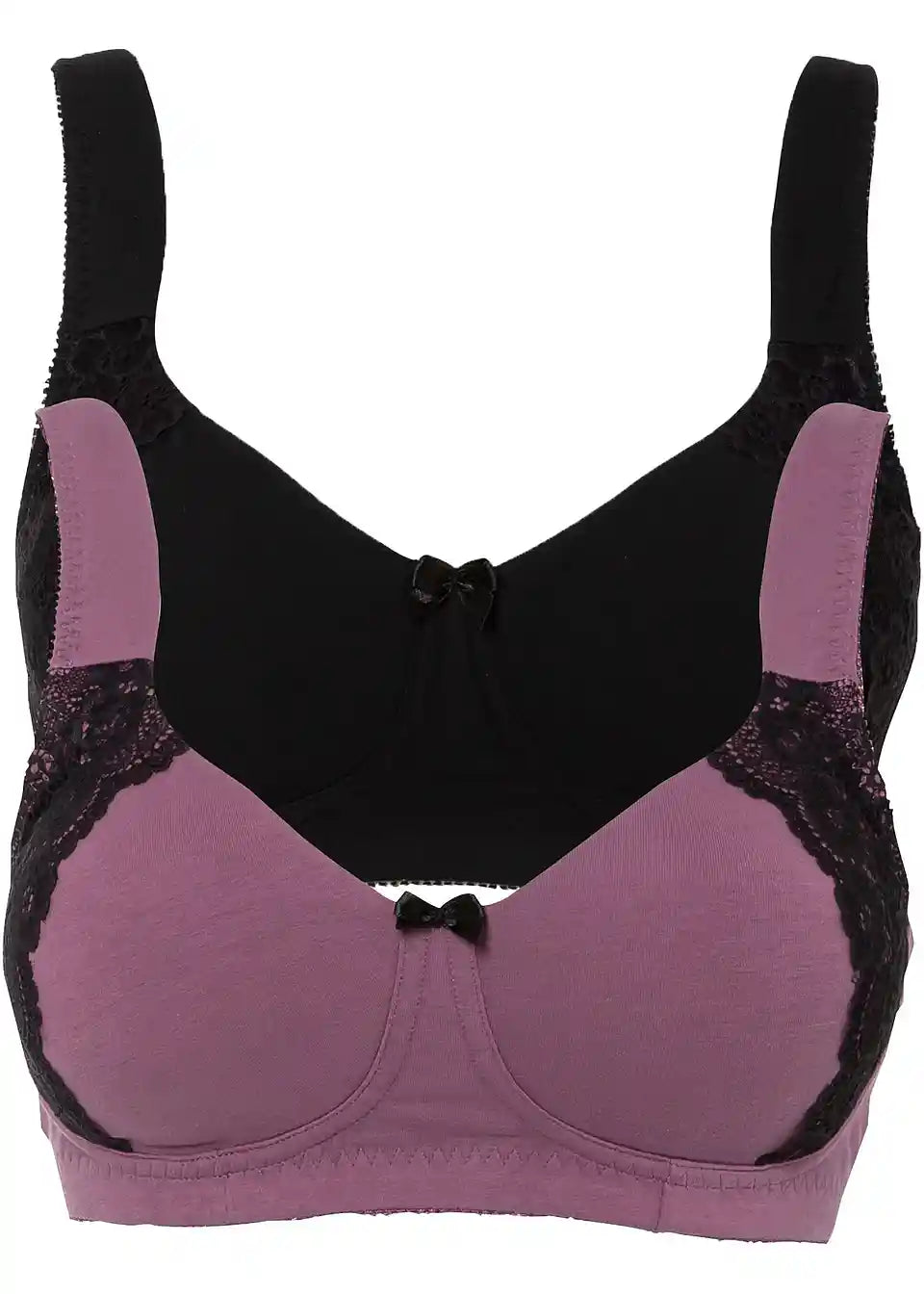 Ta Minimizer nedrček vizualno zmanjša prsi in ima široke, podložene naramnice. Čipka in mašnica sta barvno kontrastni.