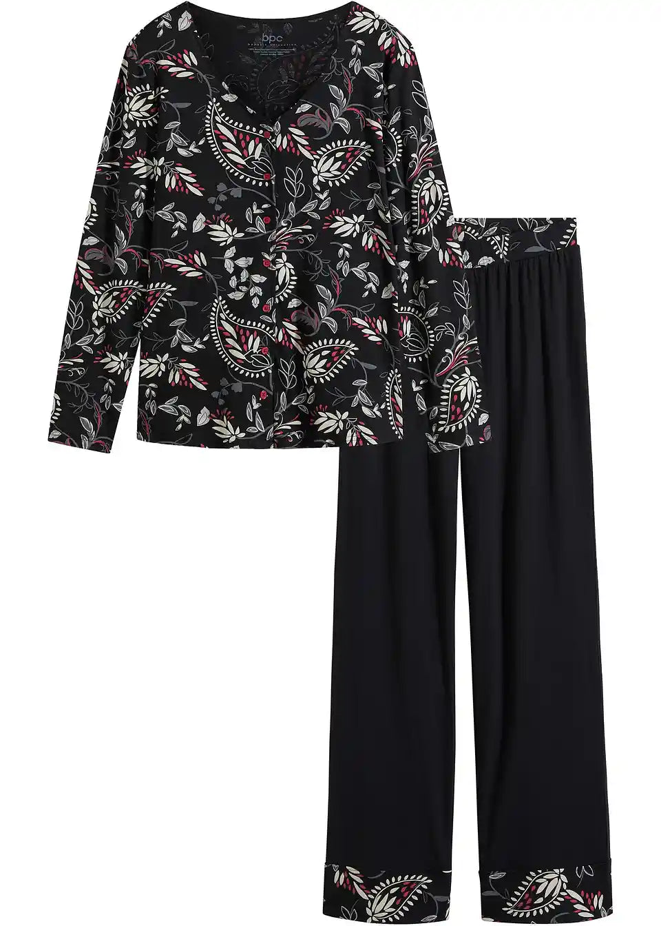 Pižama z letvijo z gumbi in ekološkim bombažem