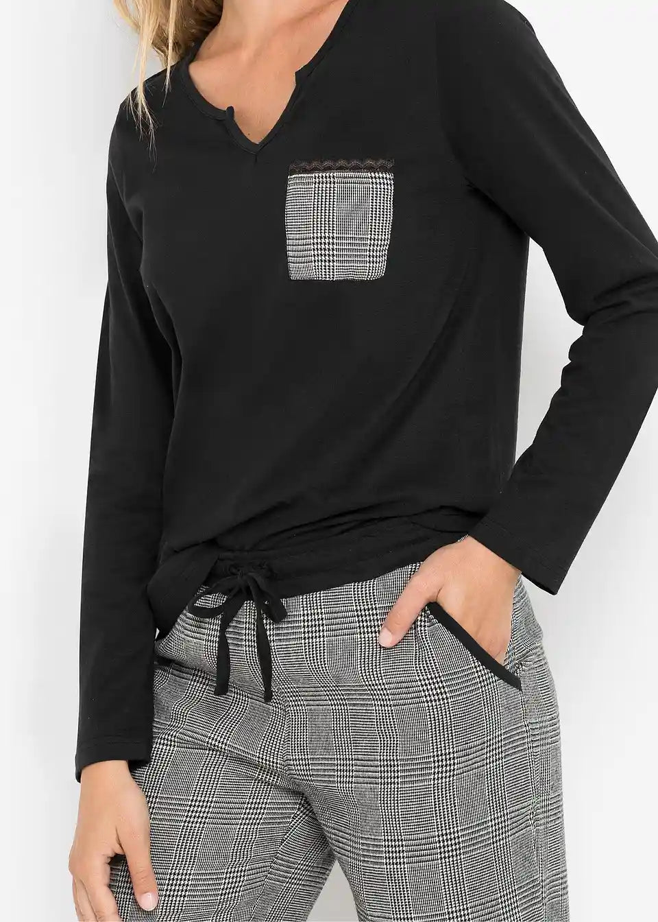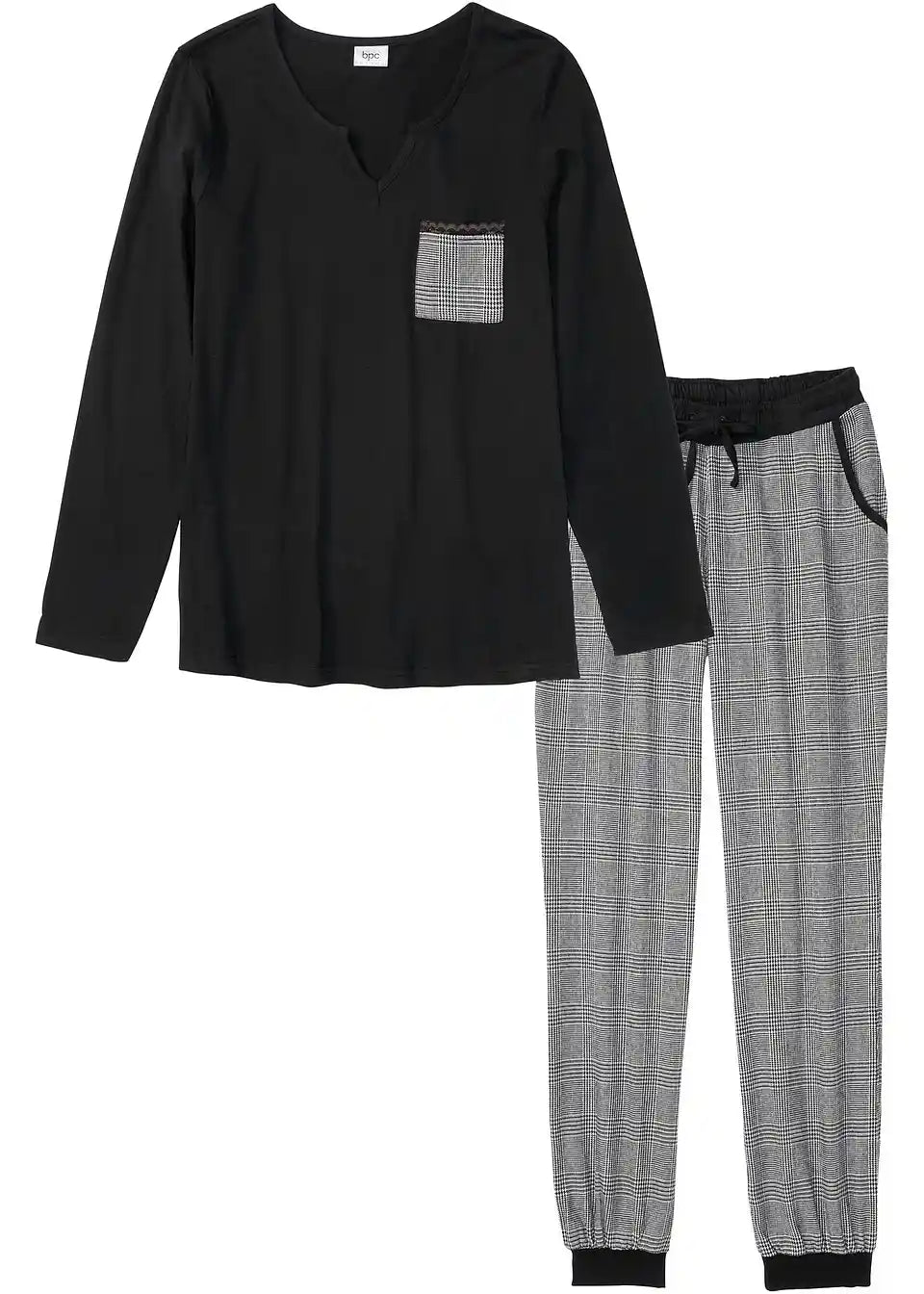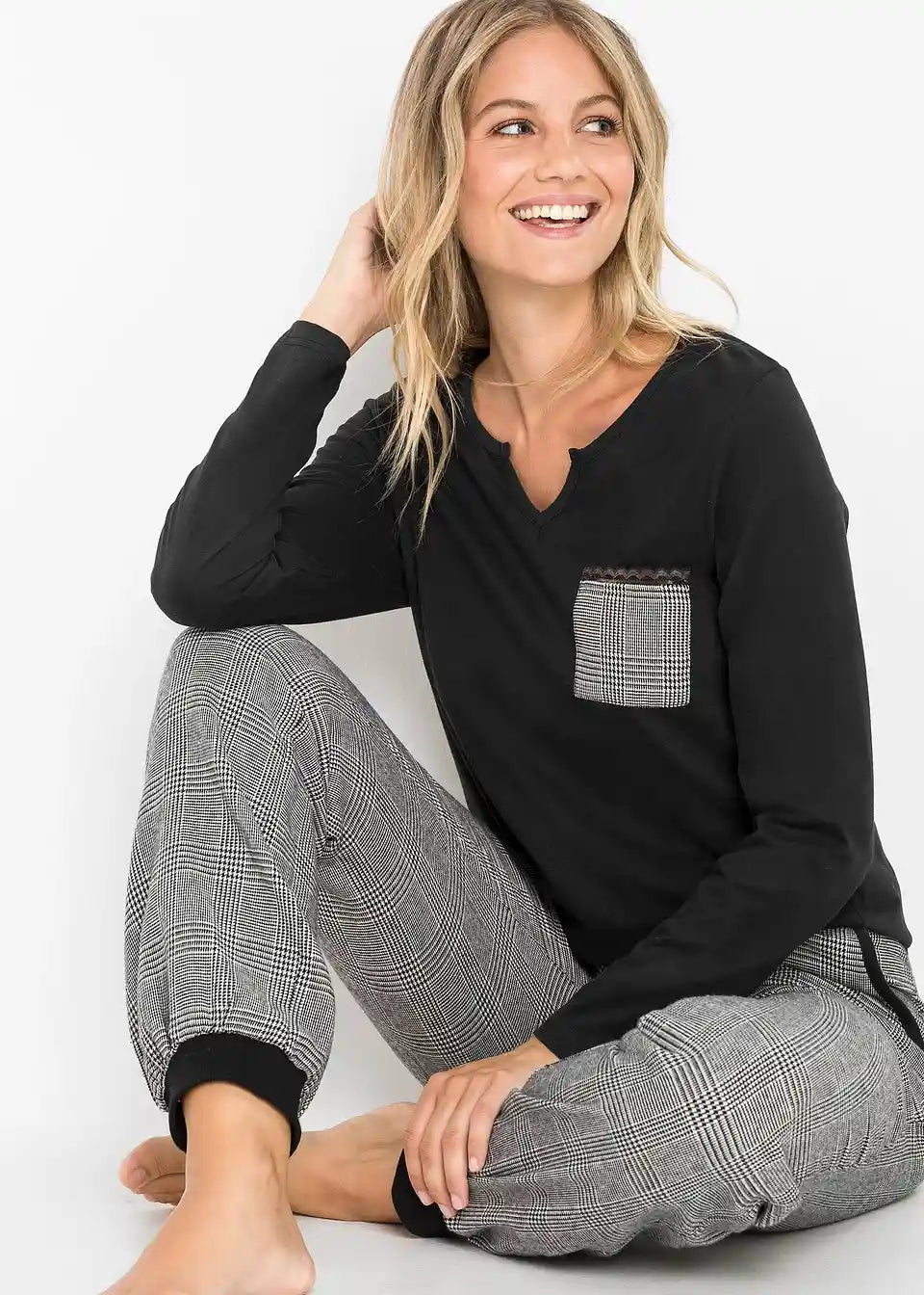 Ta udoben spalni komplet zagotavlja posebno toploto in je zaradi visokega deleža bombaža zelo prijeten za nošenje. Pižama hlače so narejene iz mehkega, neelastičnega flanelastega materiala.