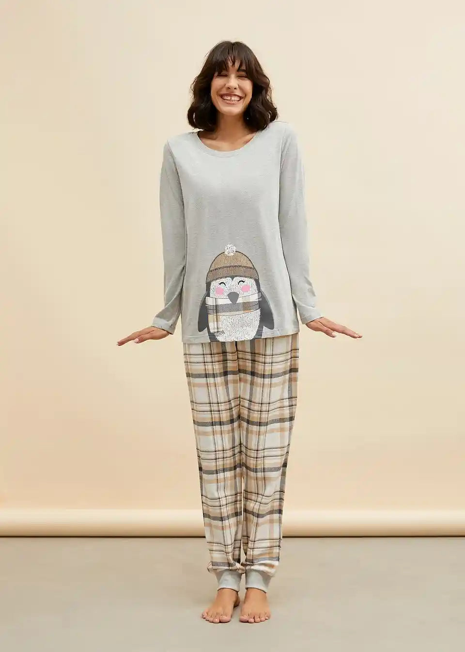 Pingvin pižama z mehkimi flanelastimi hlačami