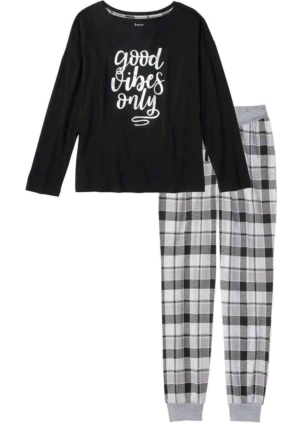 Ta udobna pižama ima dolge rokave. Na zaključkih hlačnic so izdelani rebrasti patenti. Poseben poudarek je privlačen folijski potisk.
