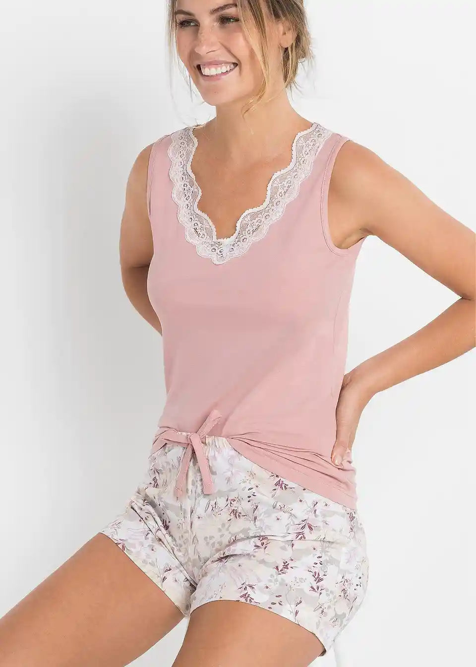 Ta romantični shorty izstopa zaradi čipke ob izrezu. Nastavljiv trak za vezanje omogoča optimalno prileganje. Mehki material pa poskrbi za vrhunsko udobje pri nošenju.
