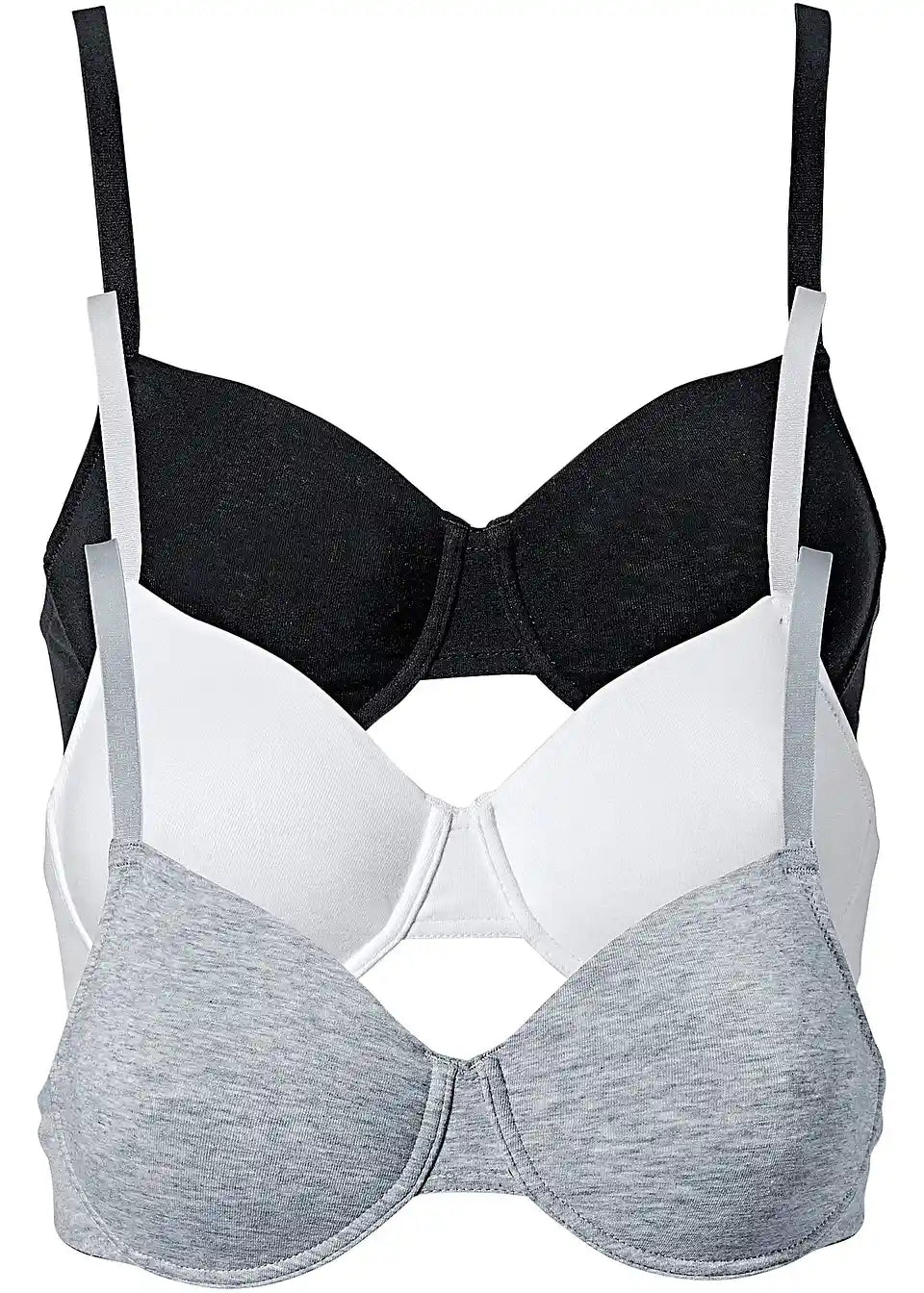 Ta T-Shirt nedrček iz organskega bombaža v paketu 3 kosov iz kolekcije bpc je nepogrešljiv. Brez podloge, vendar z brezšivno oblikovanimi košaricami, zagotovlja nedrček z oporo popolno in udobno prileganje. Zaradi brezšivnega videza se ne opazi pod oprijetimi zgornjimi deli ali majicami. Nedrček je v paketu na voljo v barvah bela, črna in siva melange.