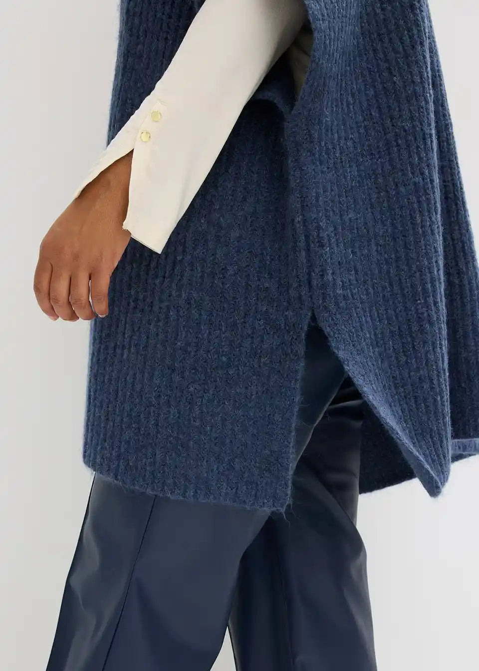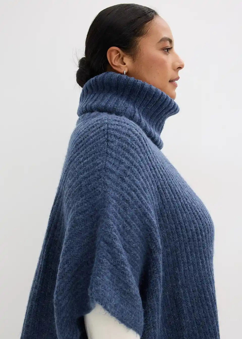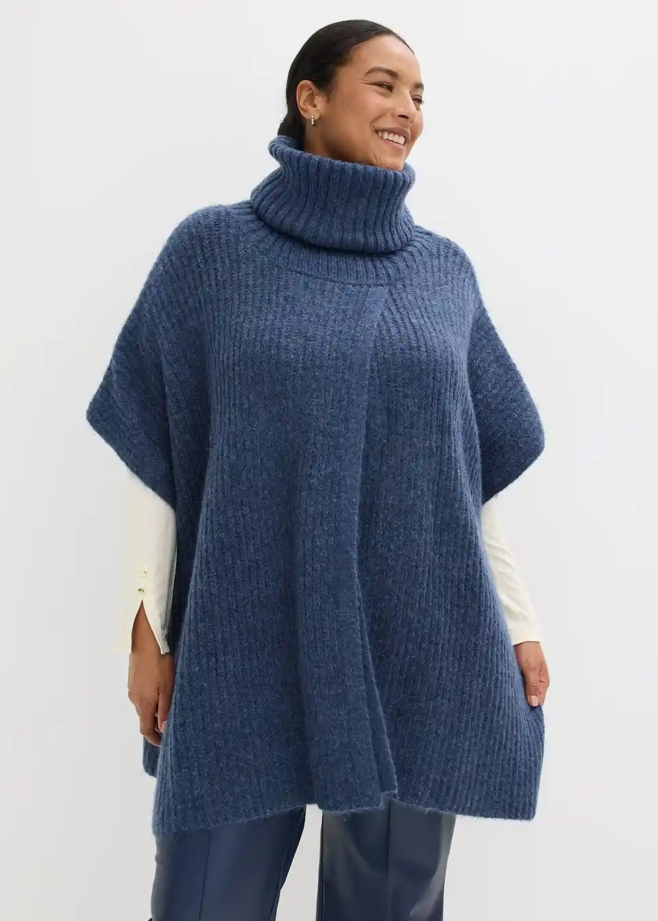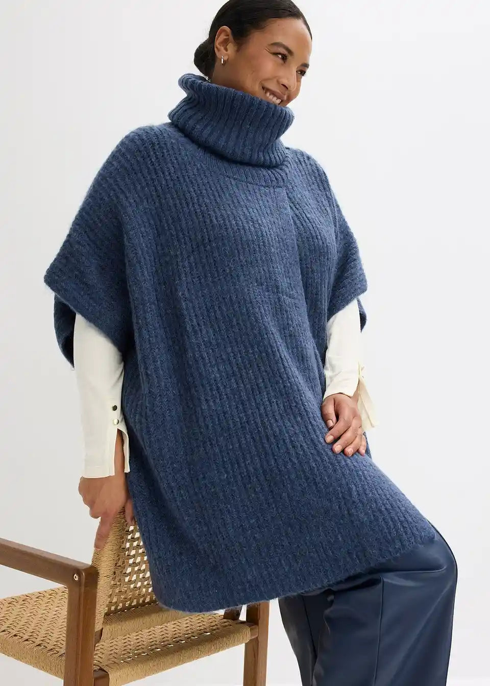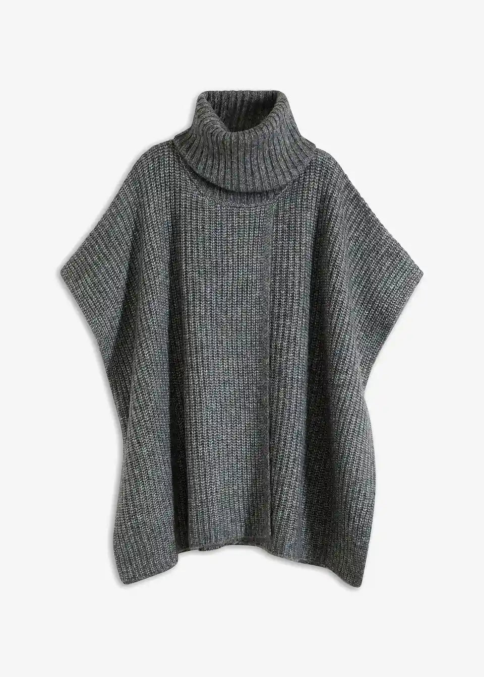 Udoben pončo-pulover s širokim šal ovratnikom.