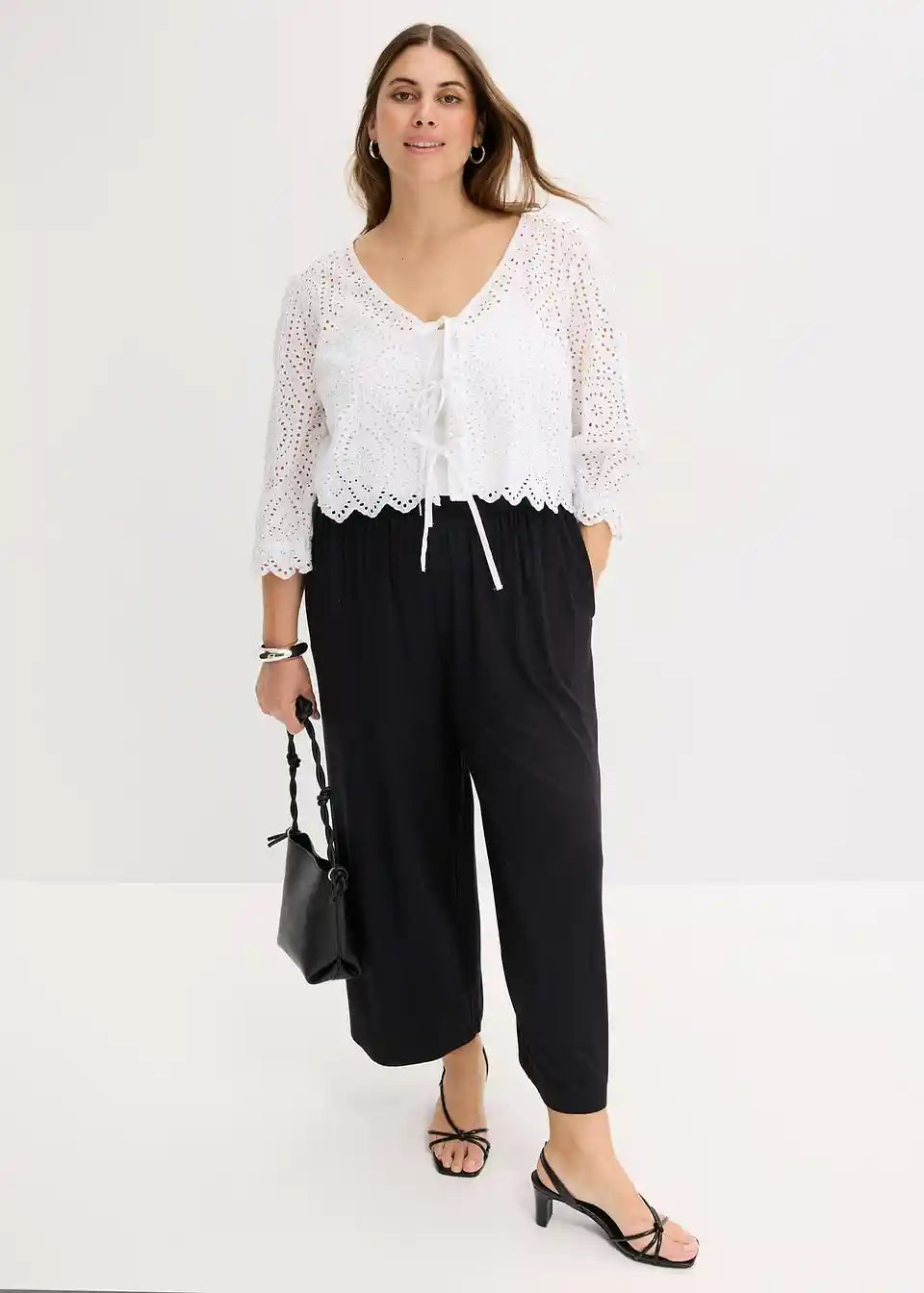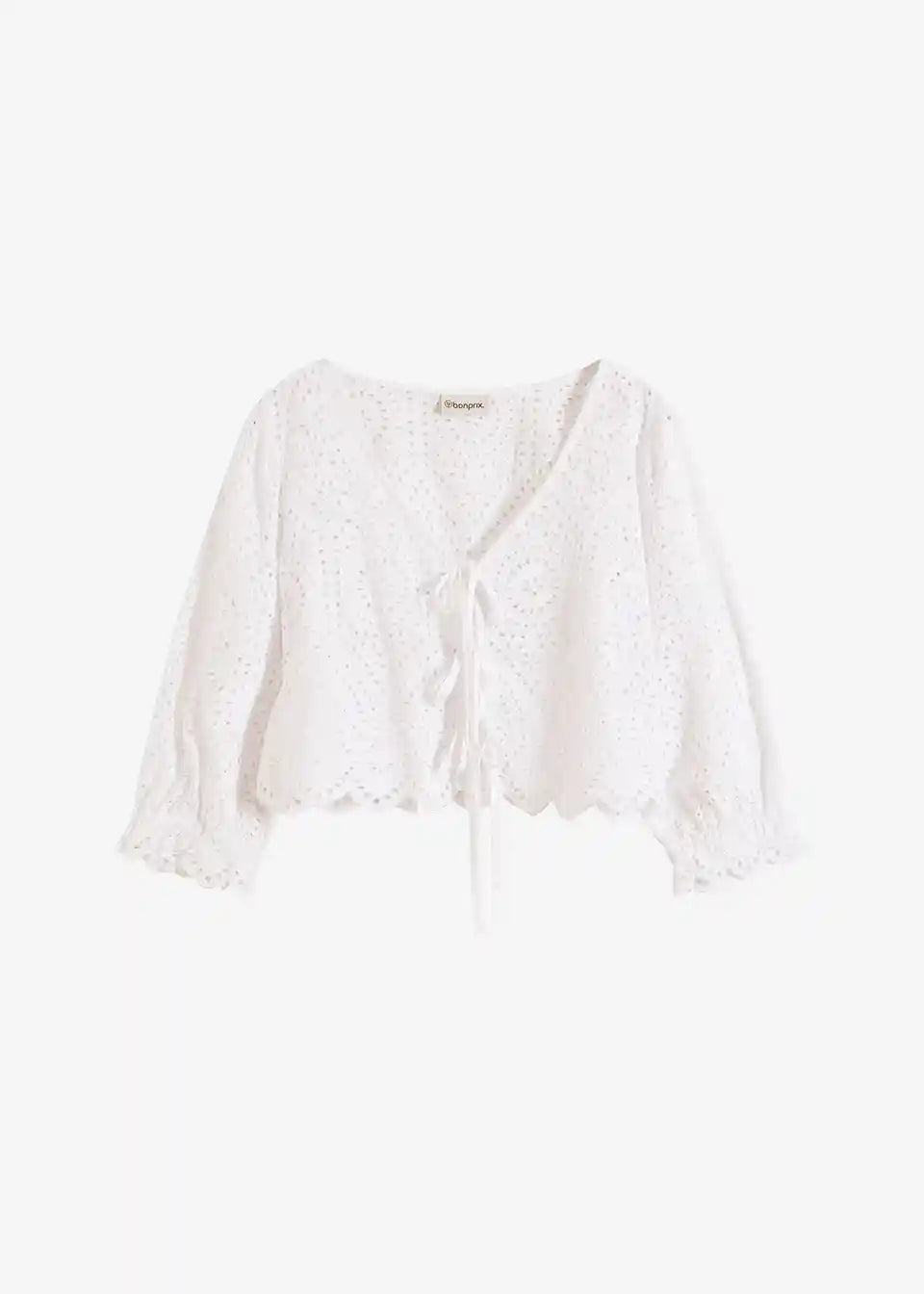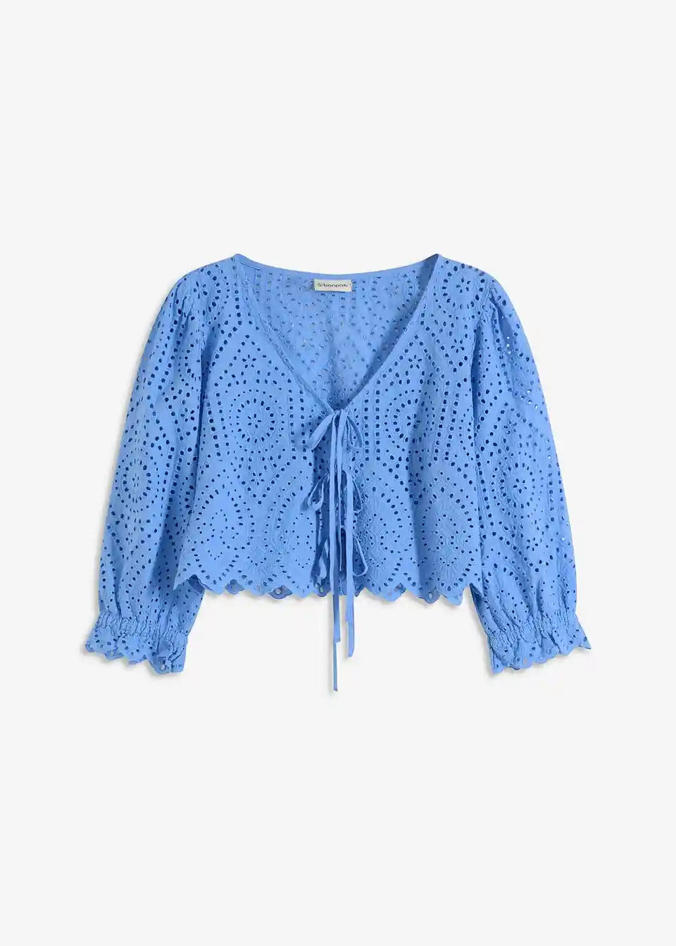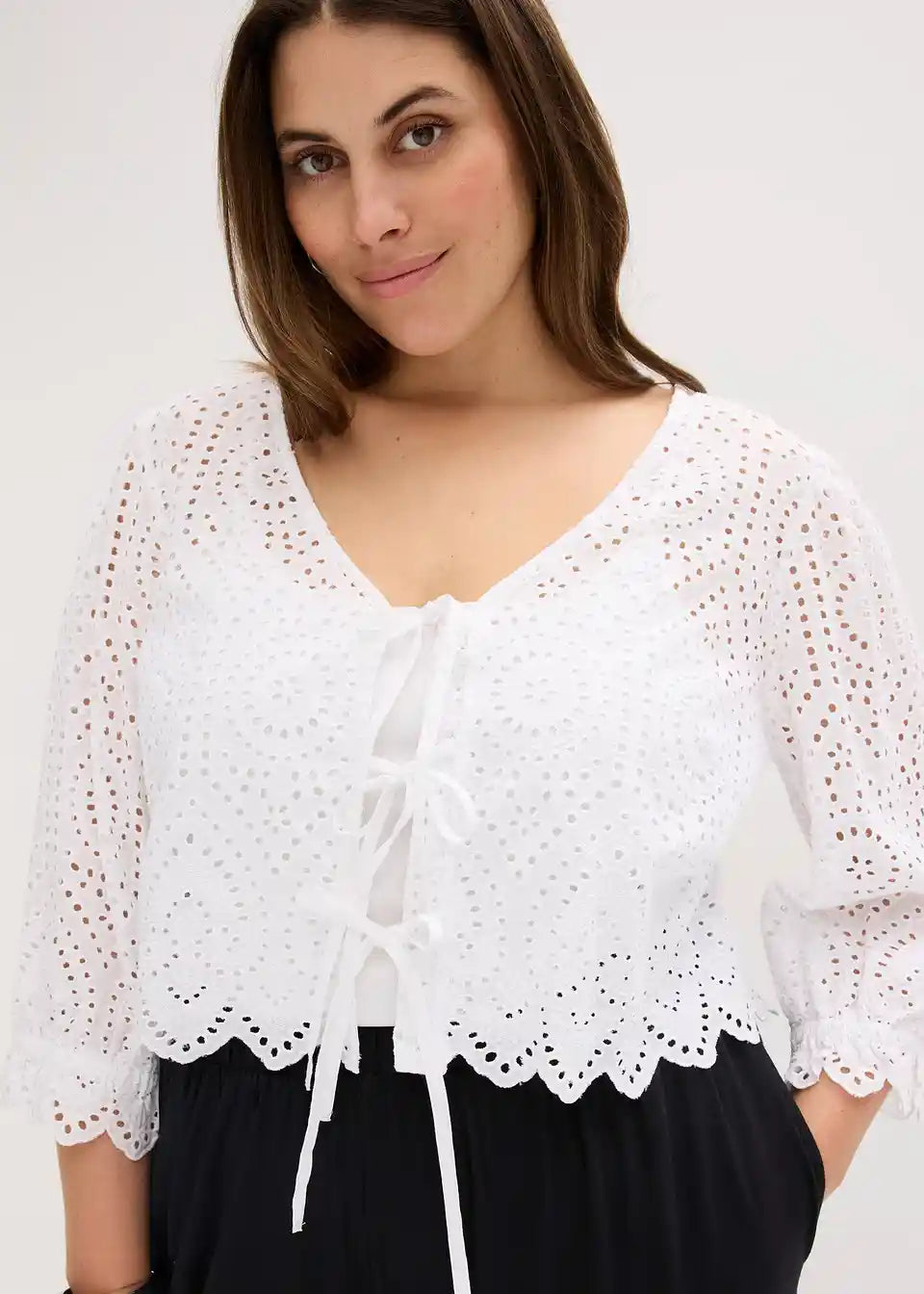 Bluza z luknjičasto vezenino s pentljami za zavezovanje
