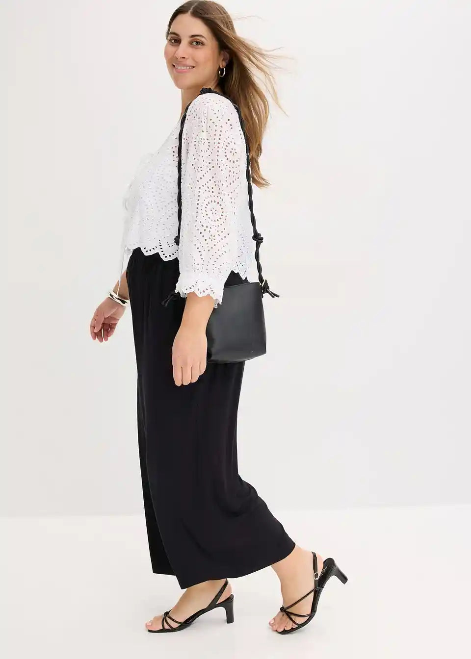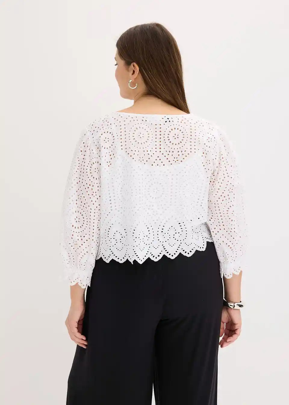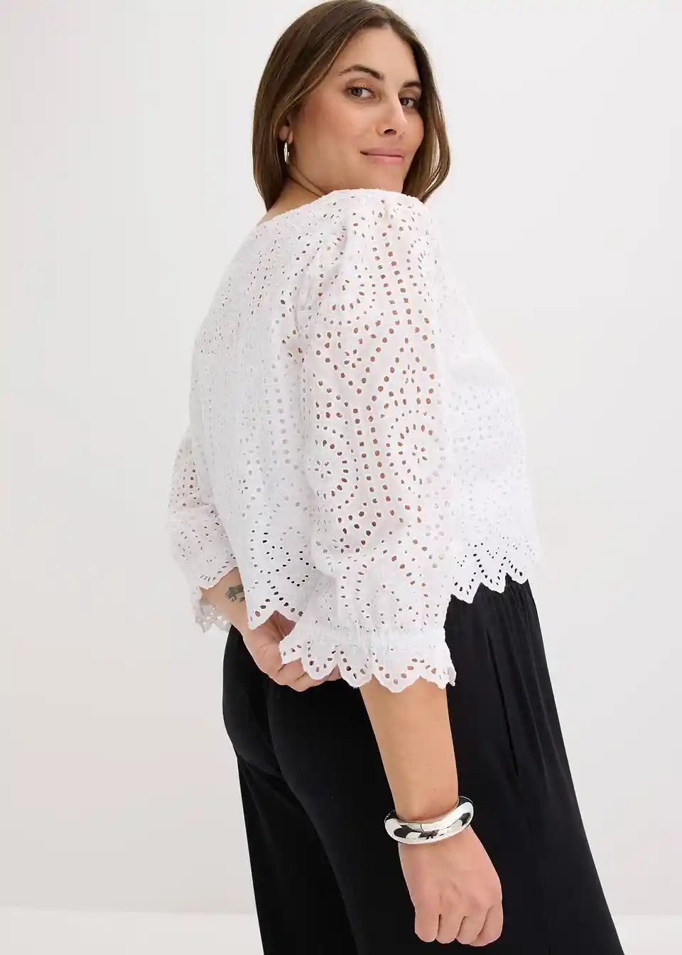 Bluza z luknjičasto vezenino in balonastimi rokavi