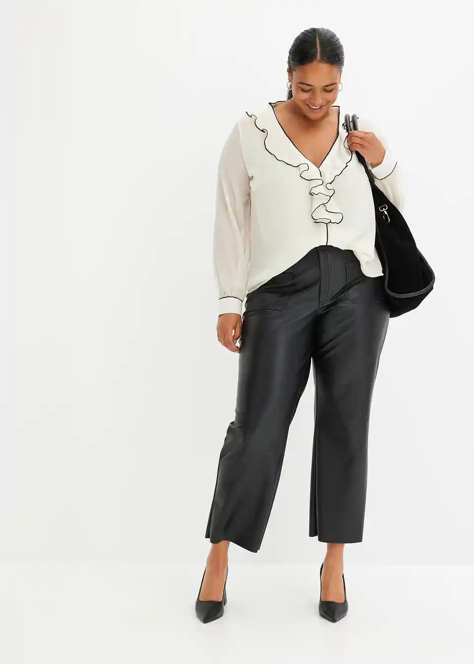 modna bluza z volančki na izrezu