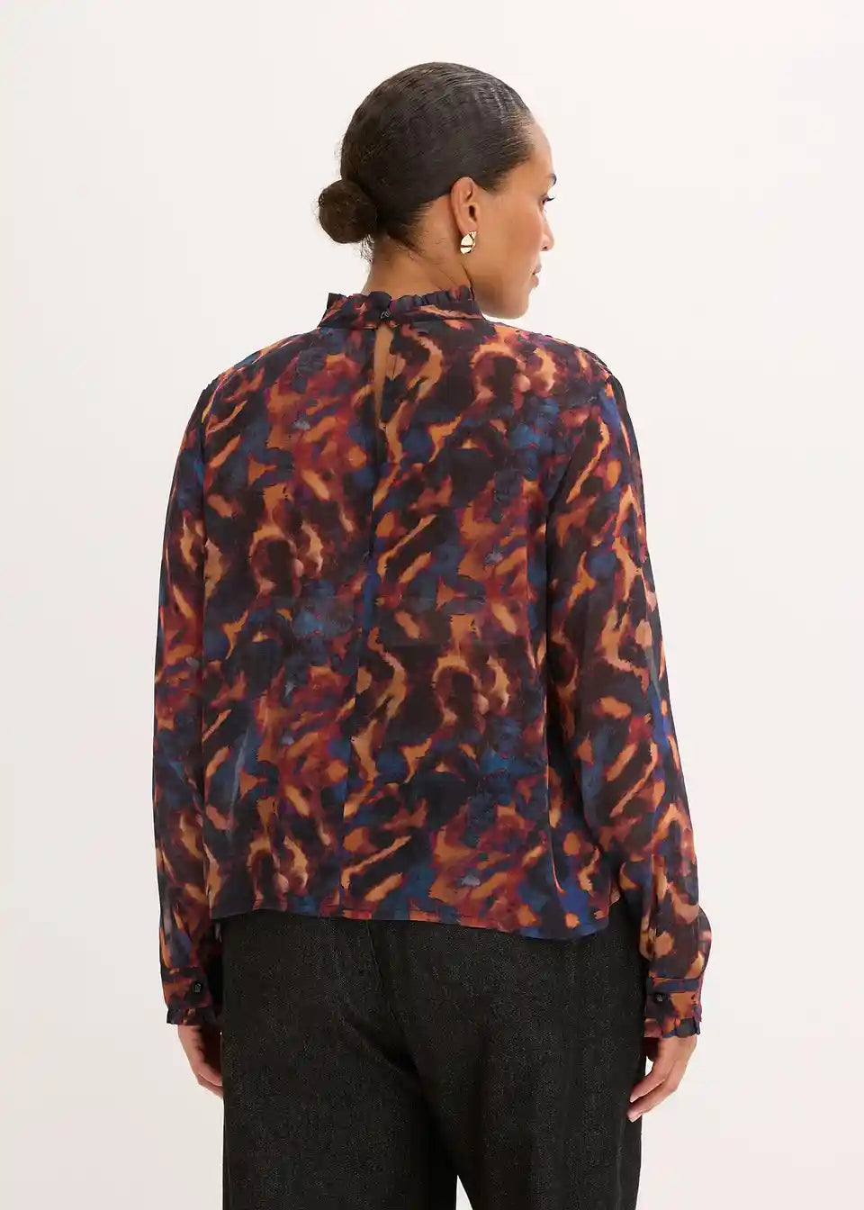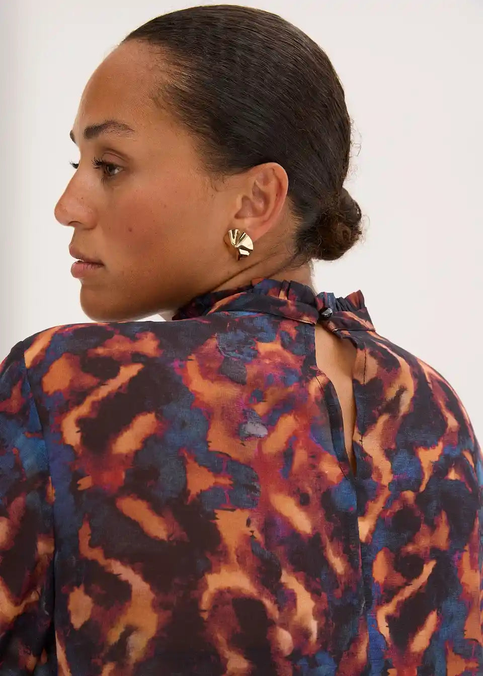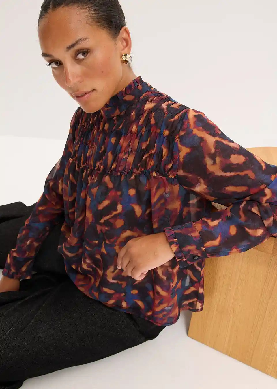 Modno potiskana bluza iz šifona z detajlom gostega naborka spredaj