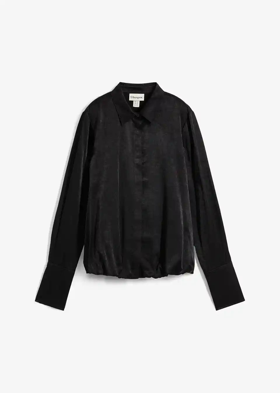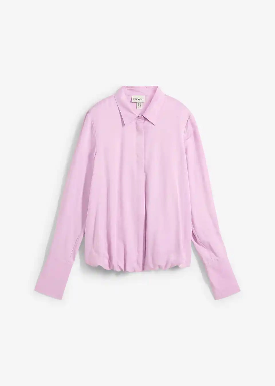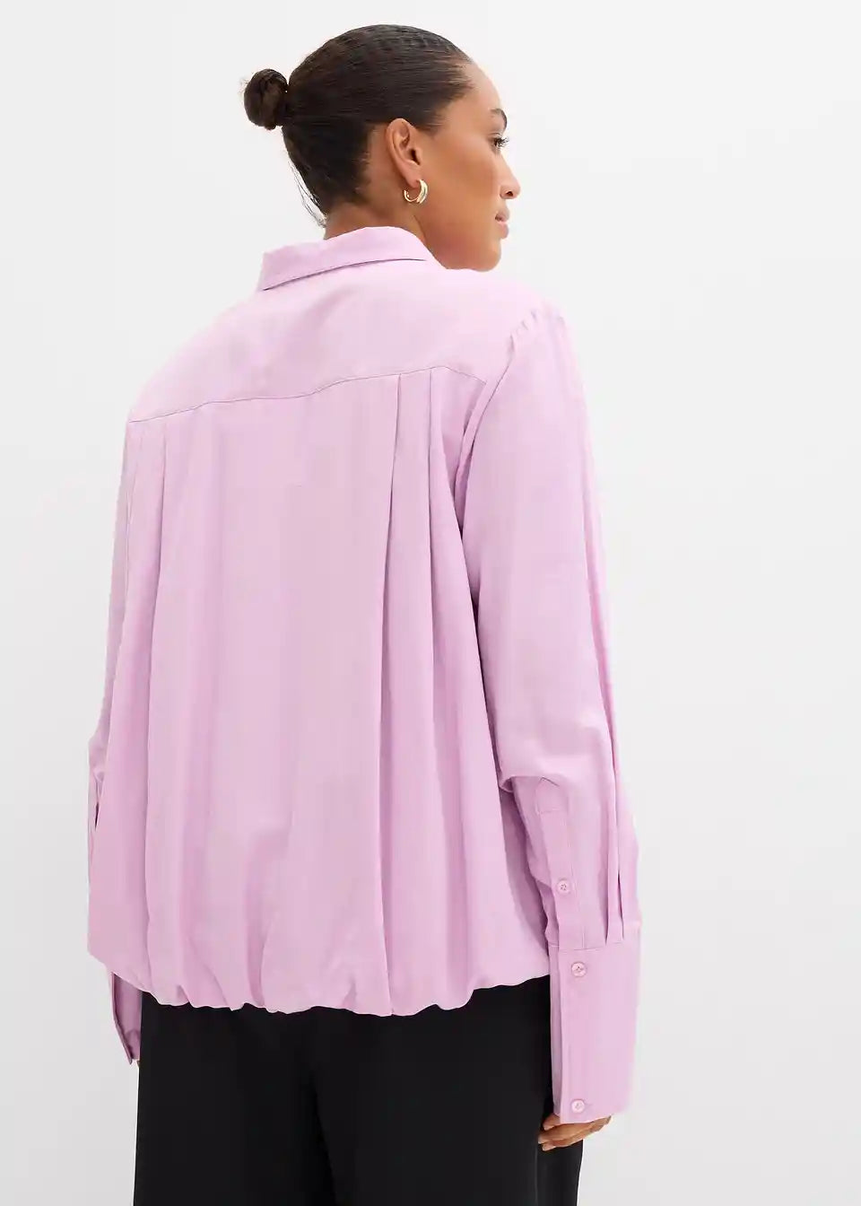 Bluza z dolgimi rokavi, zakrito letvijo za zapenjanje z gumbi in balonastim robom. Balonasti rob ni možno odpeti.