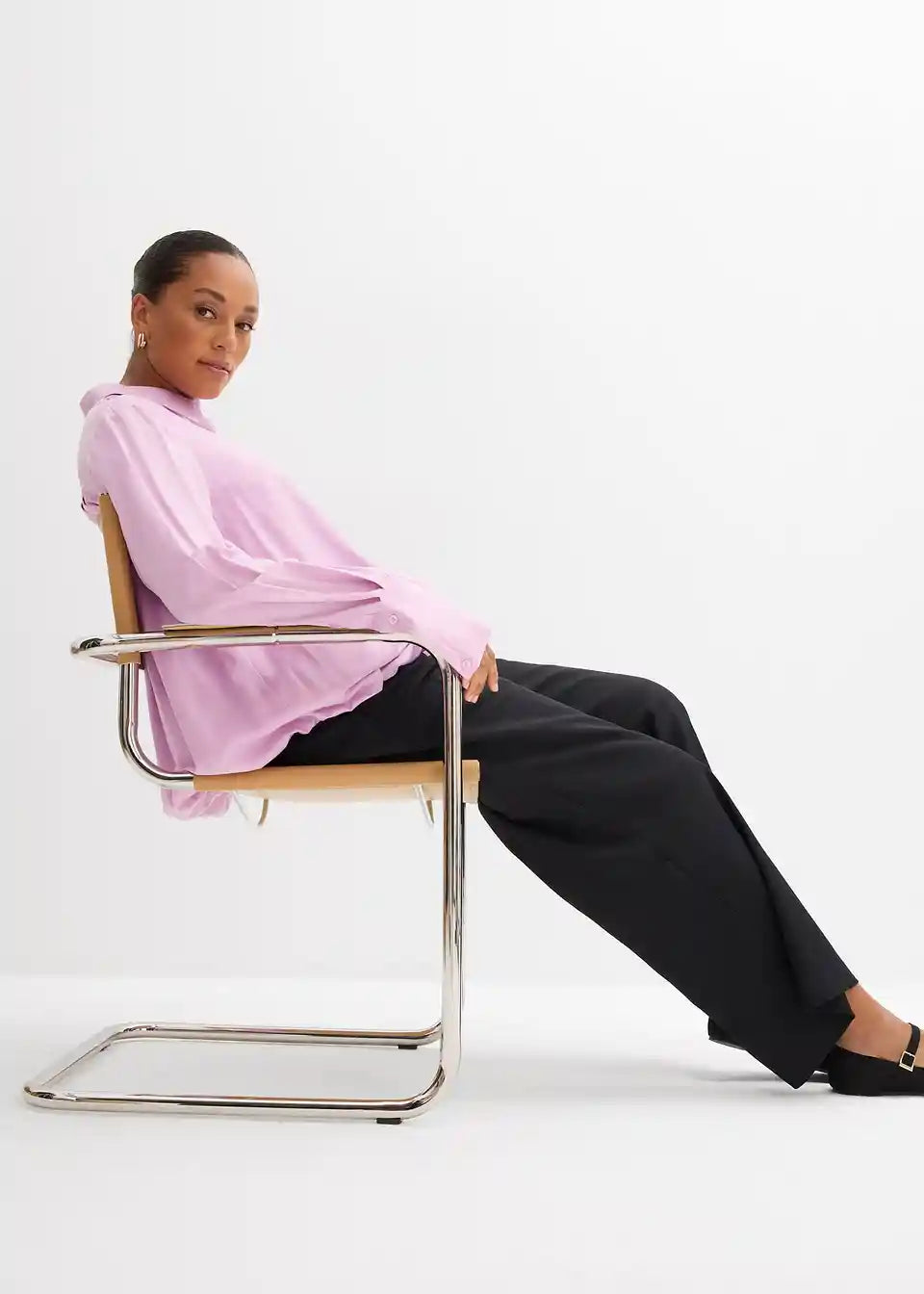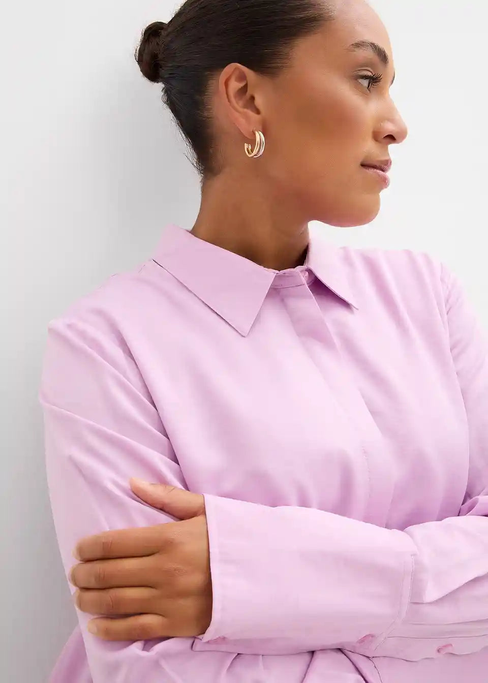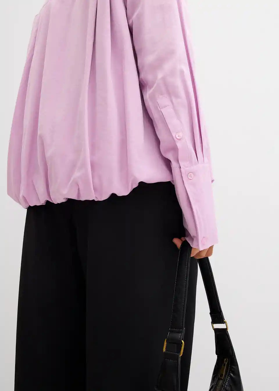 Bluza z dolgimi rokavi, zakrito letvijo za zapenjanje z gumbi in balonastim robom. Balonasti rob ni možno odpeti.
