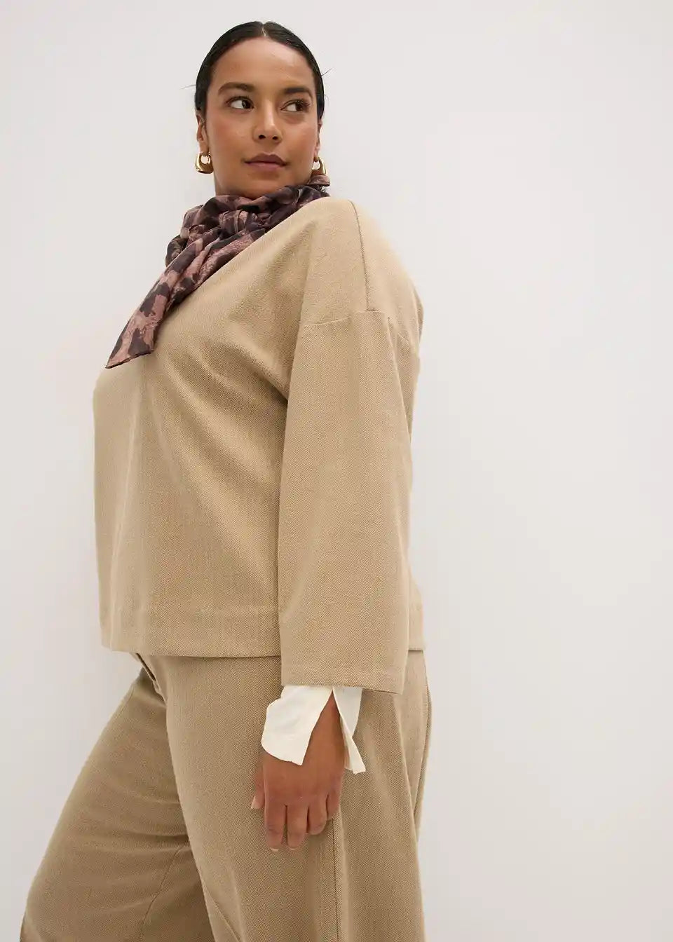 Tunika z vzorcem ribje kosti iz kompaktnega materiala