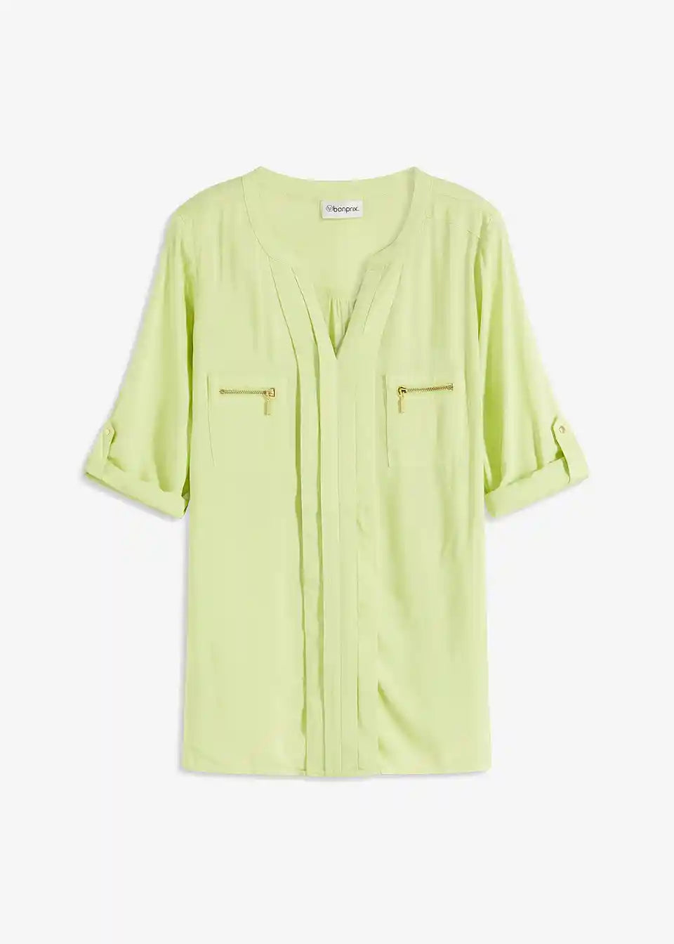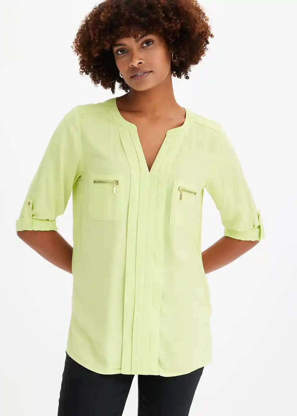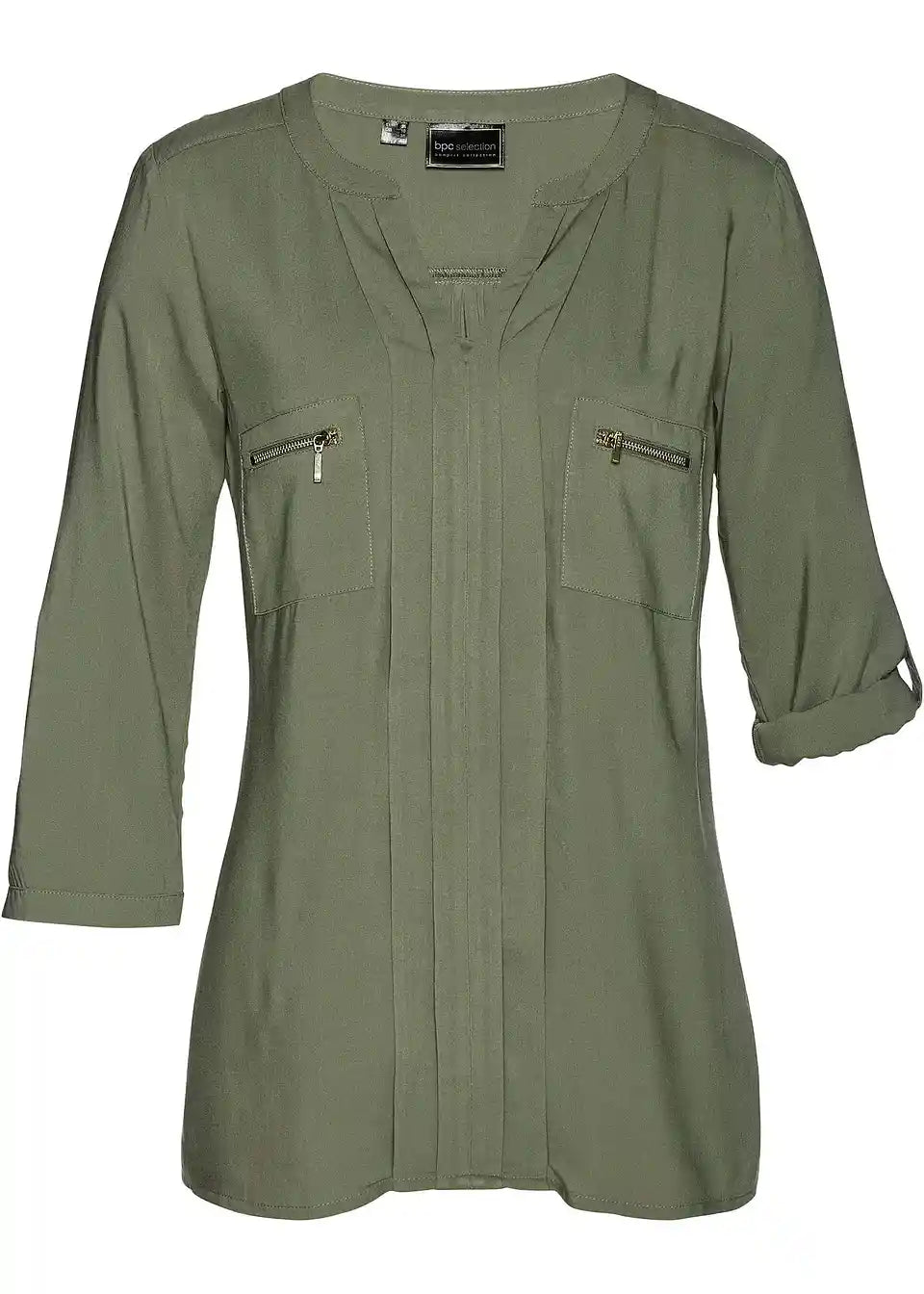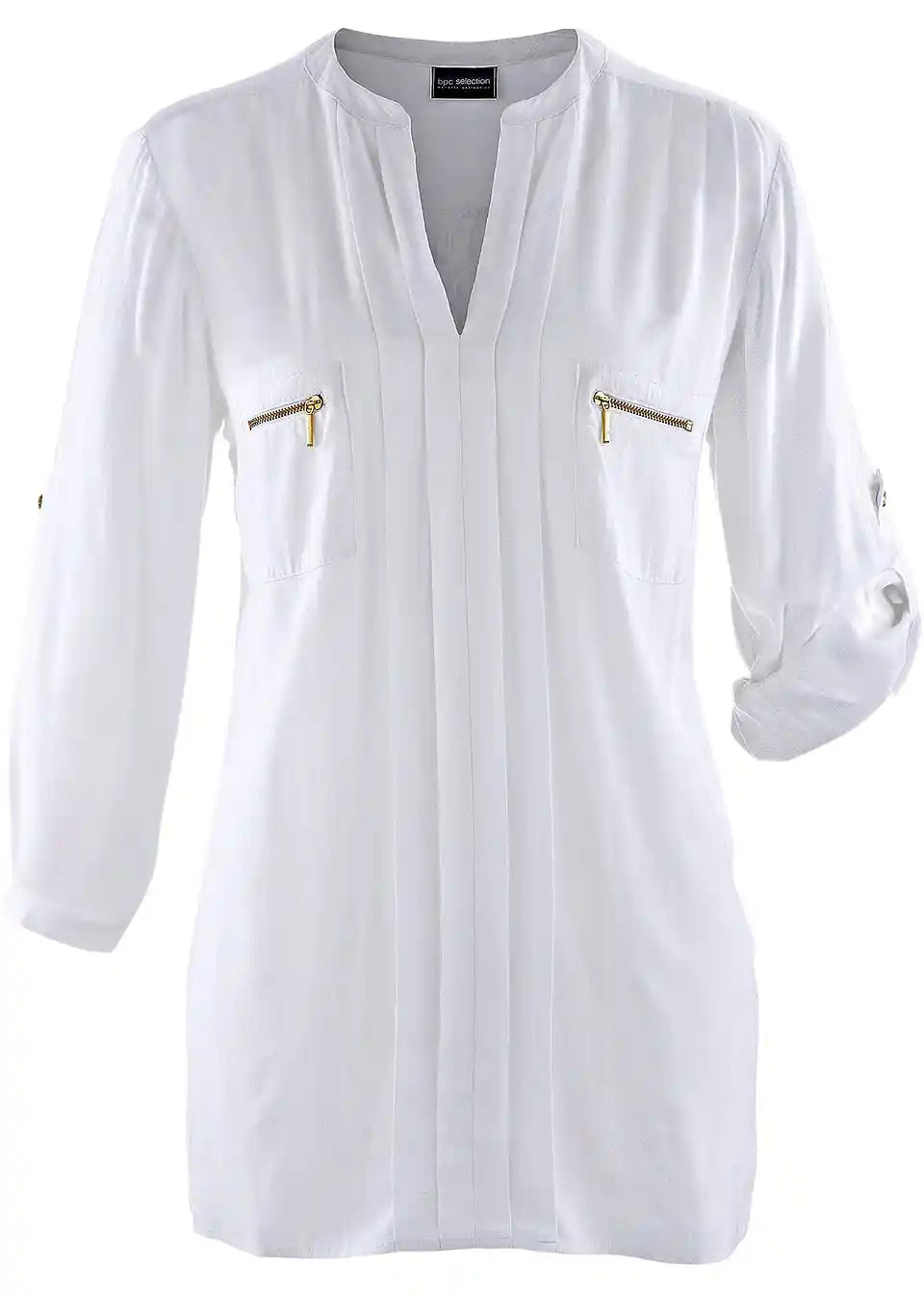 Privlačna tunikasta bluza z nabranim detajlom in okrasnimi žepi na prsih