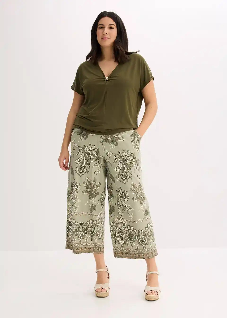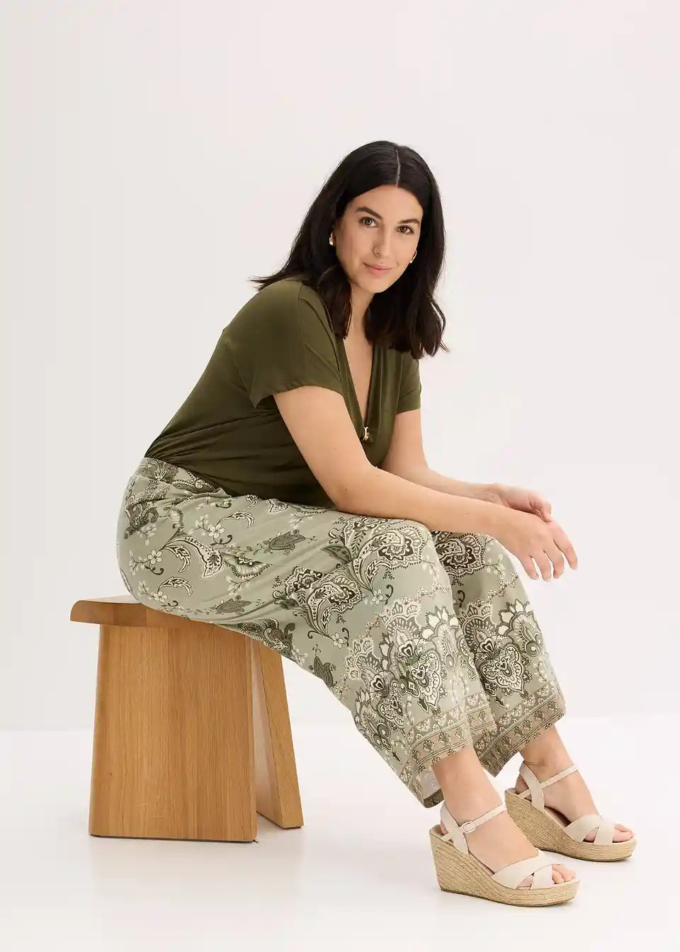 Elegantne hlače iz jerseyja z brezčasnim paisley potiskom