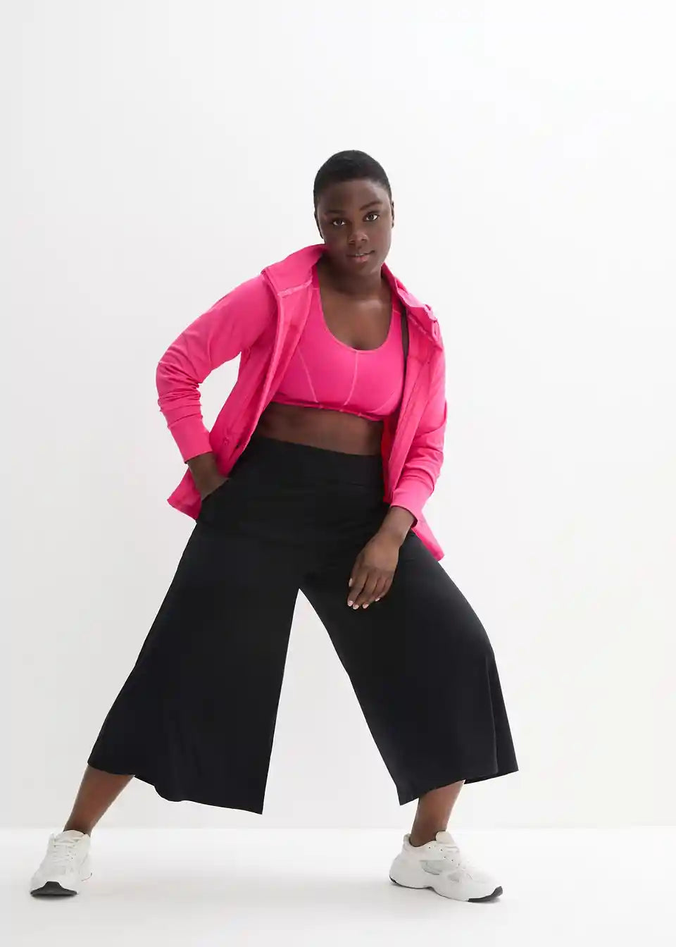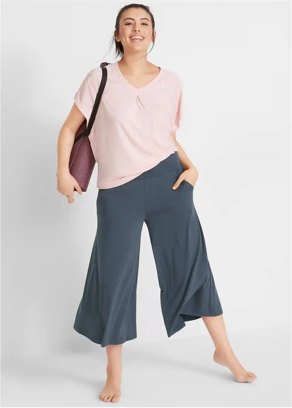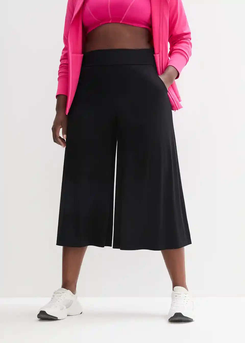 Trikratke Culotte majice hlače s širokim udobnim pasom in dvema diskretnima stranskima žepoma. Njen udoben kroj z izjemno širokimi hlačnicami jo naredi popolnega spremljevalca za aktivnosti, kot so joga ali pilates. Hlače so primerne tudi za sprostitev doma. Strojno pralna 3/4-Culotte znamke BPC se odlično poda k topom in majicam.