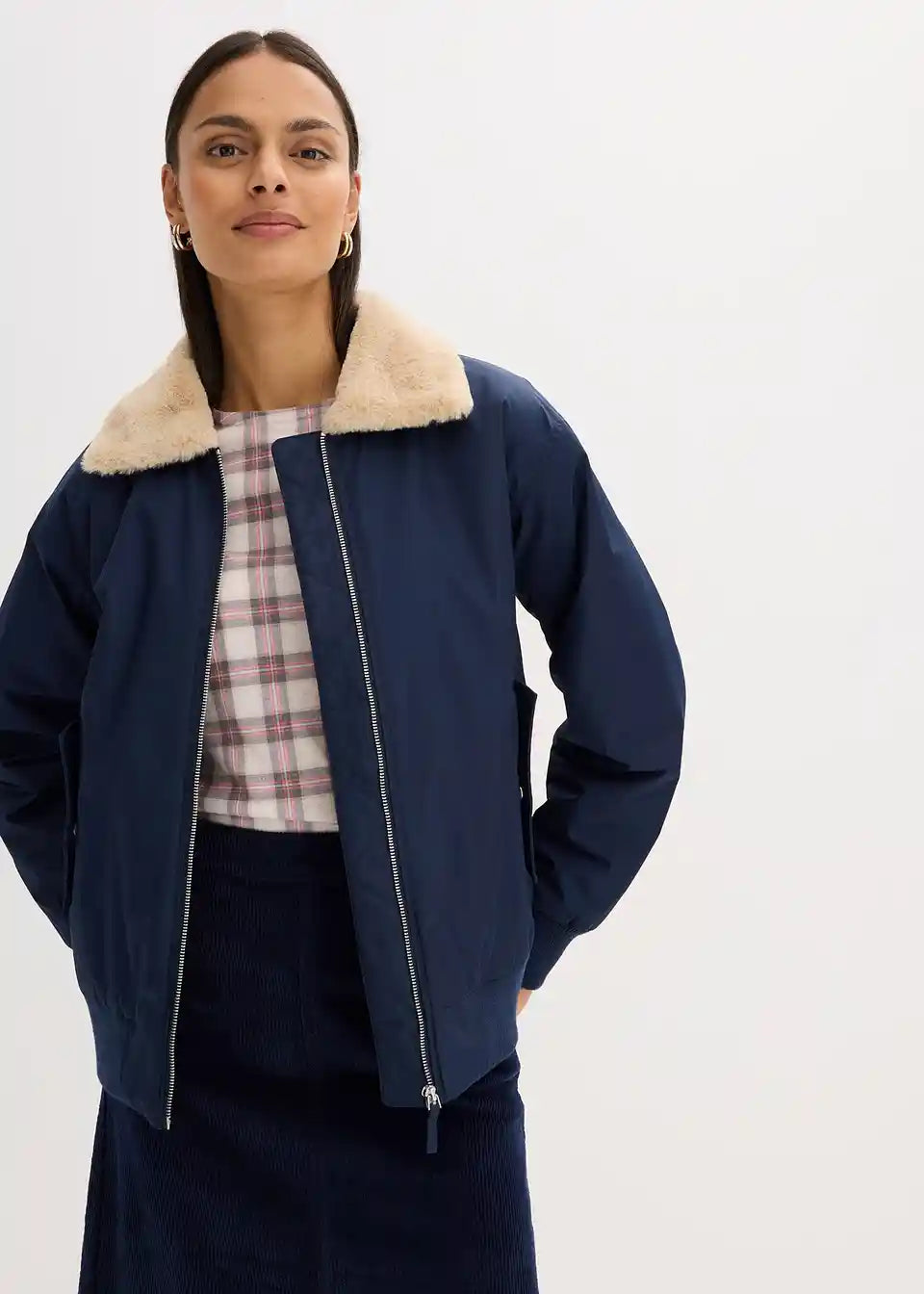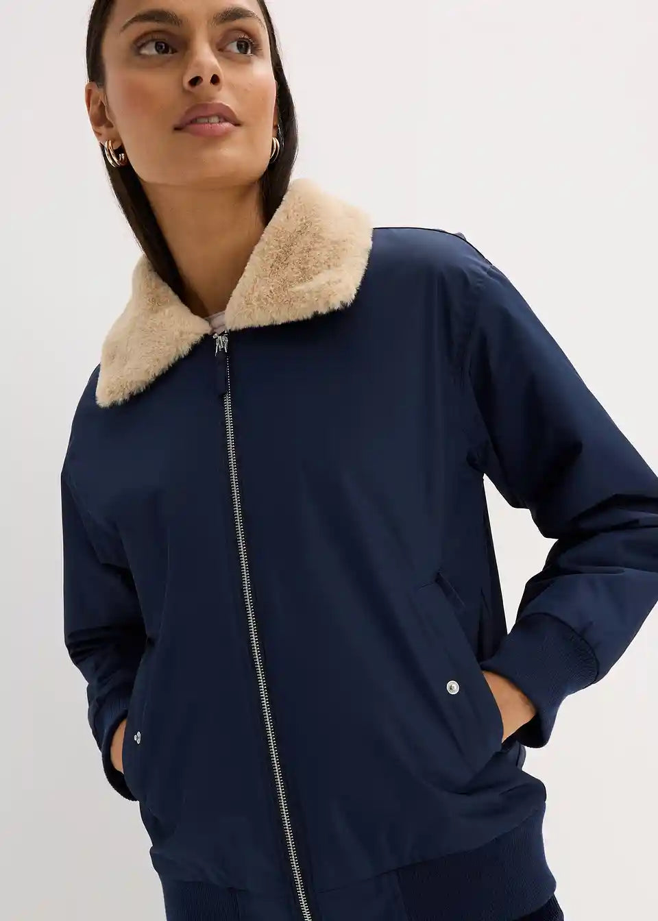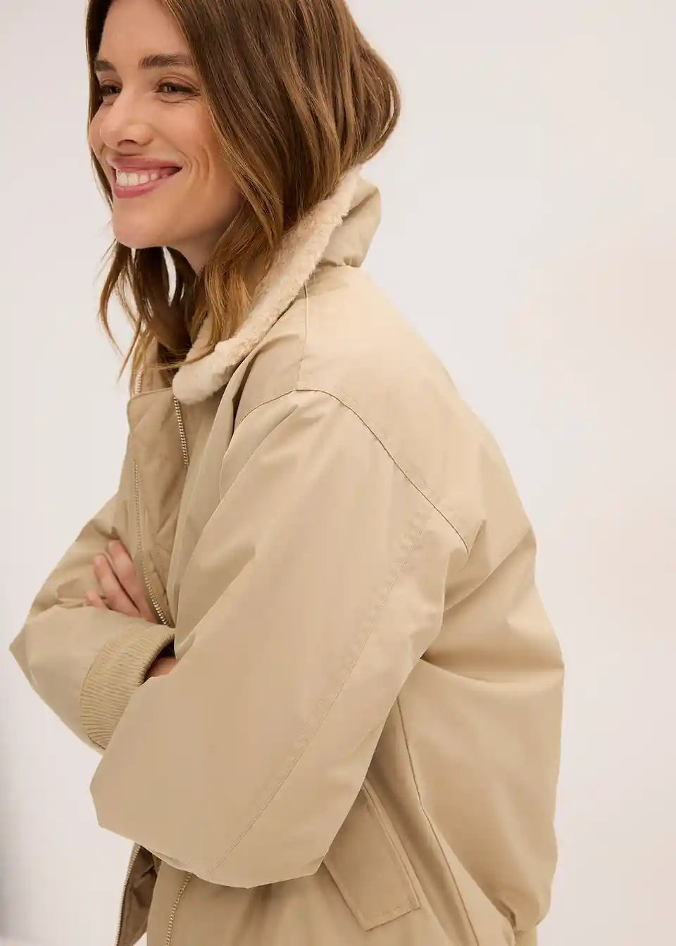 Vatirana outdoor jakna z ovratnikom iz umetnega krzna in stranskimi žepi