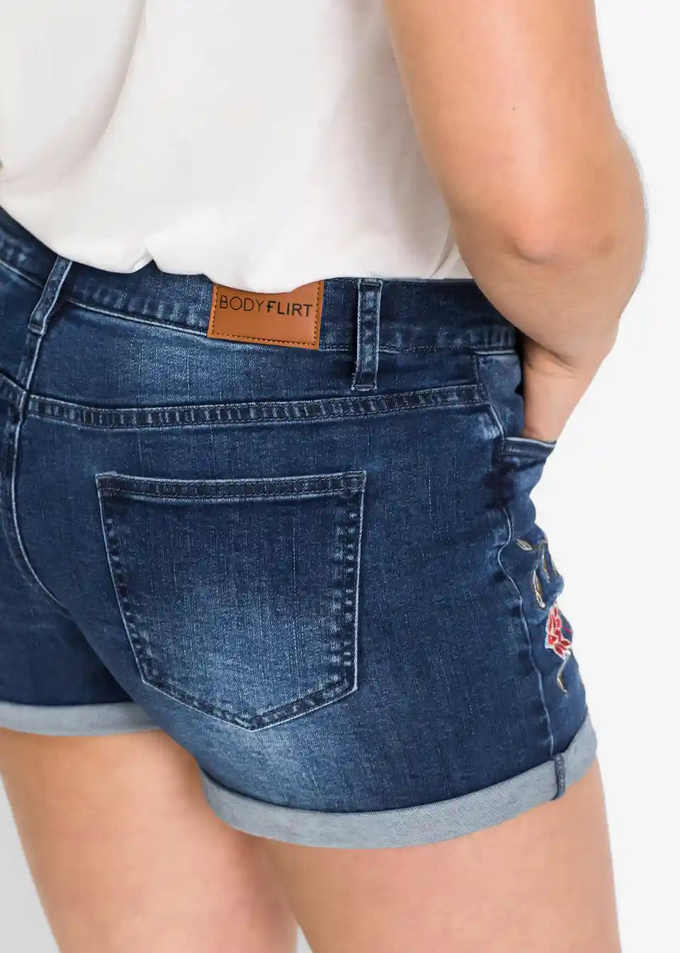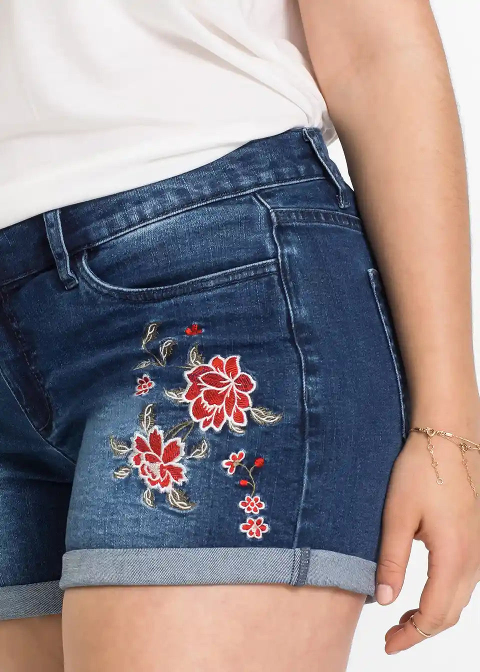 Lepi jeans-shorts z vezenjem in zavihanim robom