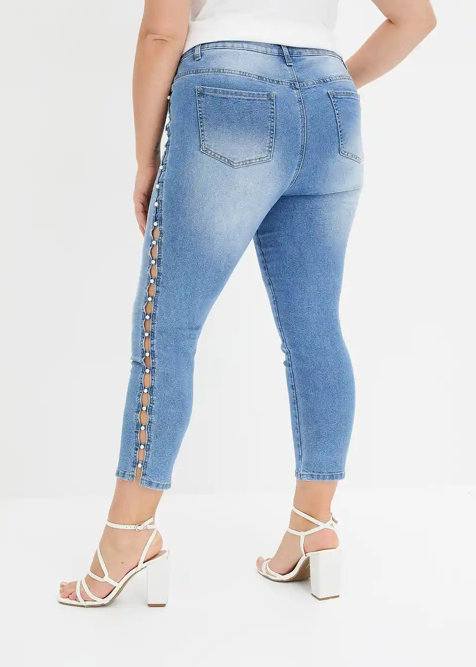 Skinny Jeans z modernimi bisernimi detajli na stranskem šivu