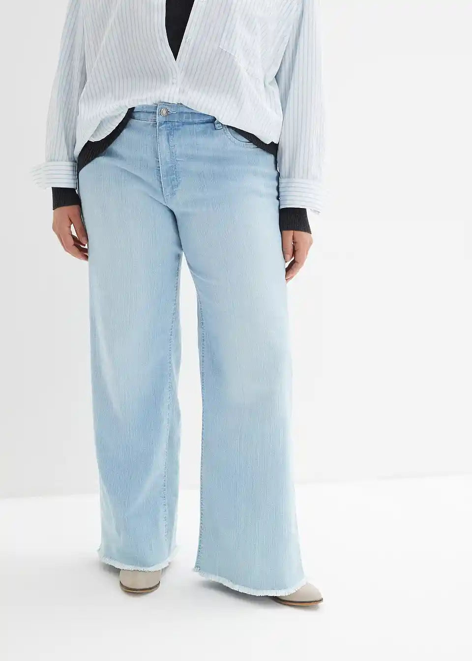 Kavbojke z visokim pasom in širokimi hlačnicami
