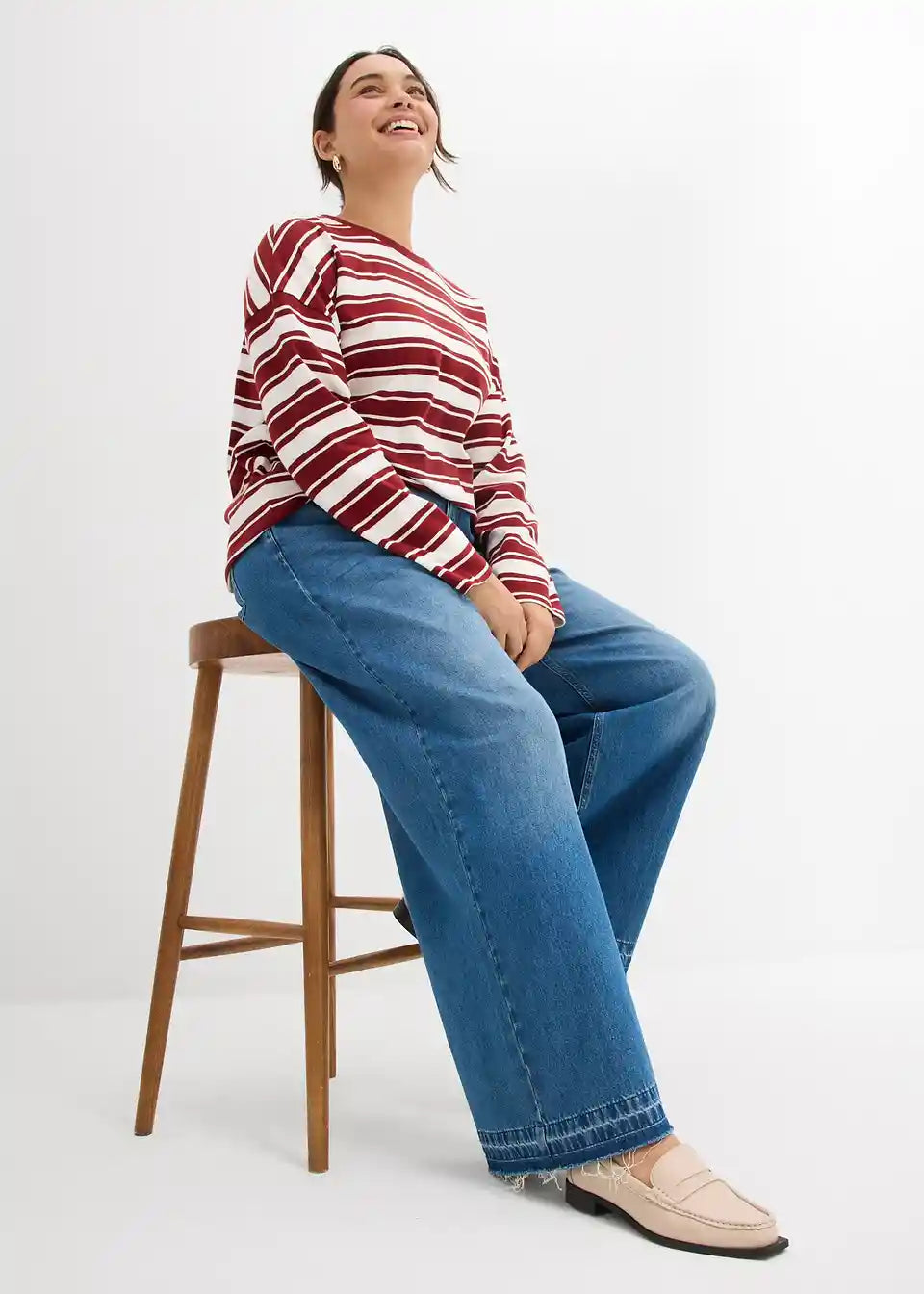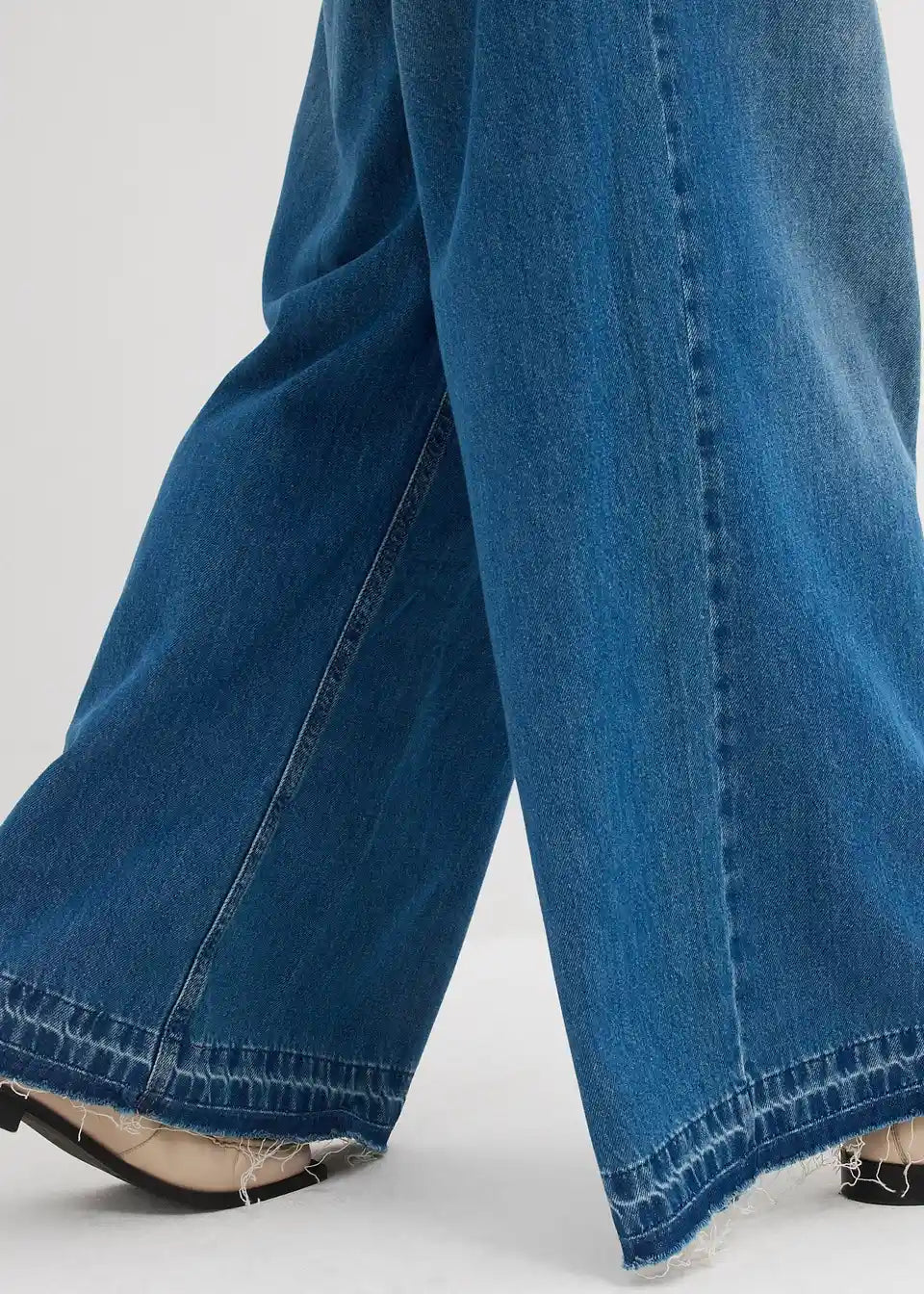 Kavbojke s širokimi hlačnicami s srednje visokim udobnim pasom