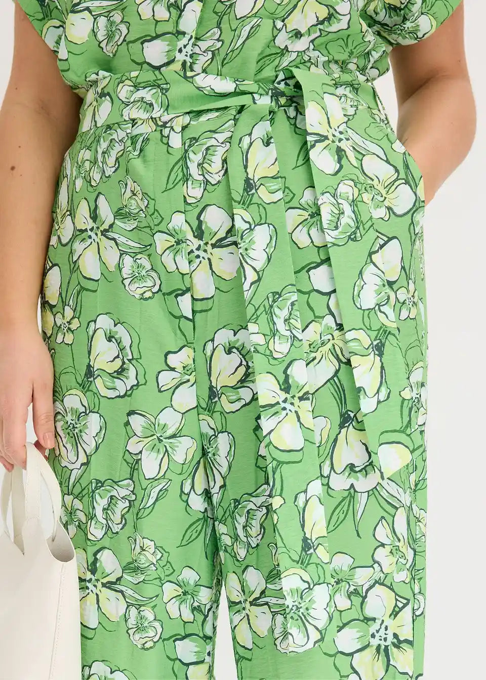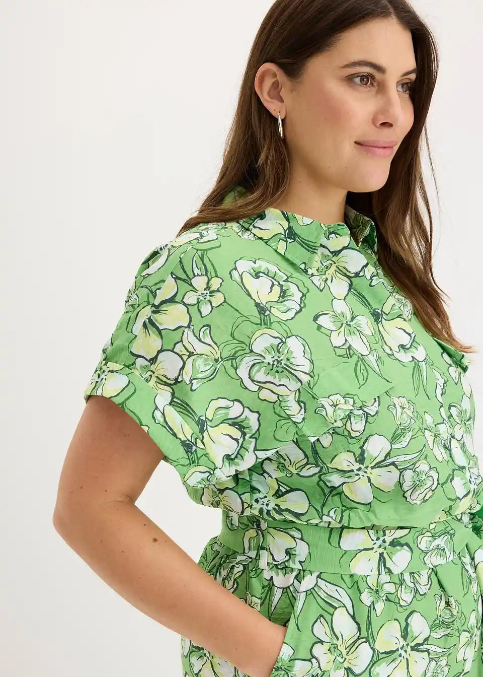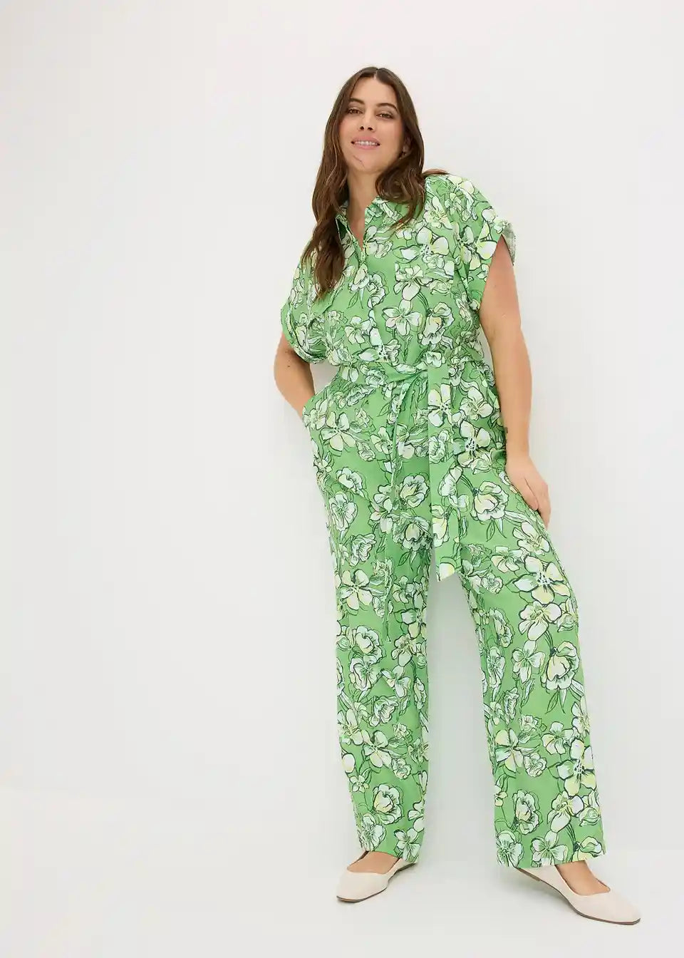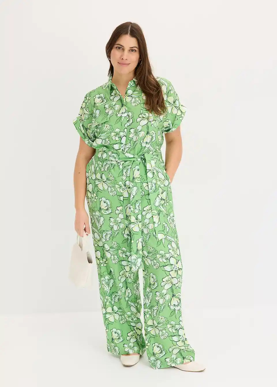Kombinezon s spuščenimi rokavi z zavihkom in gumbi
