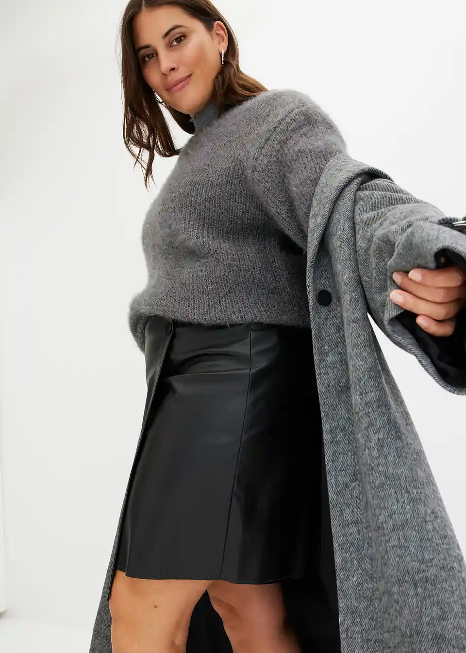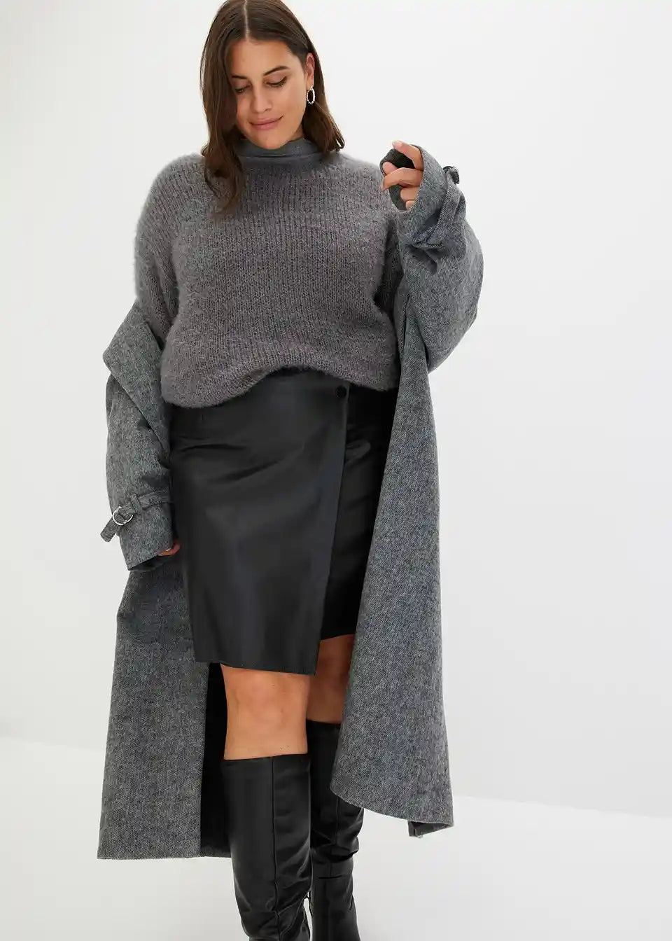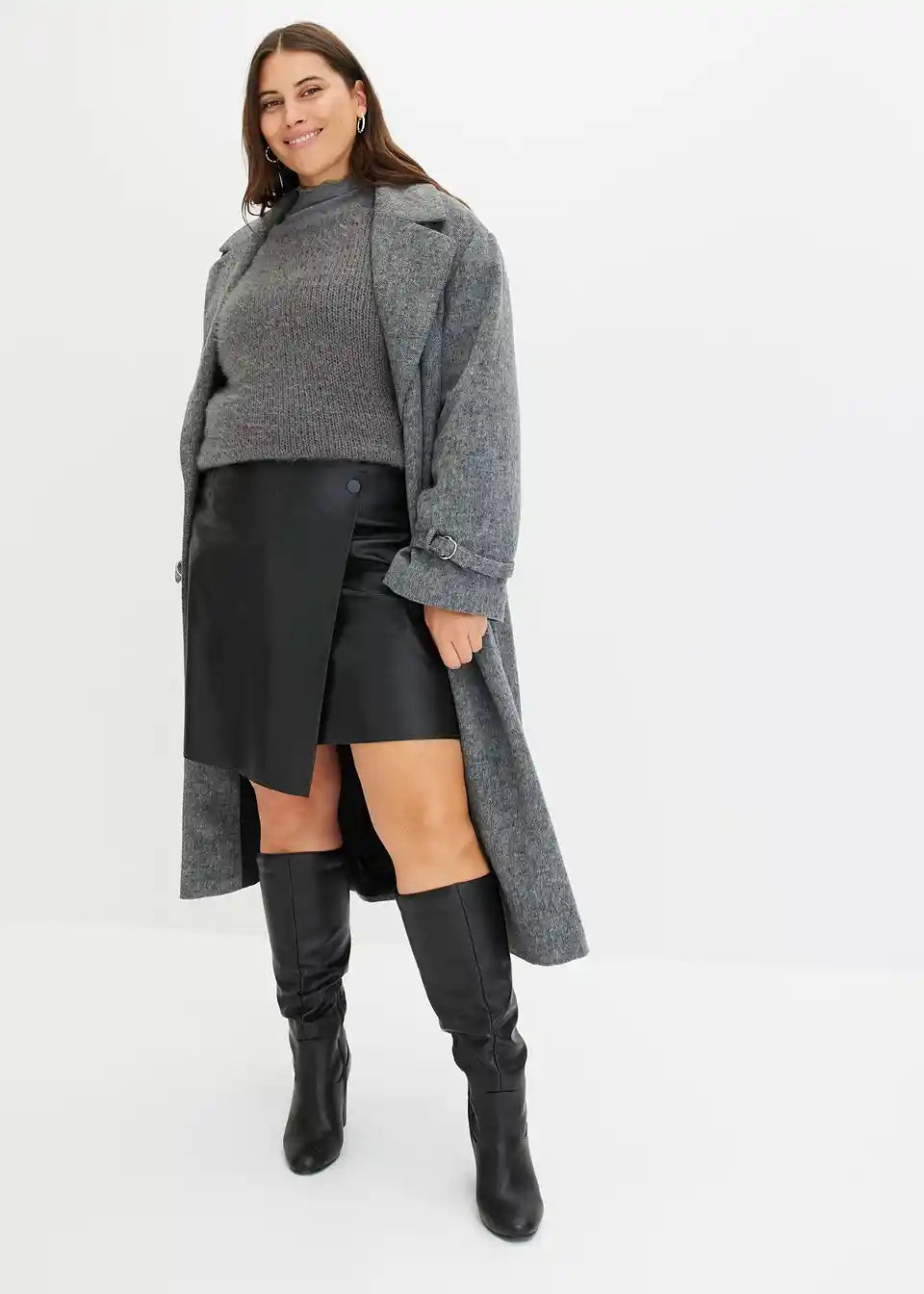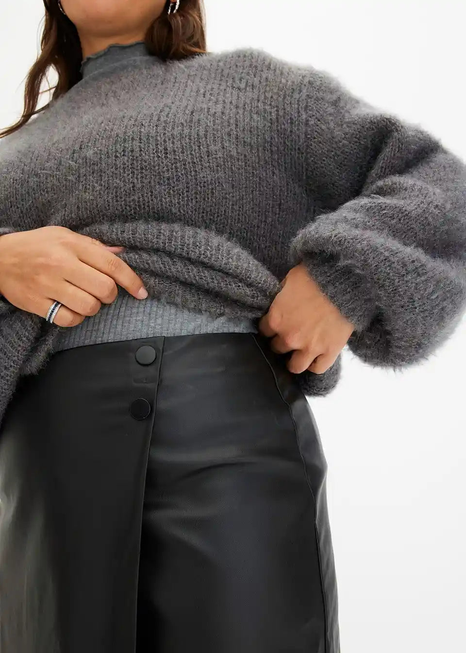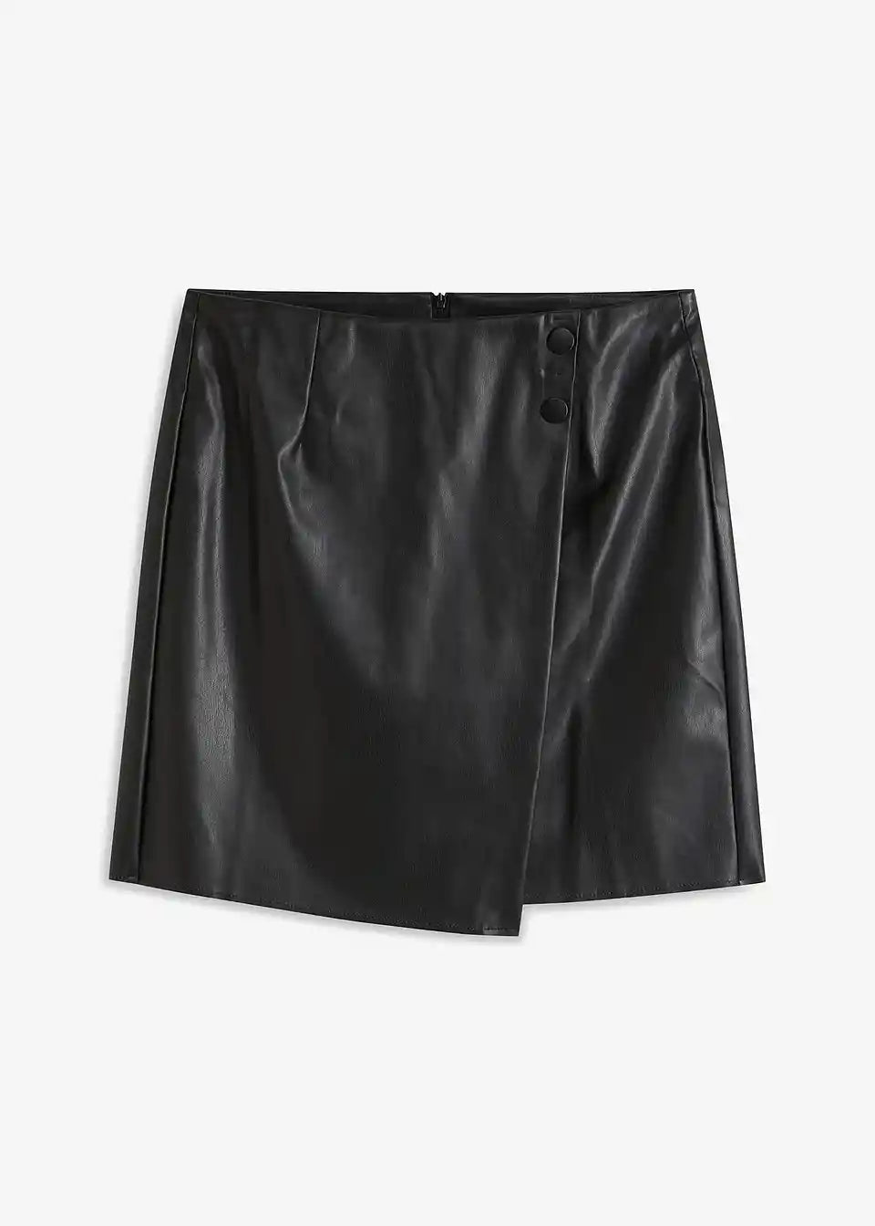 modno krilo iz umetnega usnja s prednjim preklopnim videzom