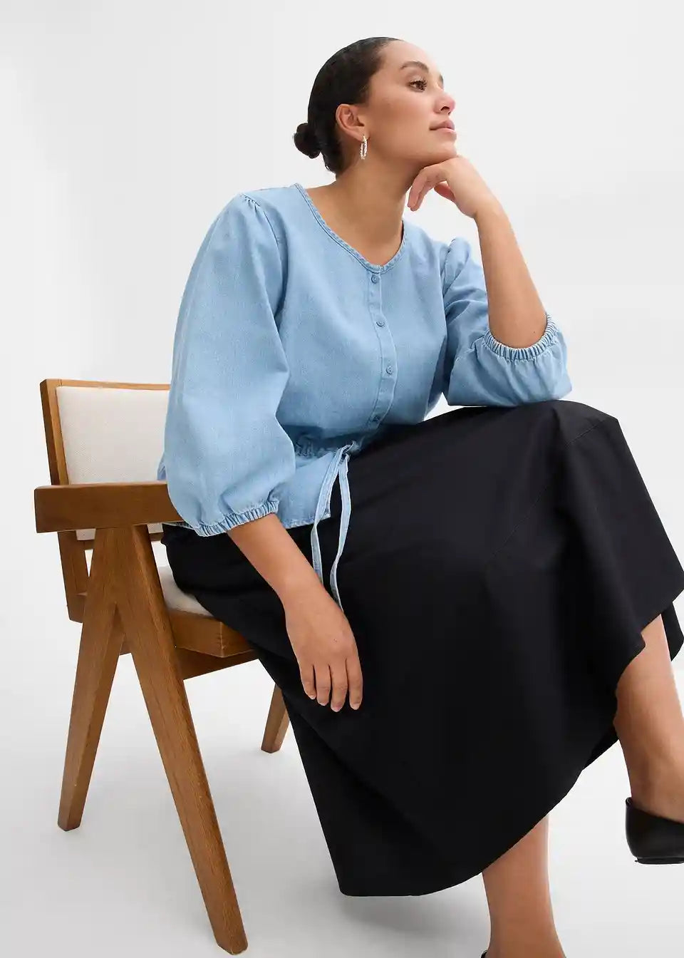 Midi krilo v A-kroju iz čistega bombaža z žepi