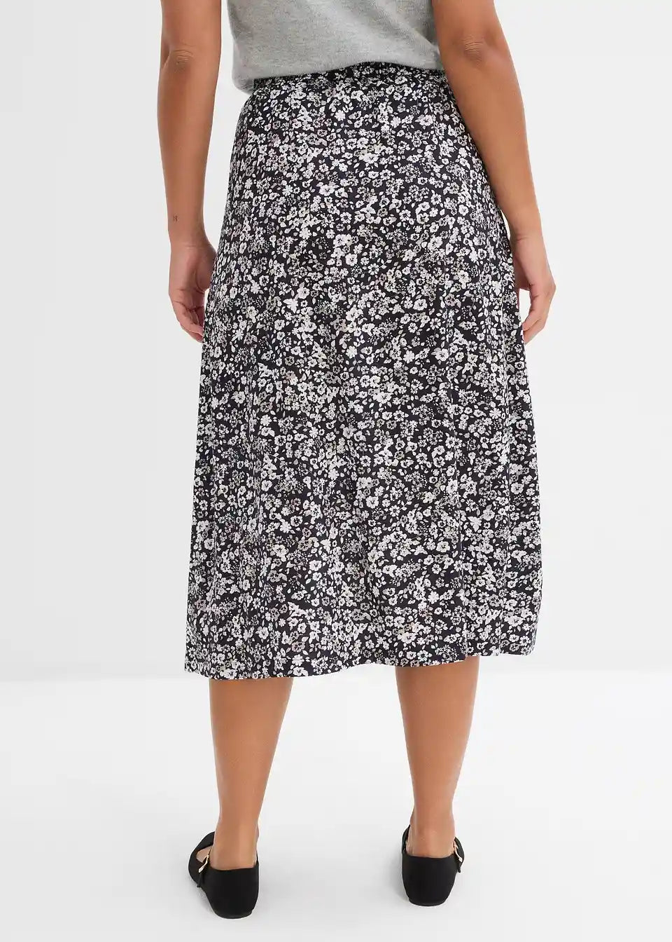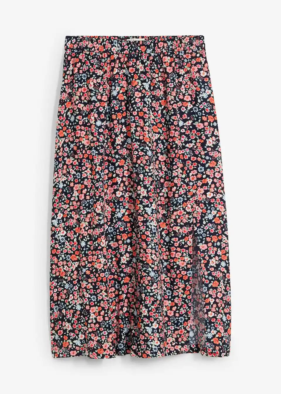 Midi krilo iz viskoze s stranskim razporkom in elastičnim udobnim pasom.