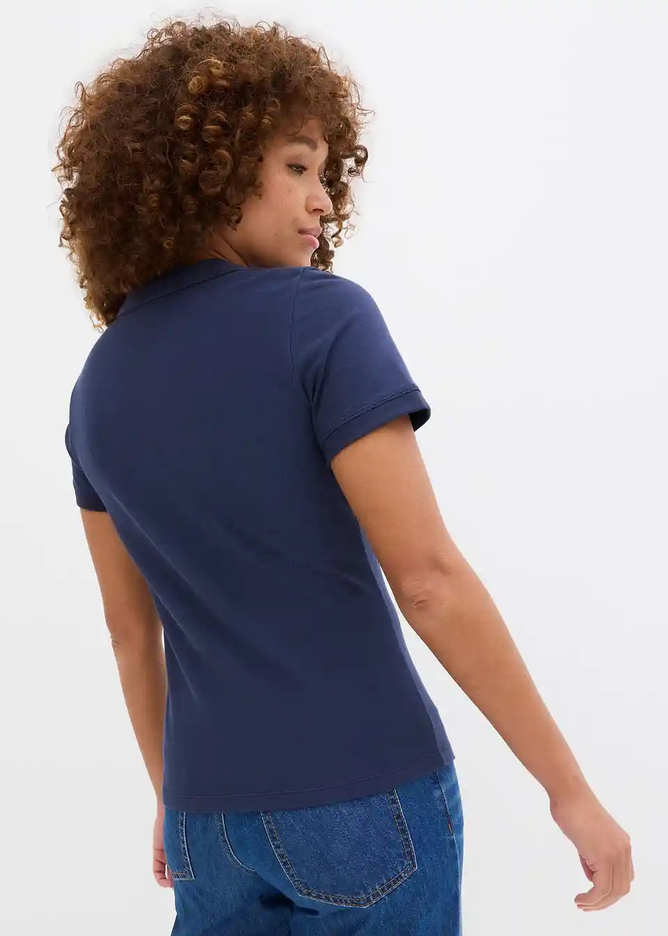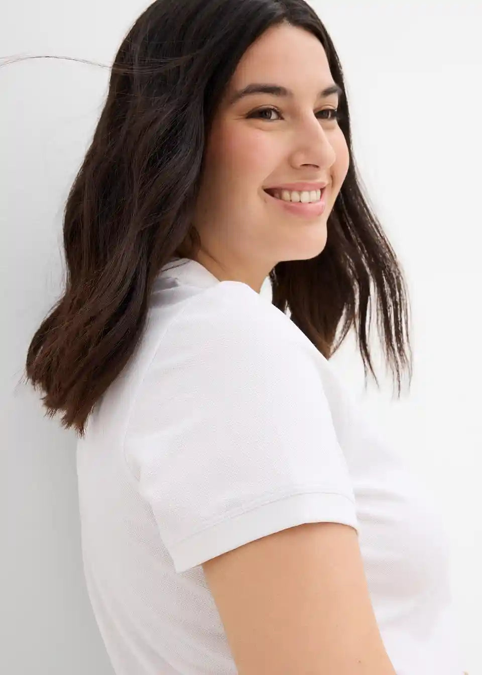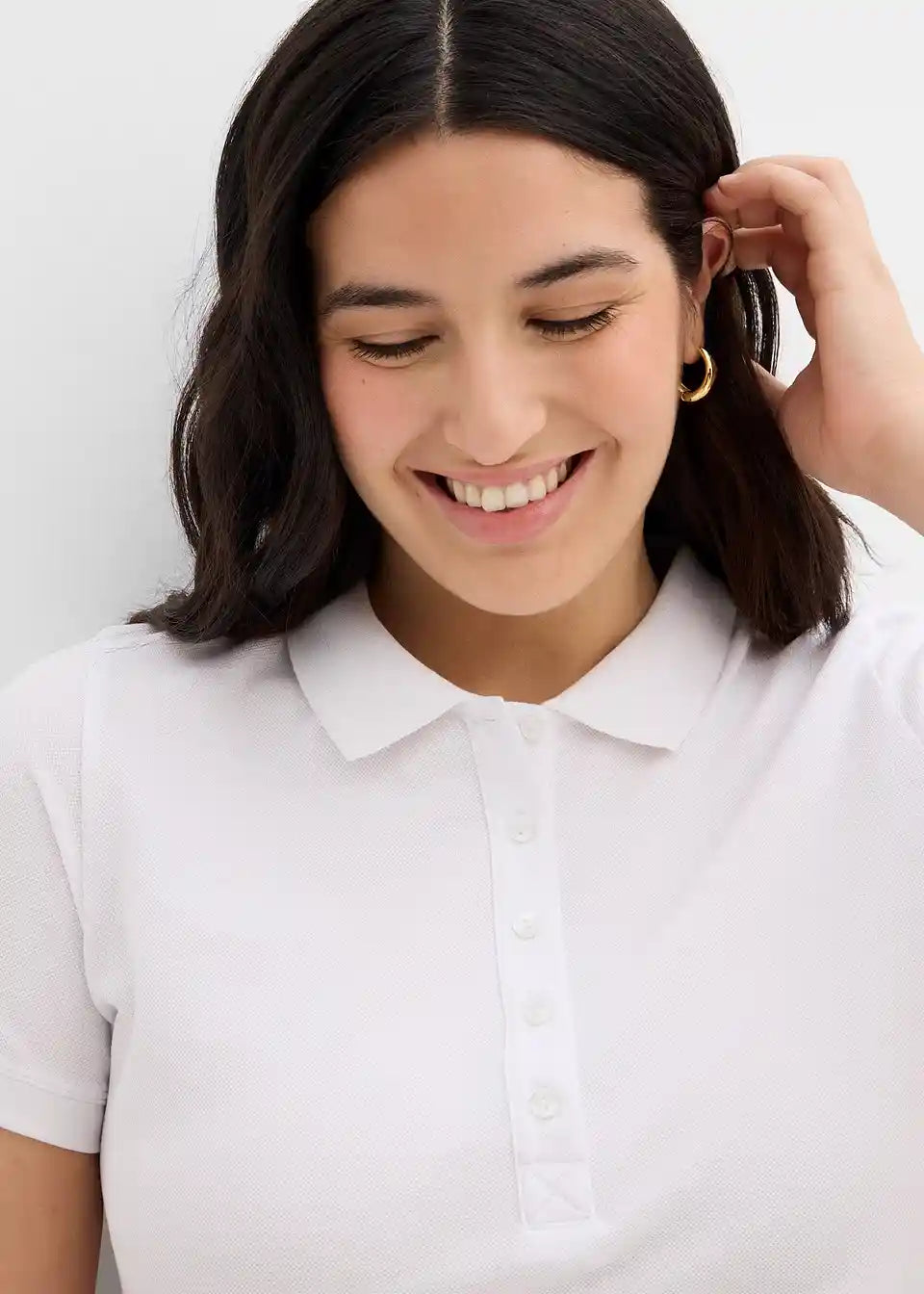 Klasična polo majica iz pikeja z letvijo z gumbi iz ekološkega bombaža. Dolžina pri velikosti 40/42 ca. 62 cm. Strojno pranje.