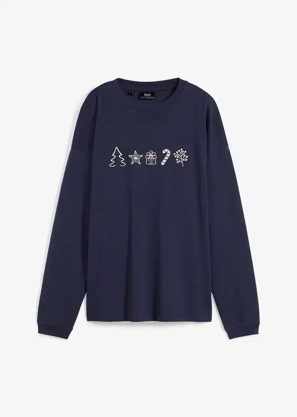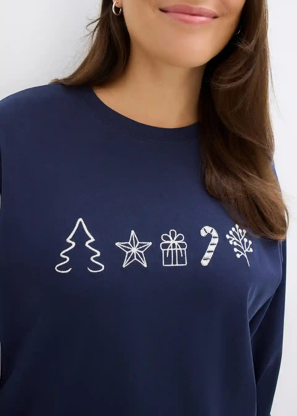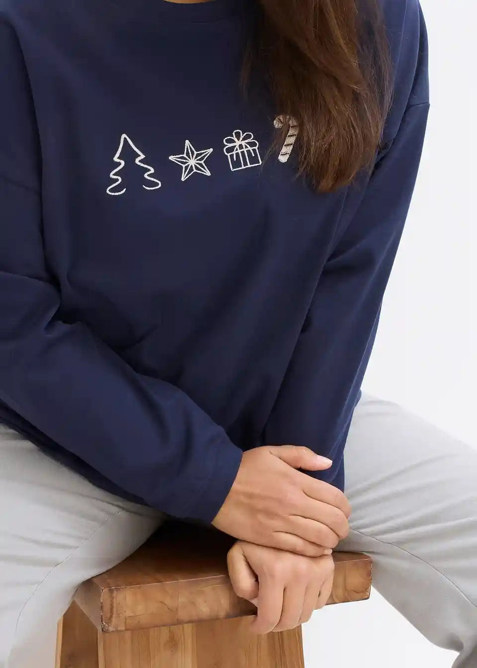 Ležerno krojena dolgoročajna majica z božičnim vezenjem