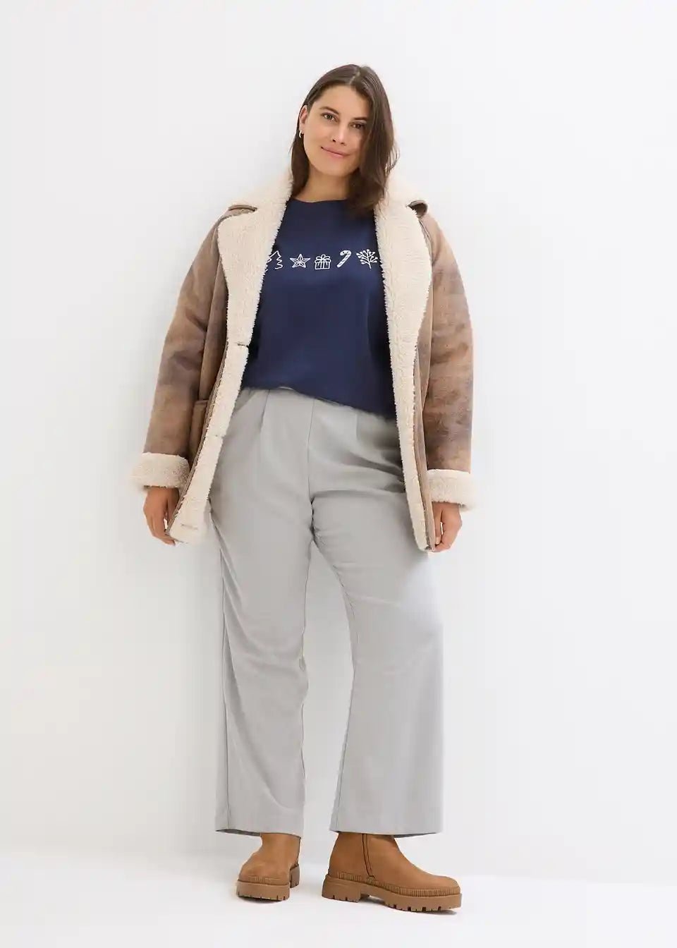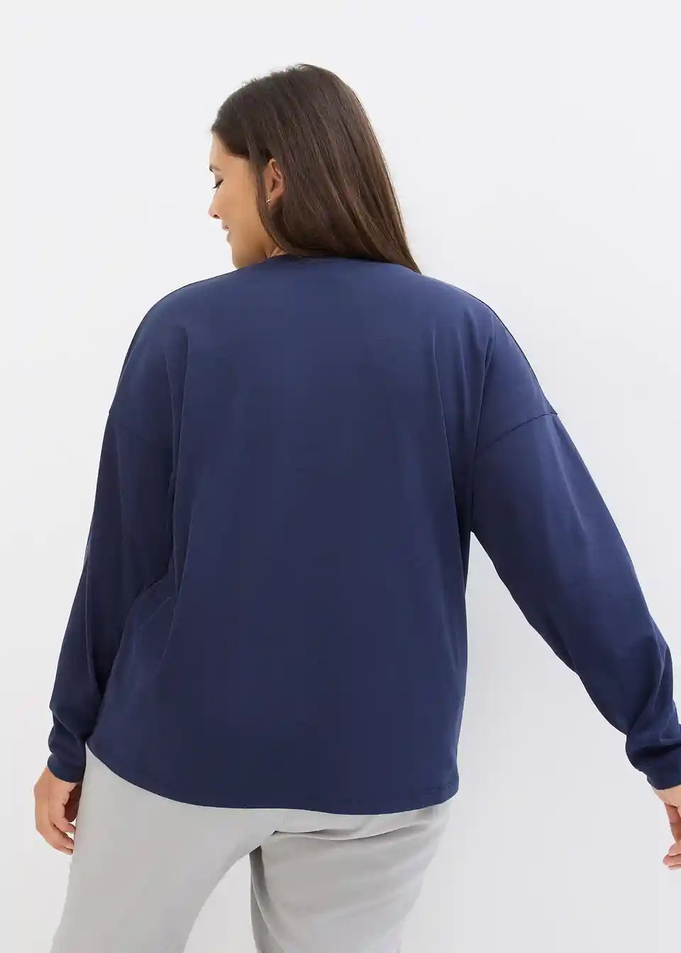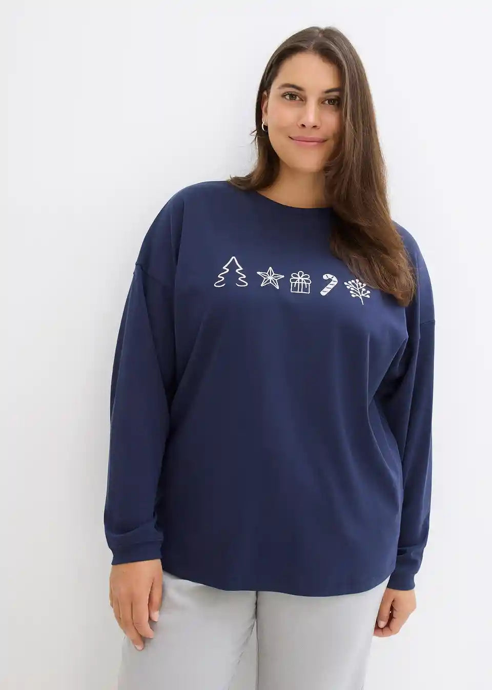 Ležerno krojena dolgoročajna majica z božičnim vezenjem