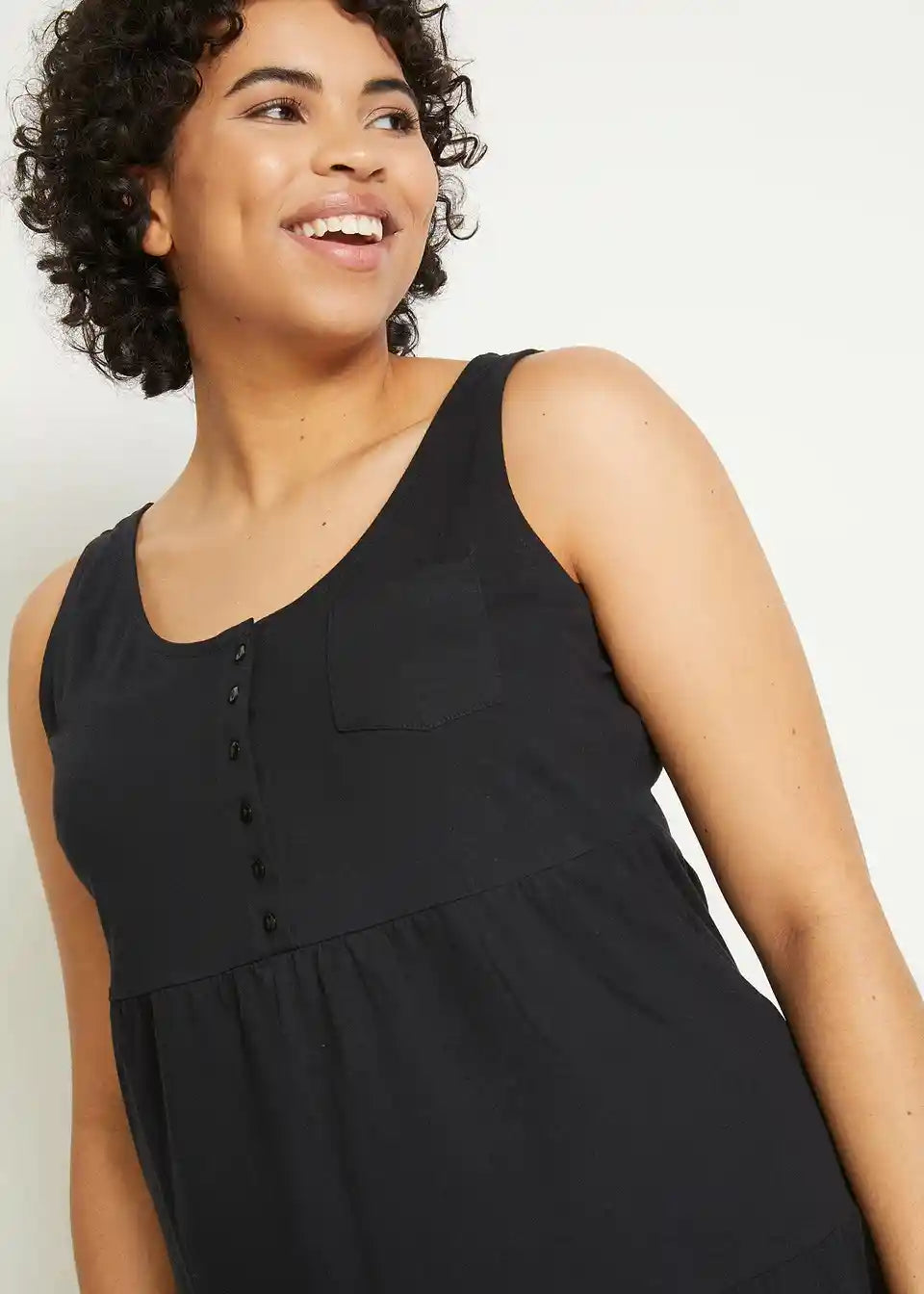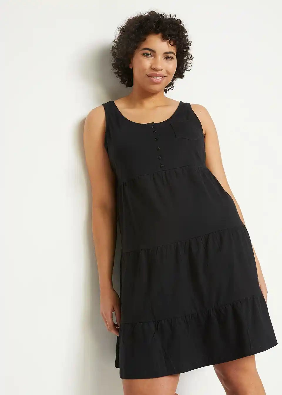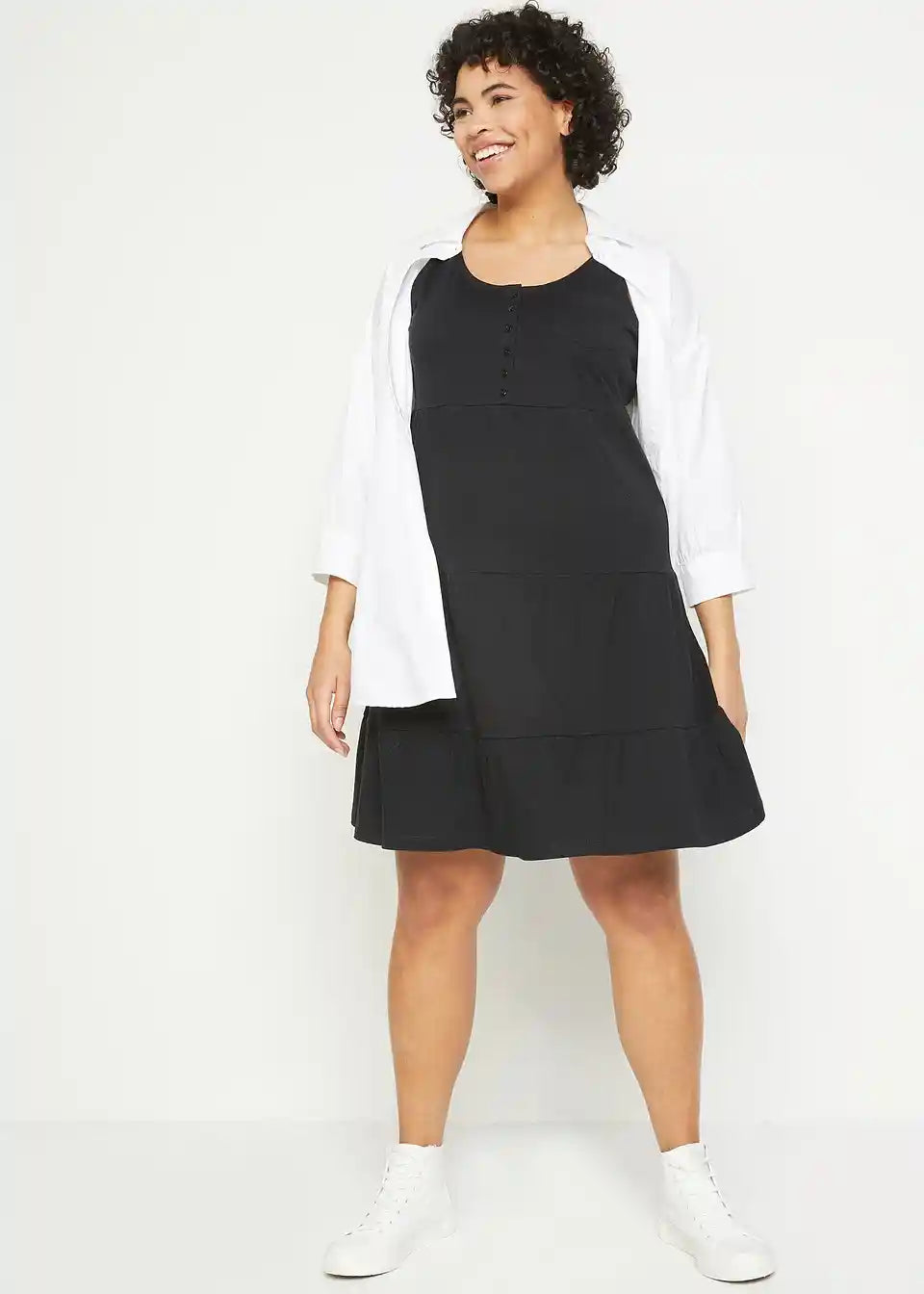 Ta majica-obleka je popoln spremljevalec ob lepih poletnih dneh: Zračna bombažna kakovost in ohlapen, postavi prijazen kroj poskrbita za lahkoten občutek nošenja.
