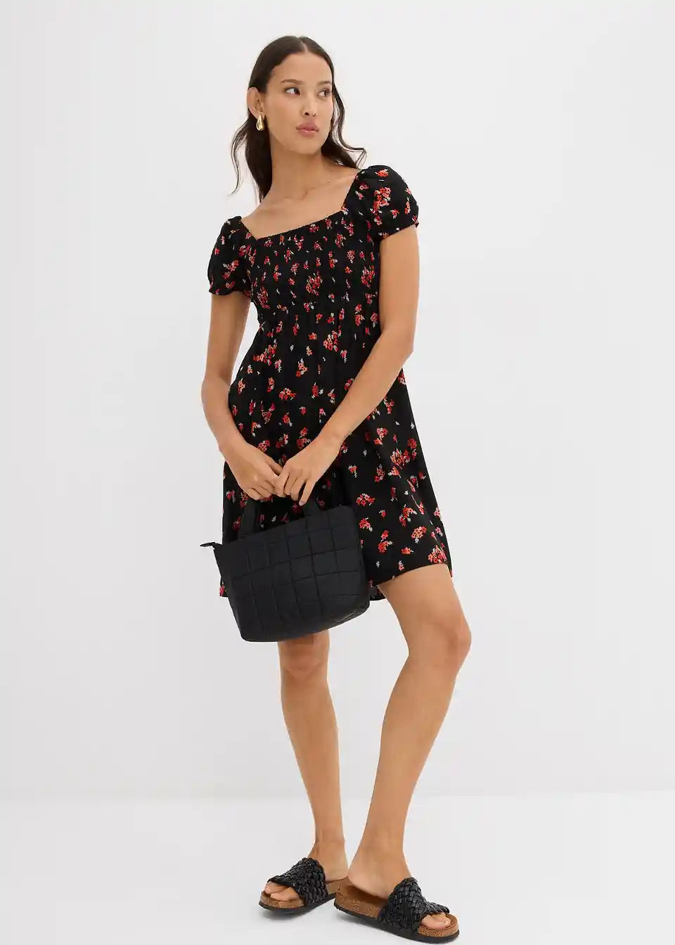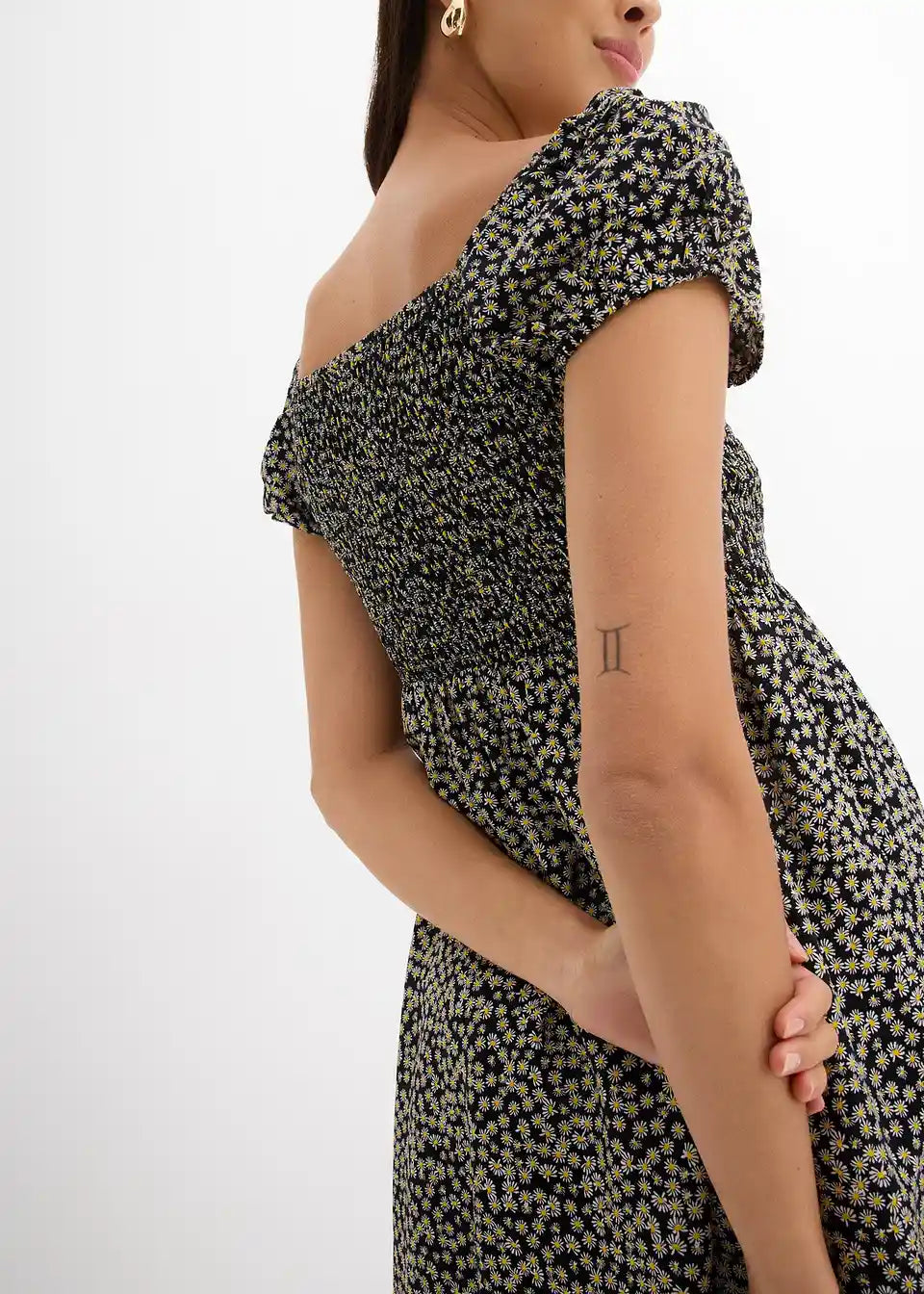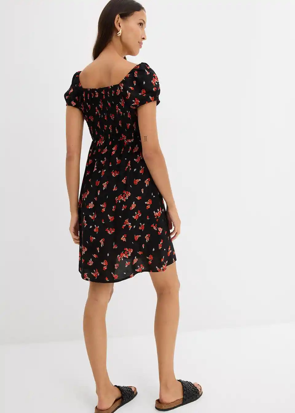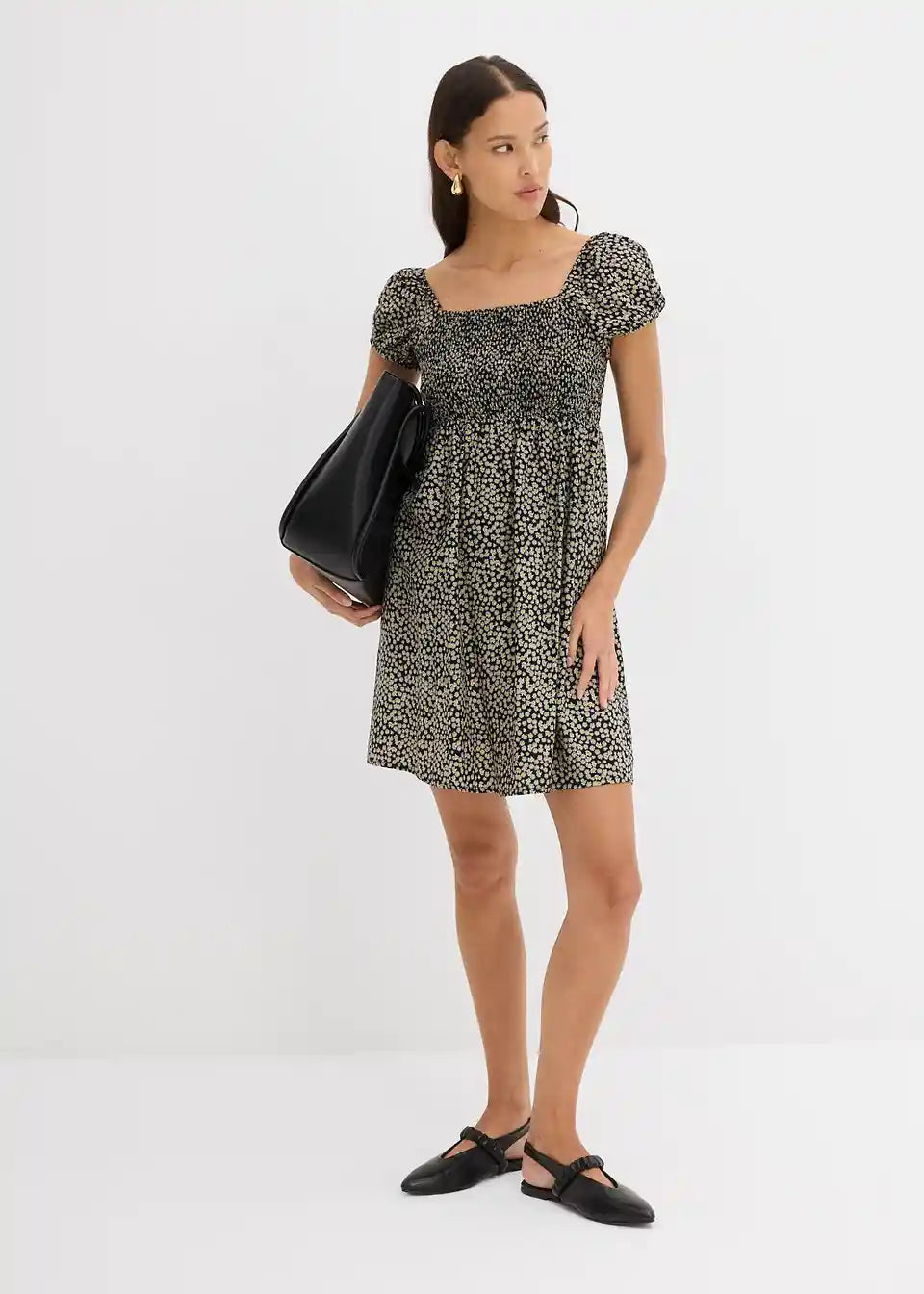 Trendna mini obleka z gostim naborkom in balonastimi rokavi