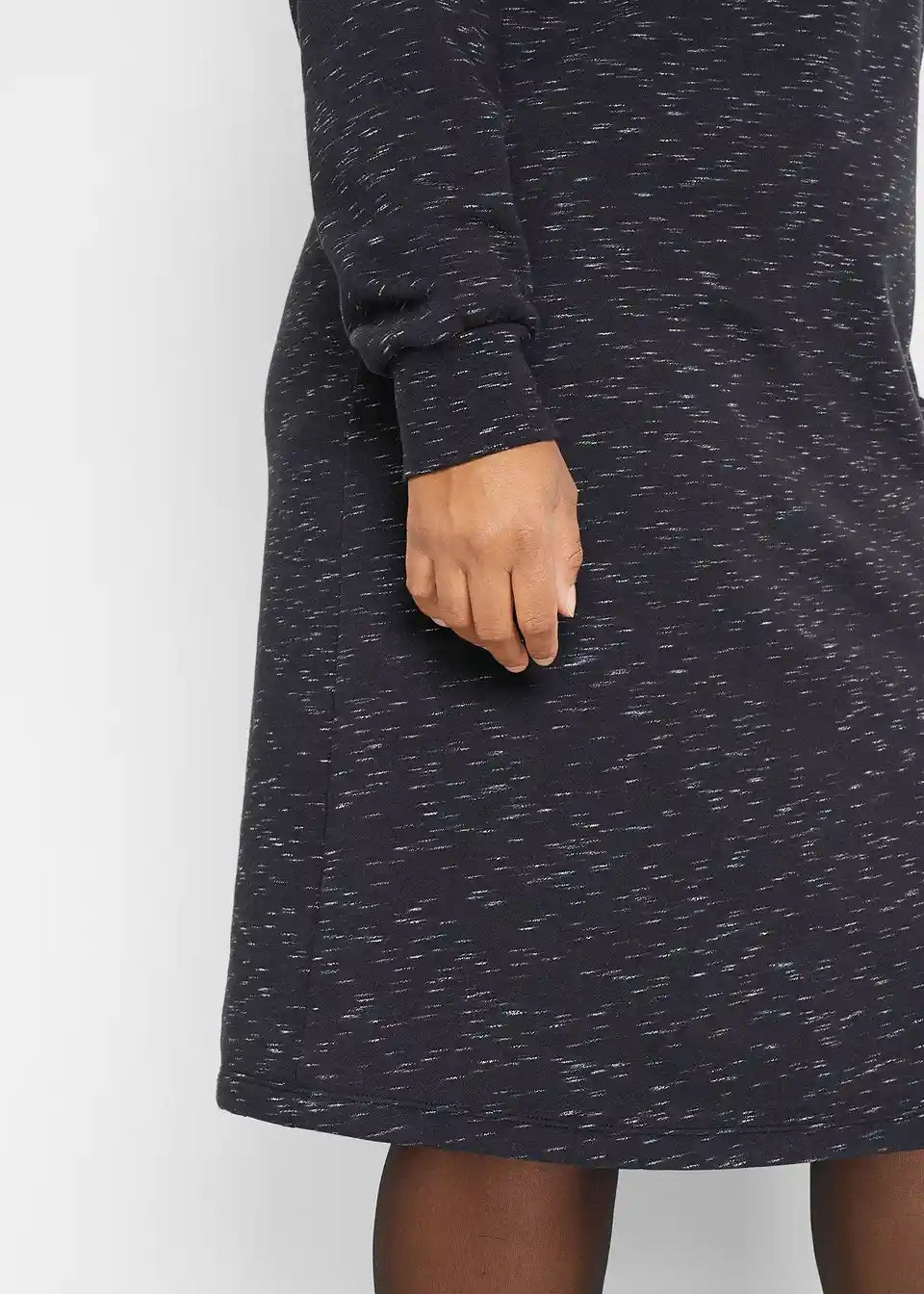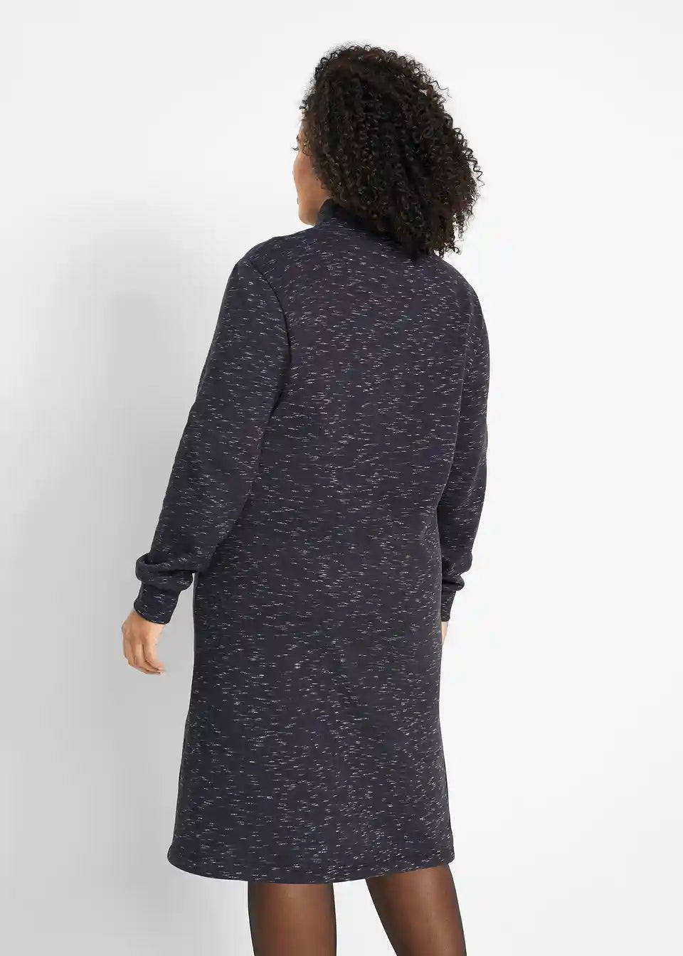 Obleka iz trikoja s trojanskim ovratnikom in pokončnim ovratnikom