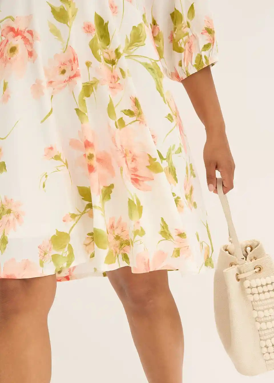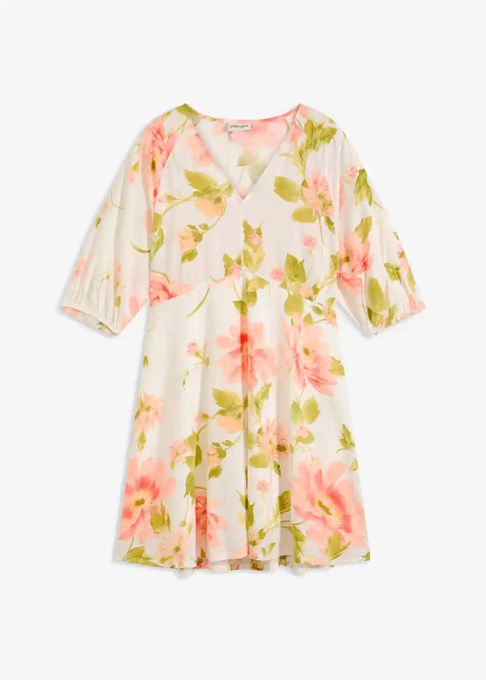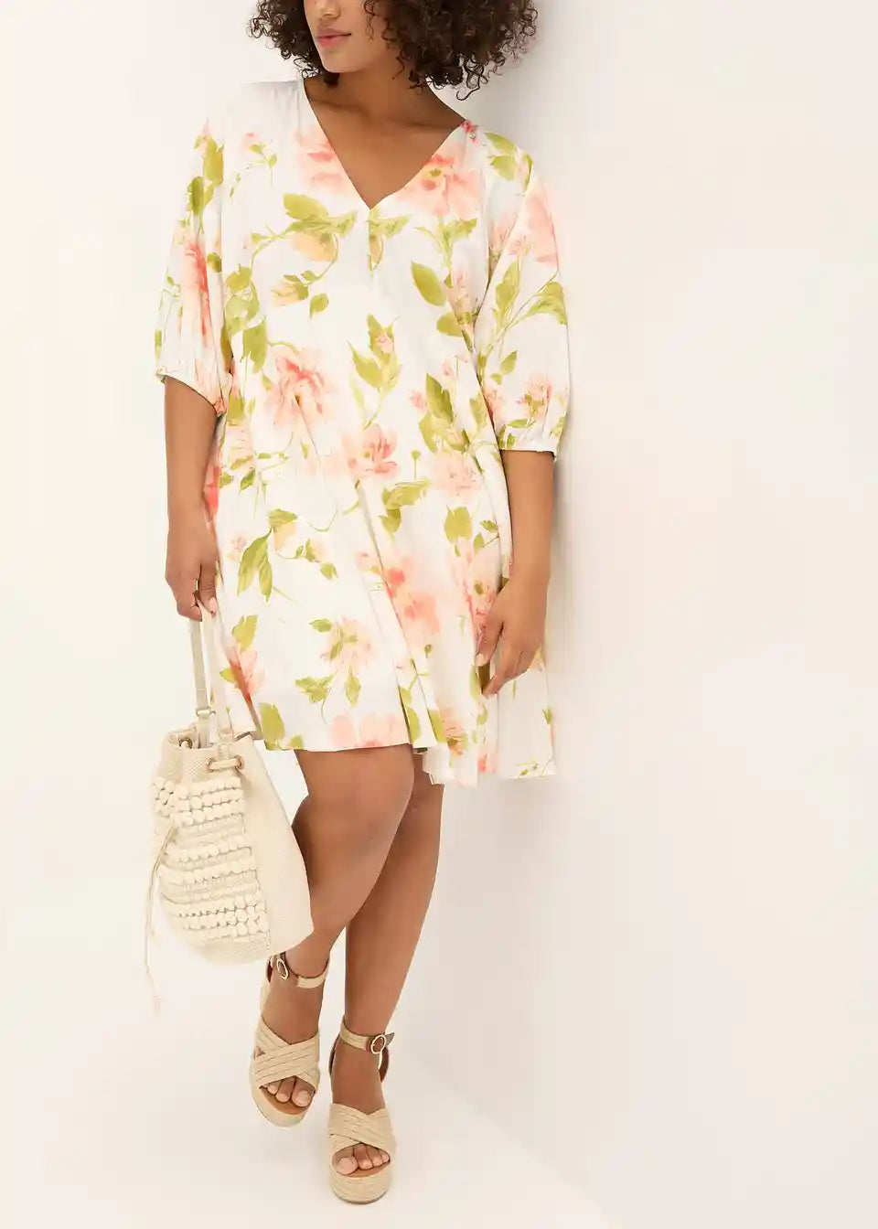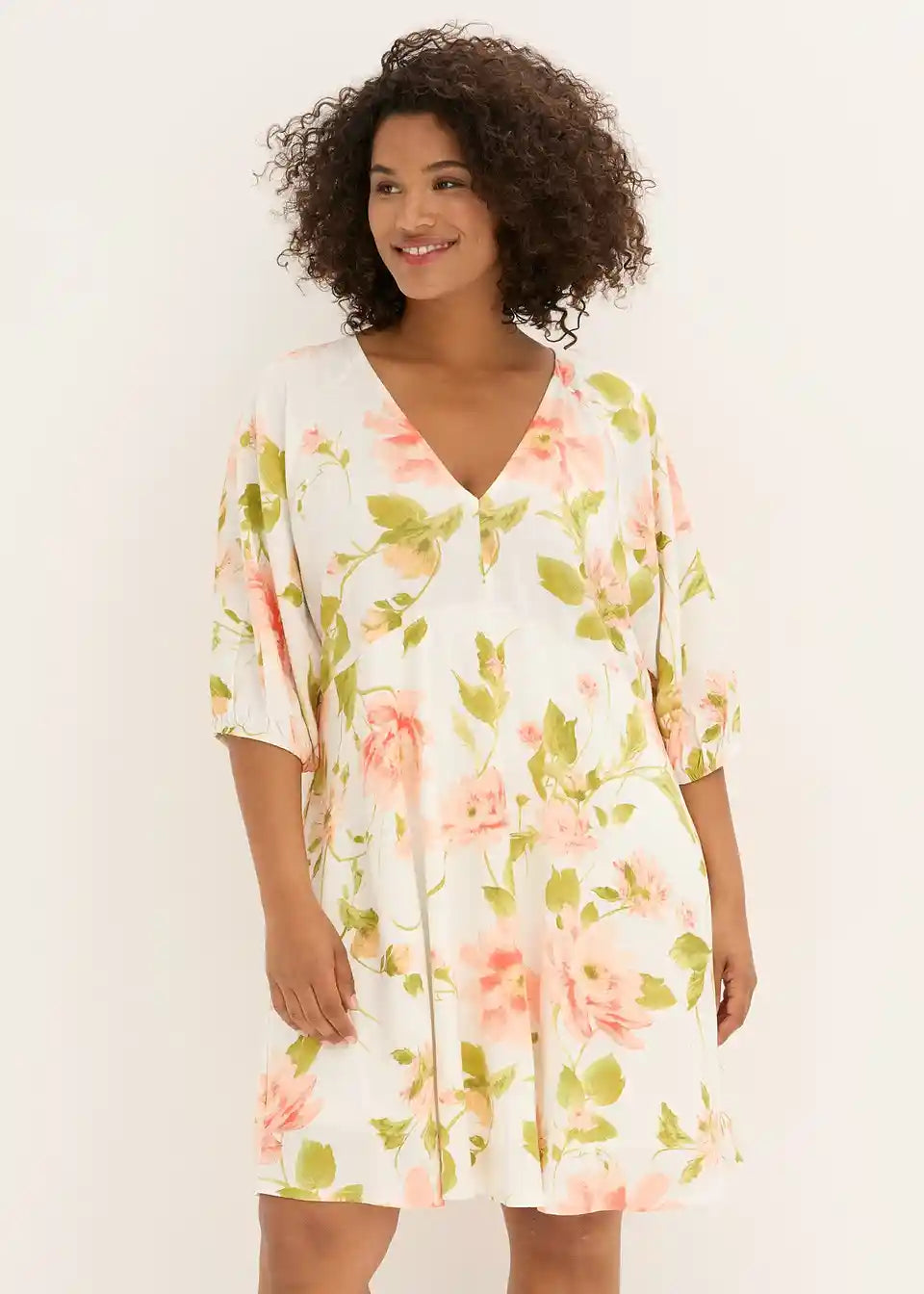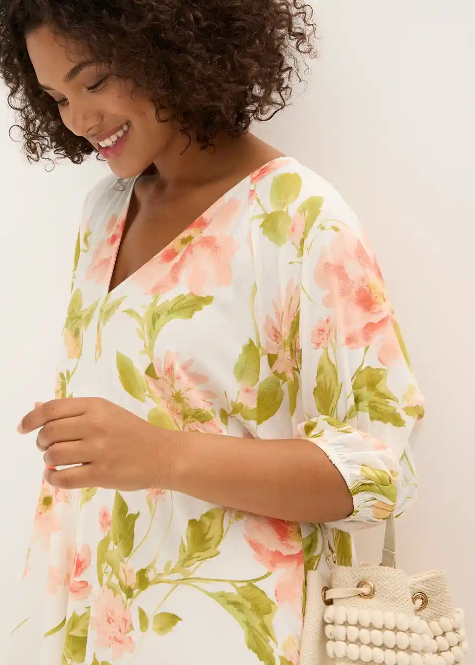 tunika obleka s cvetličnim potiskom iz tekoče viskoze z globokim V-izrezom spredaj