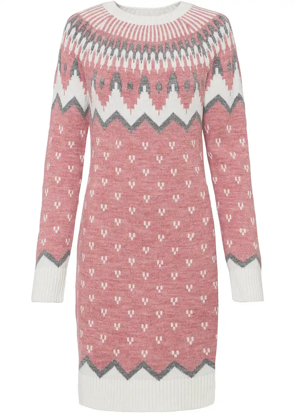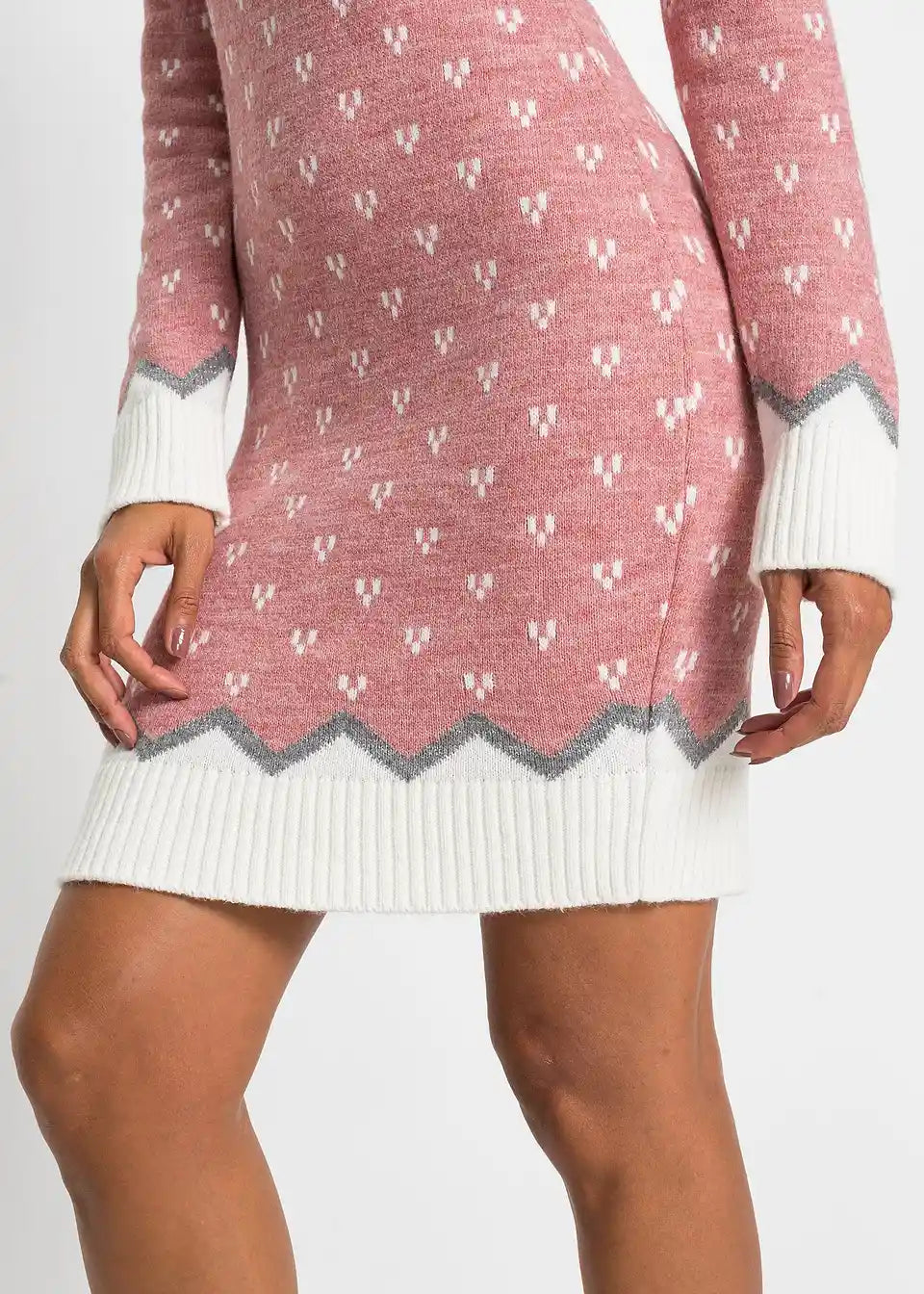 Moderna pletena obleka s čudovitim zimskim vzorcem