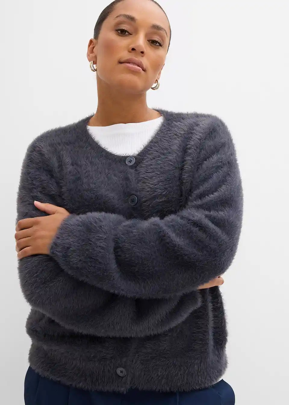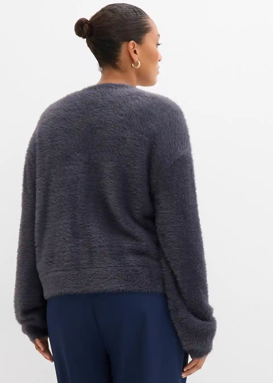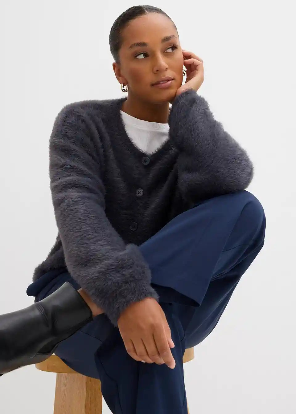 Pletena jopa iz dlakastih vlaken z dolgimi rokavi in letvijo za zapenjanje spredaj