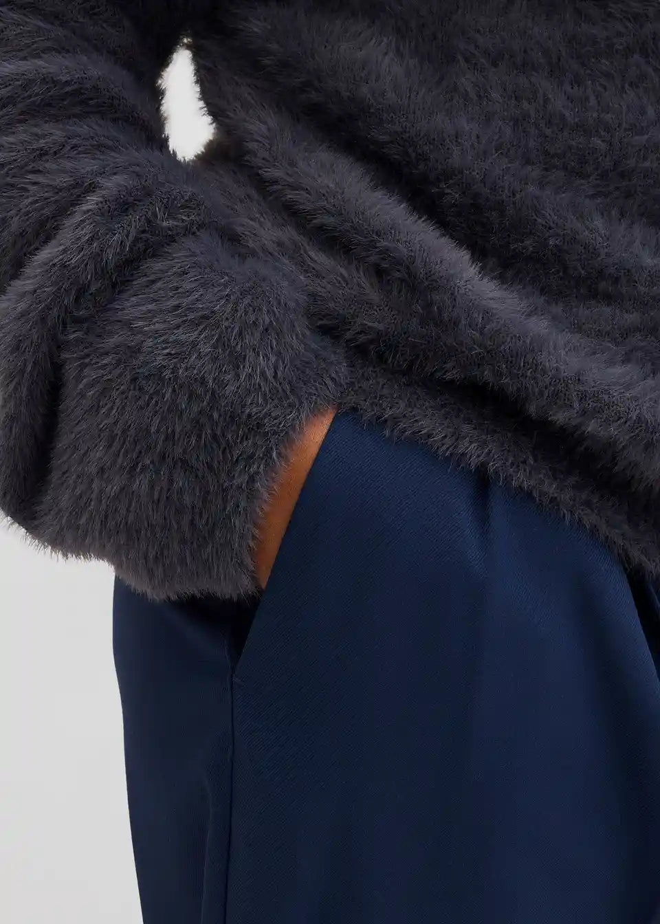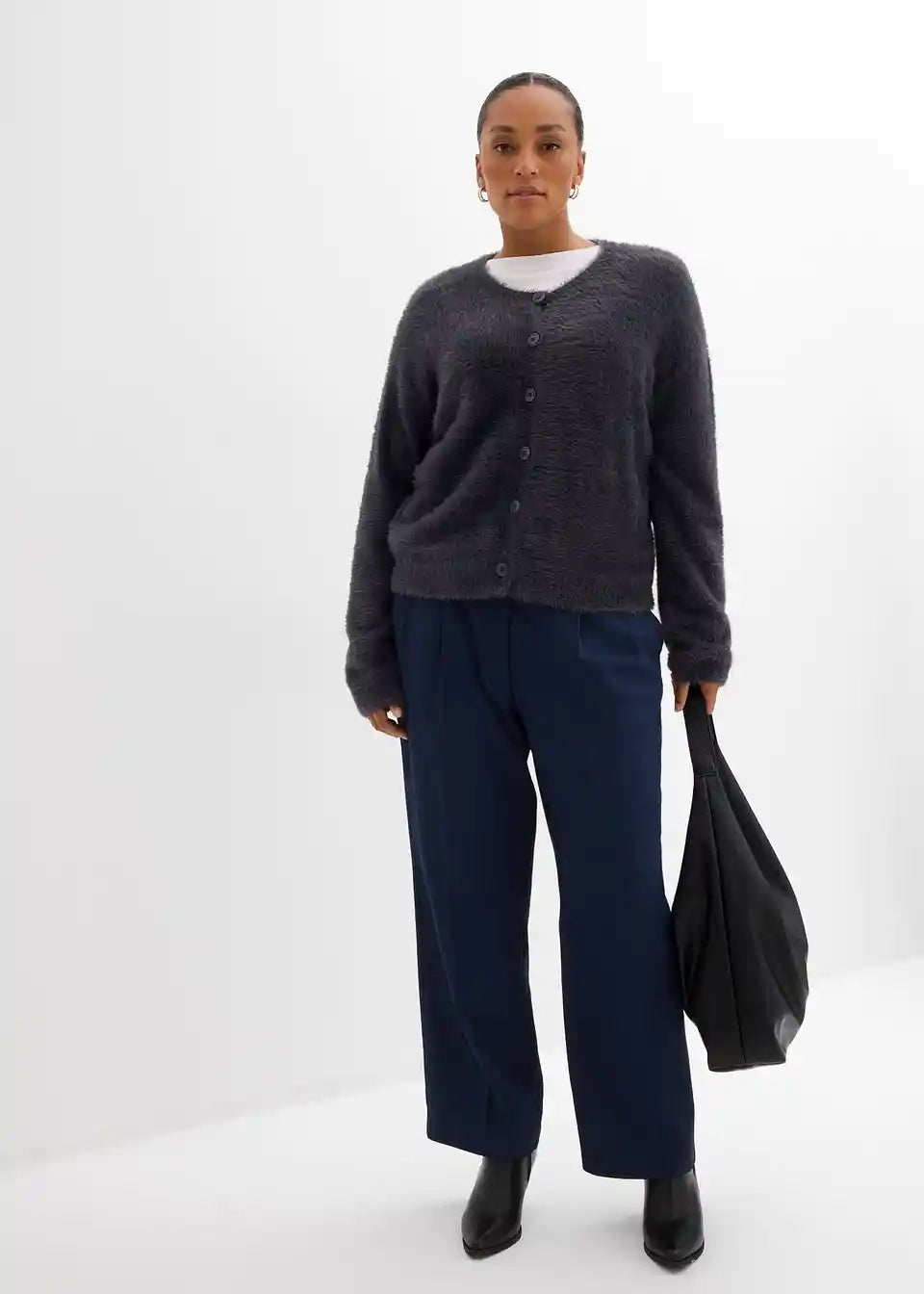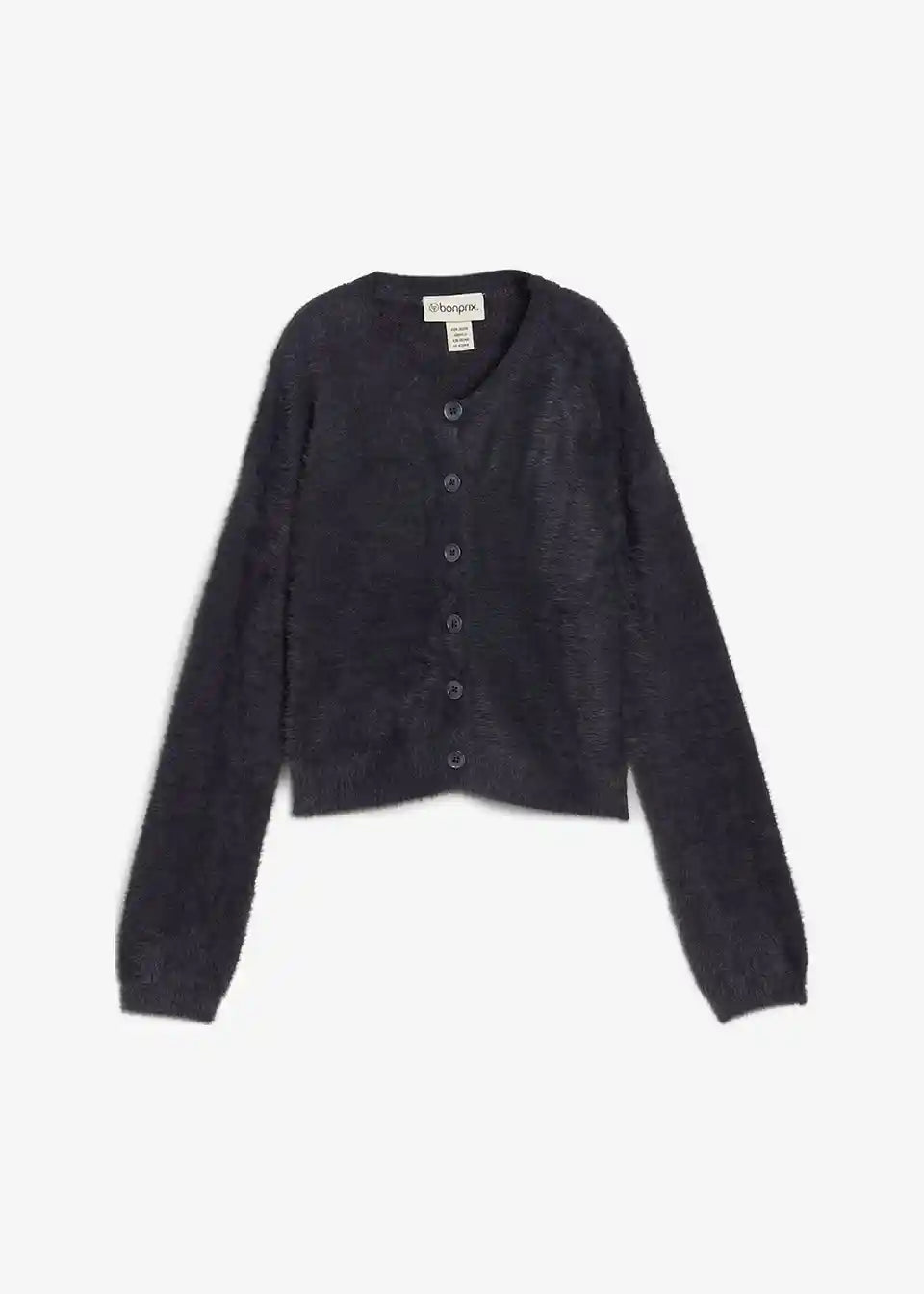 Pletena jopa iz dlakastih vlaken z dolgimi rokavi in letvijo za zapenjanje spredaj