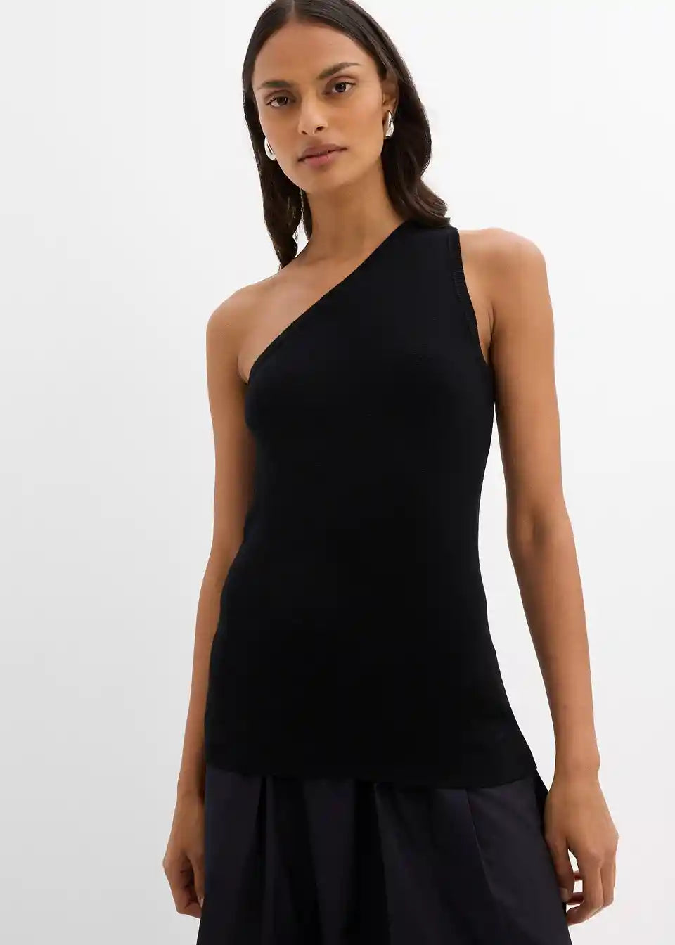 Oprijet top ozkega kroja z asimetričnimi z ramenskimi predeli