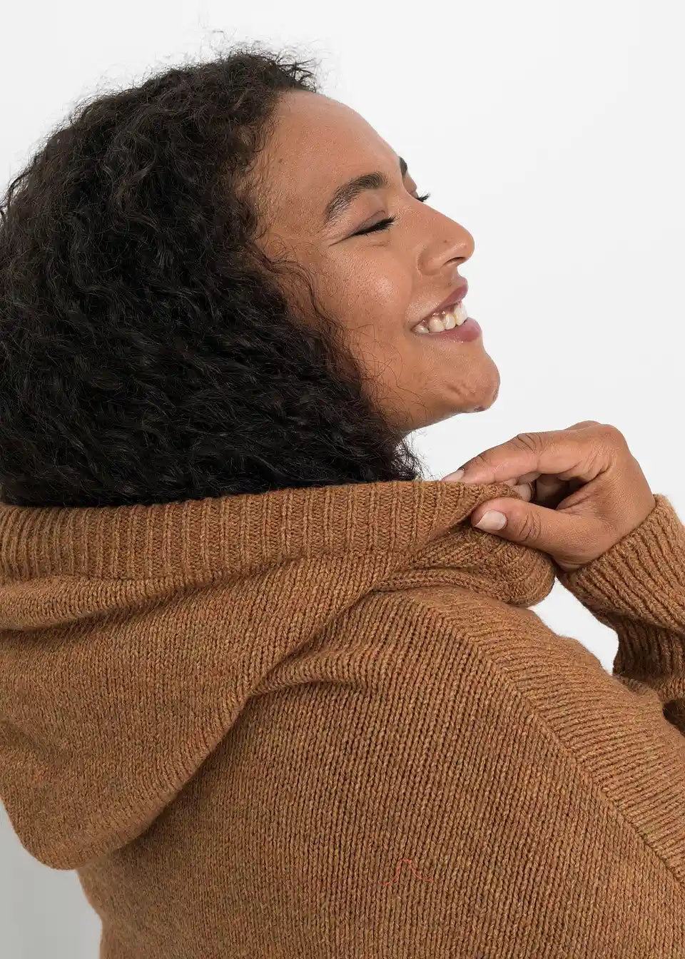 Prijetna pletena majica z dolgimi rokavi in kapuco