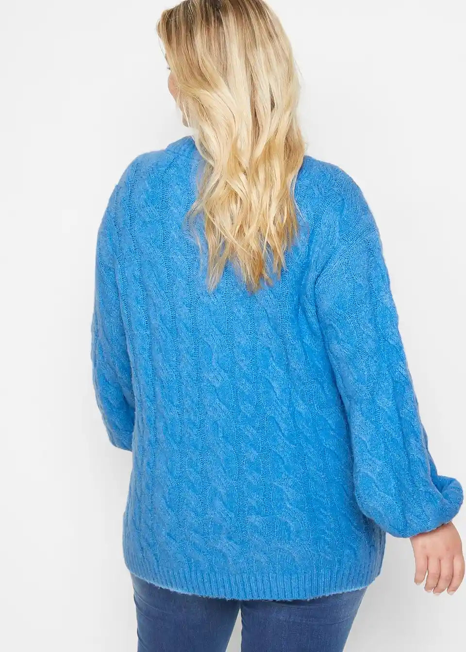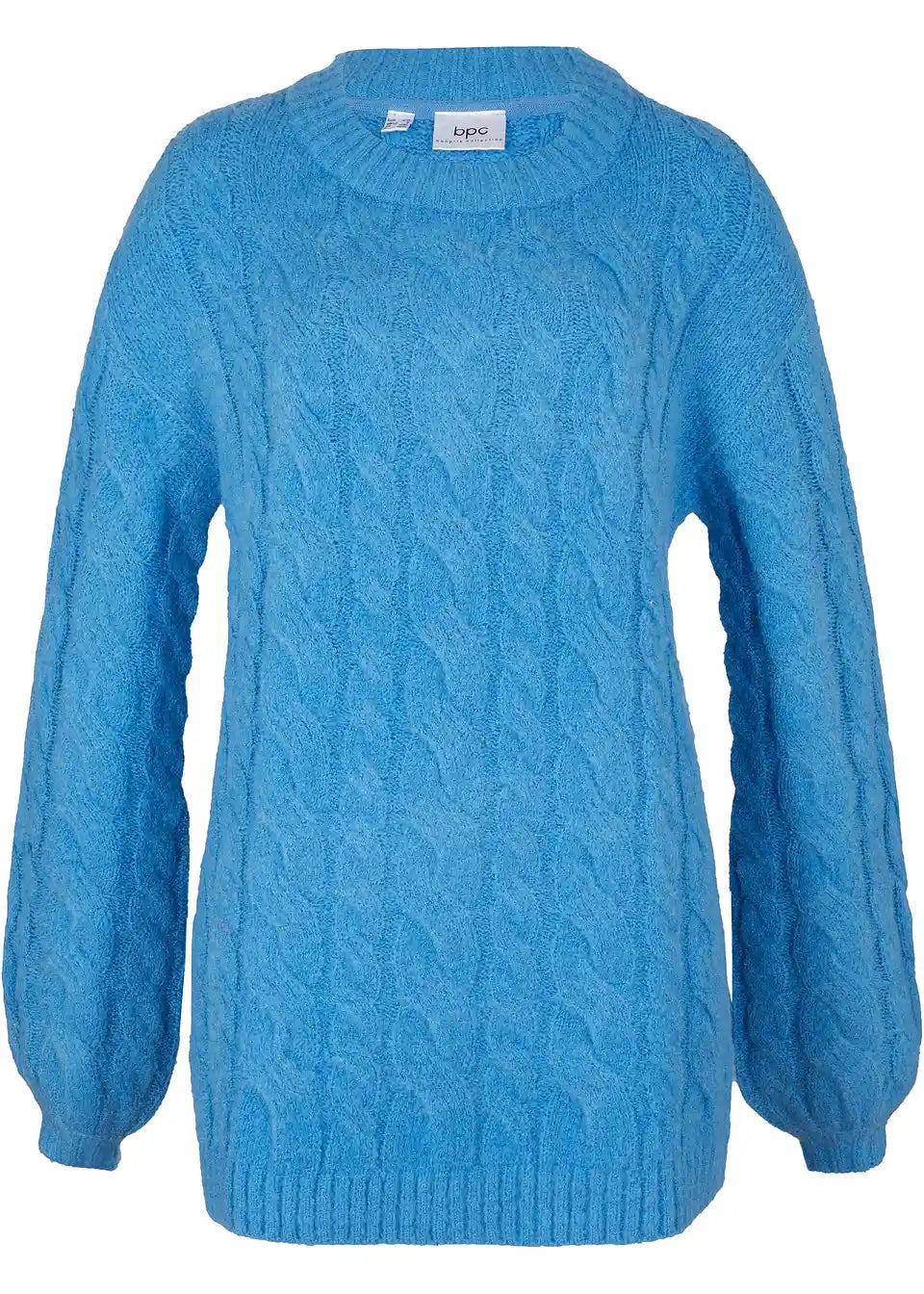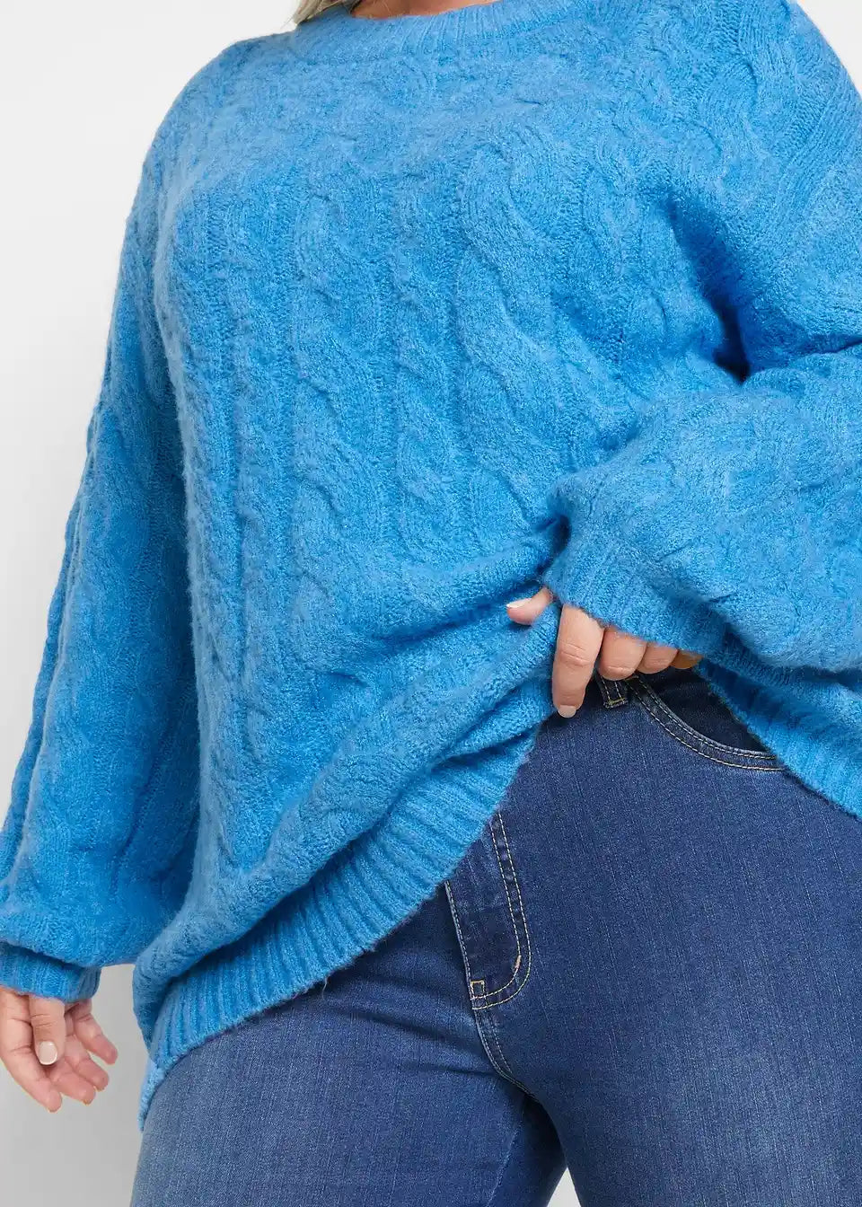 Slogovno Pleteni Pulover z Velikimi Rokavi in Vzorcem Pletenice
