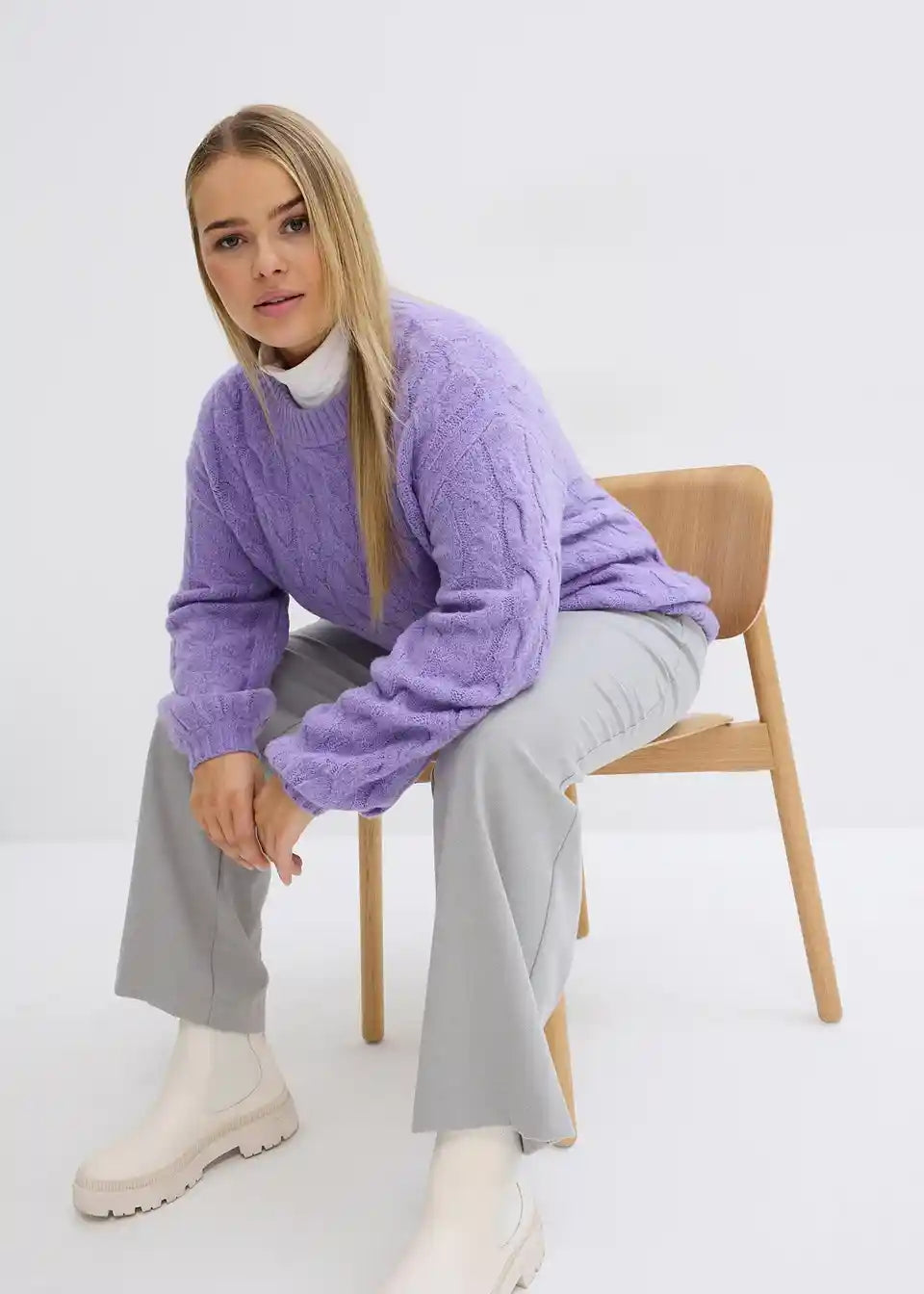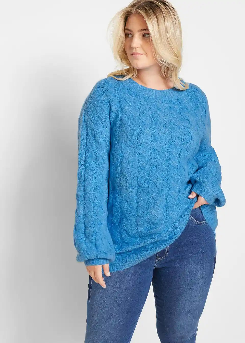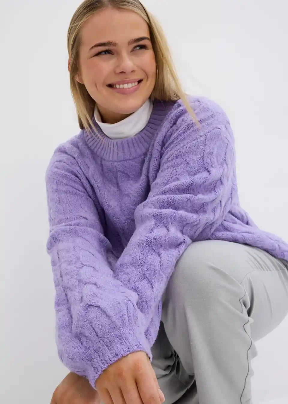 Slogovno Pleteni Pulover z Velikimi Rokavi in Vzorcem Pletenice