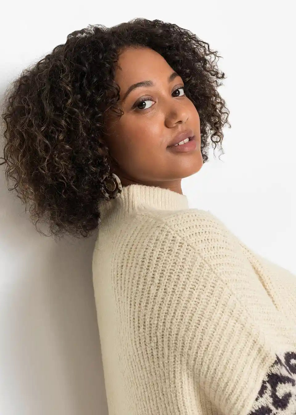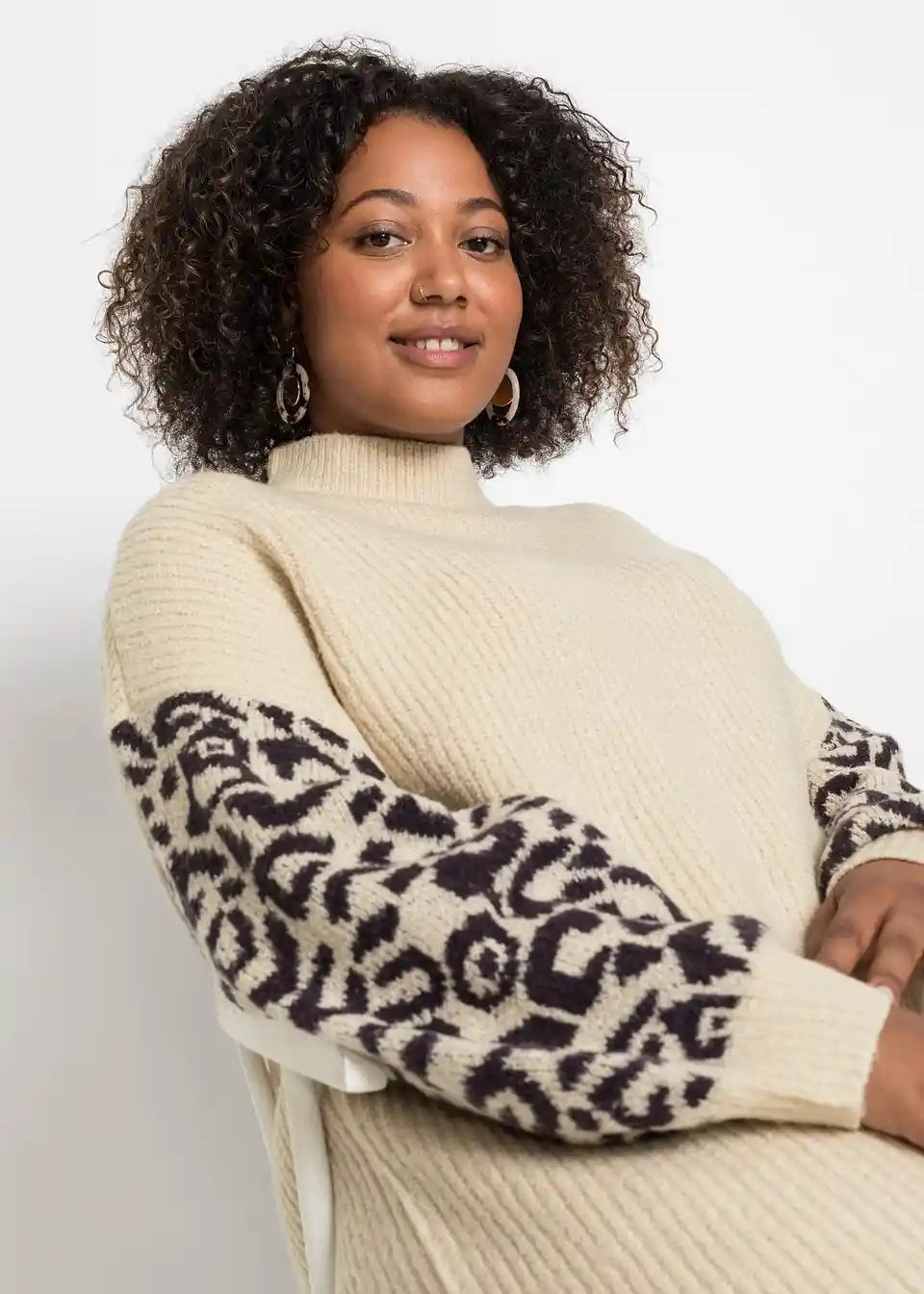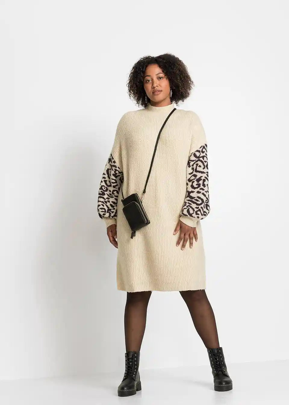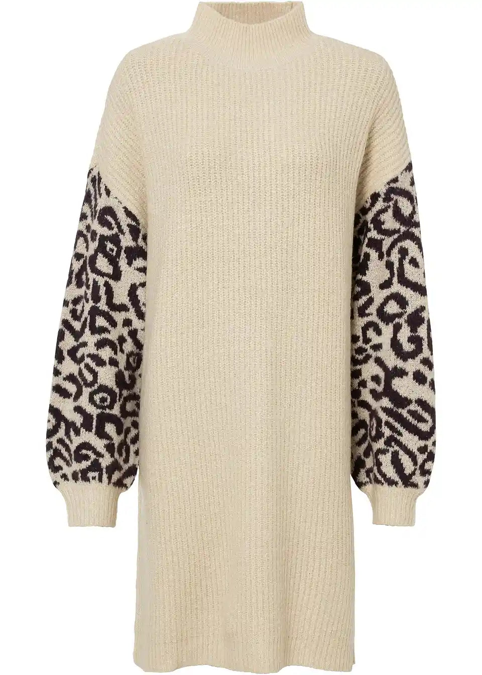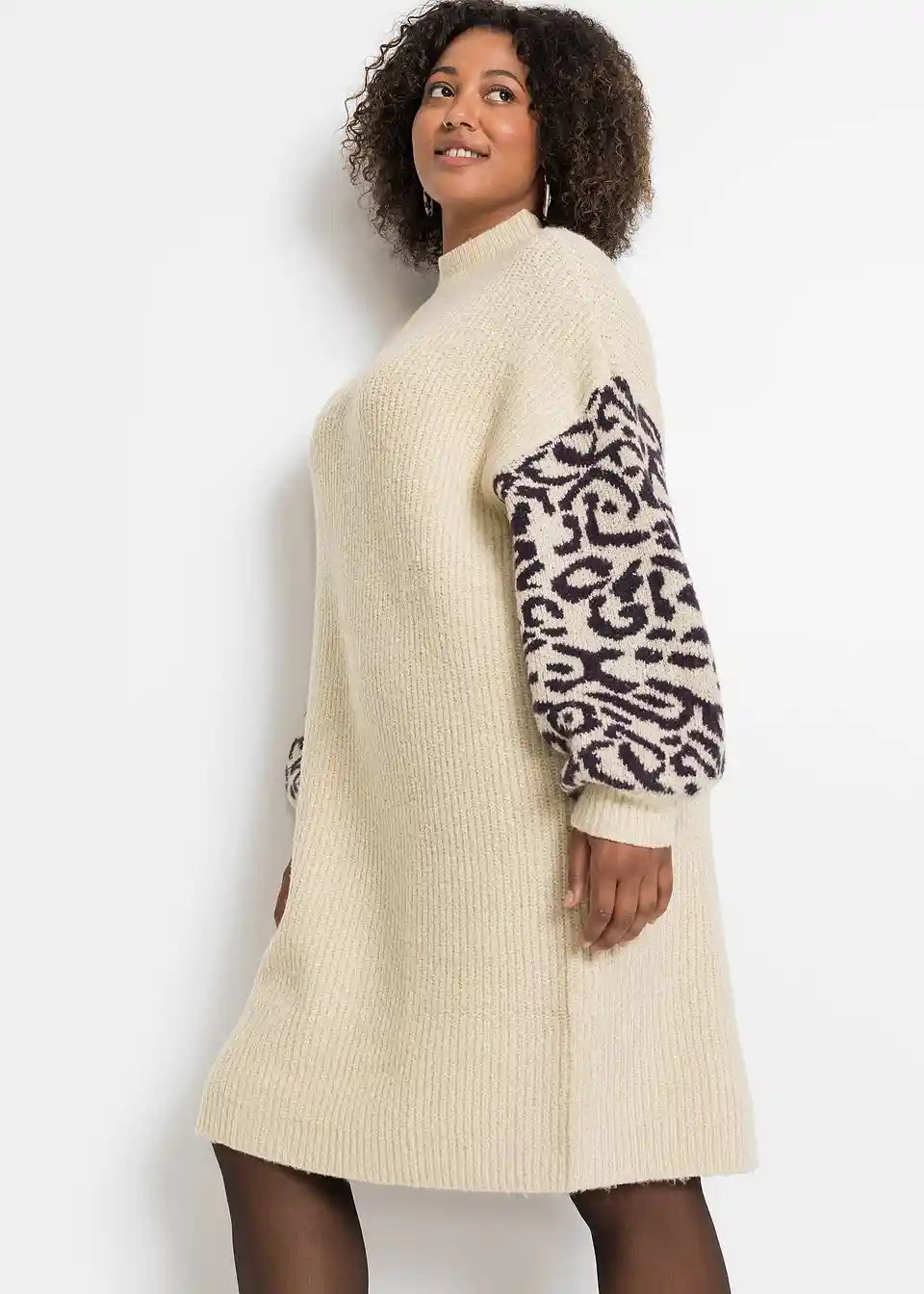 Stilska pletena obleka z Leovzorcem na balonastih rokavih