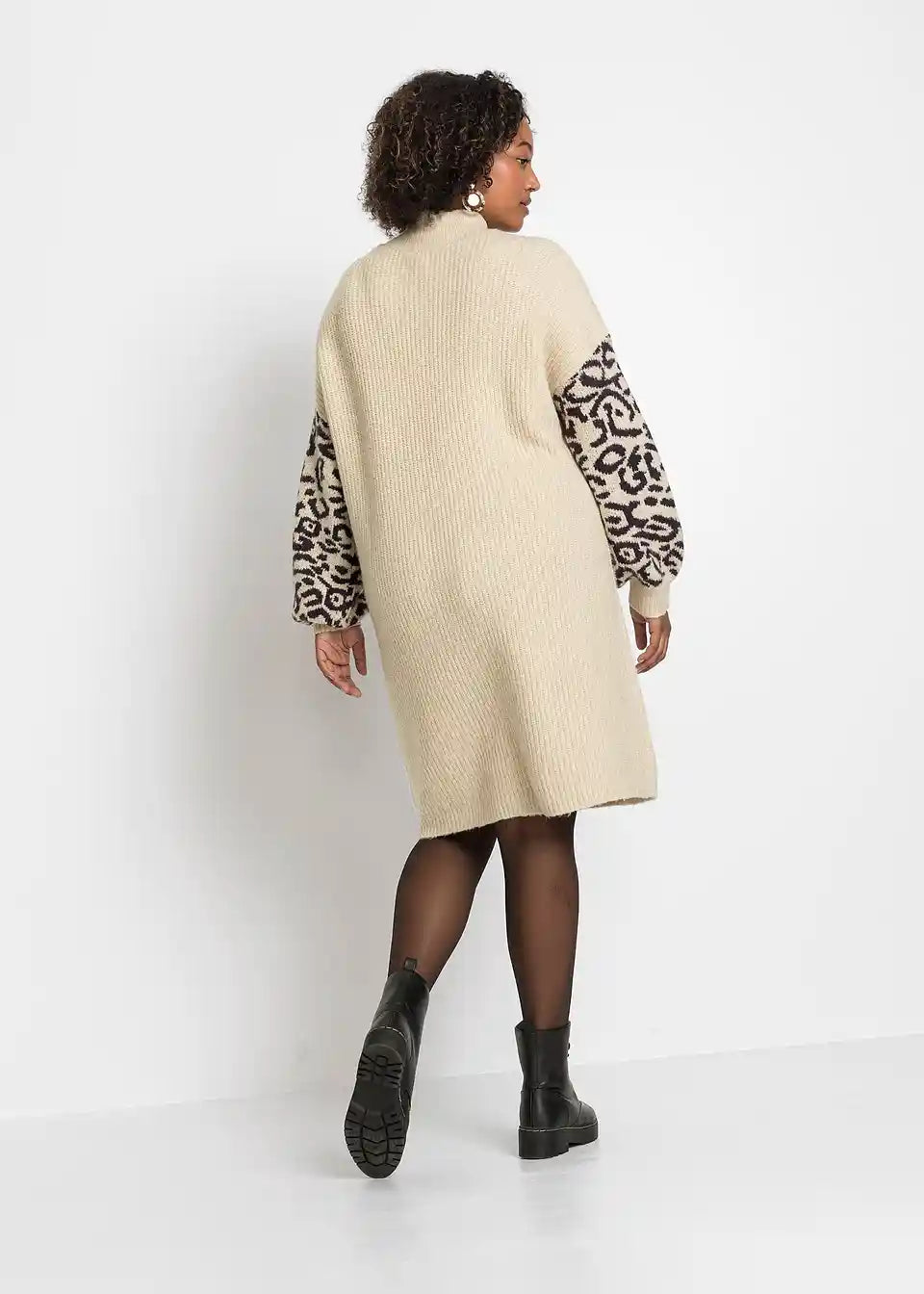 Ohlapna pletena obleka z leopardjim živalskim vzorcem