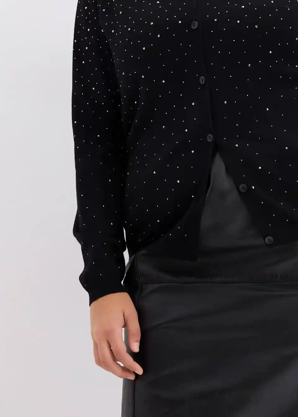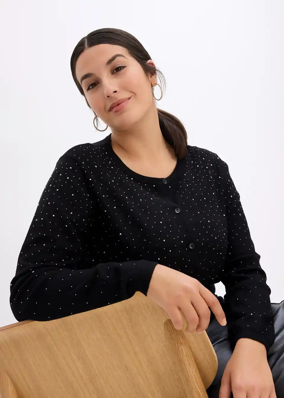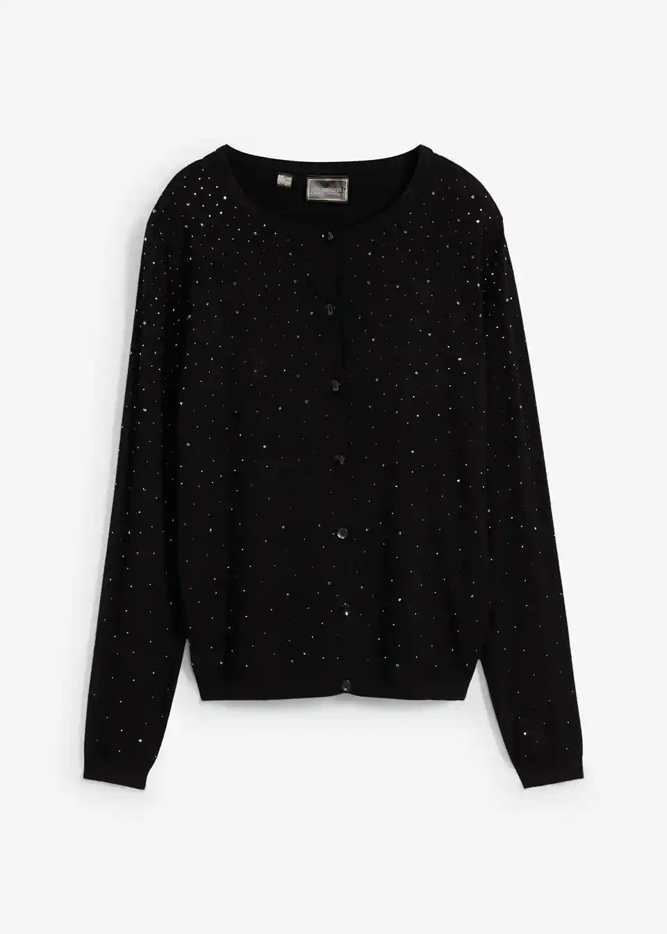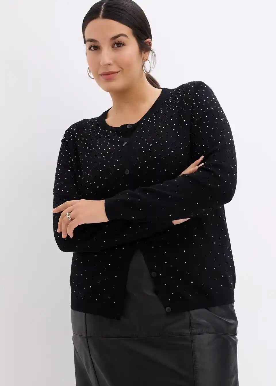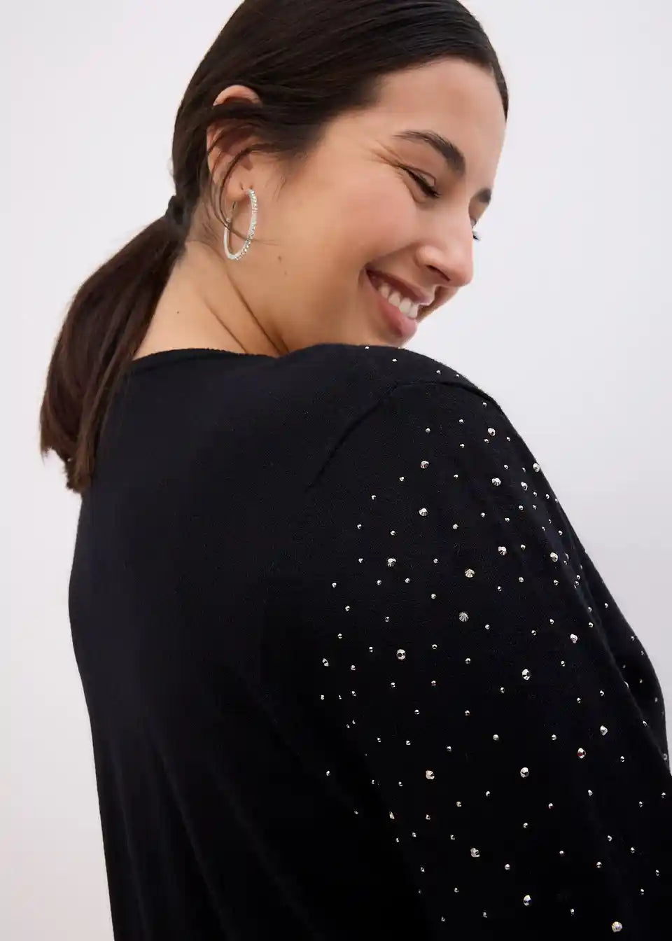 Elegantna pletena jopica iz mehkega viskoznega materiala z bleščečimi kamni