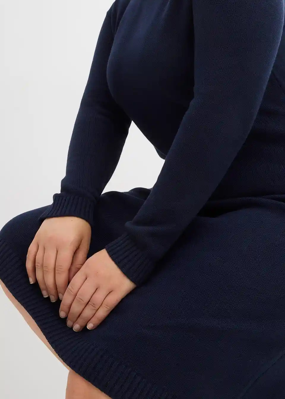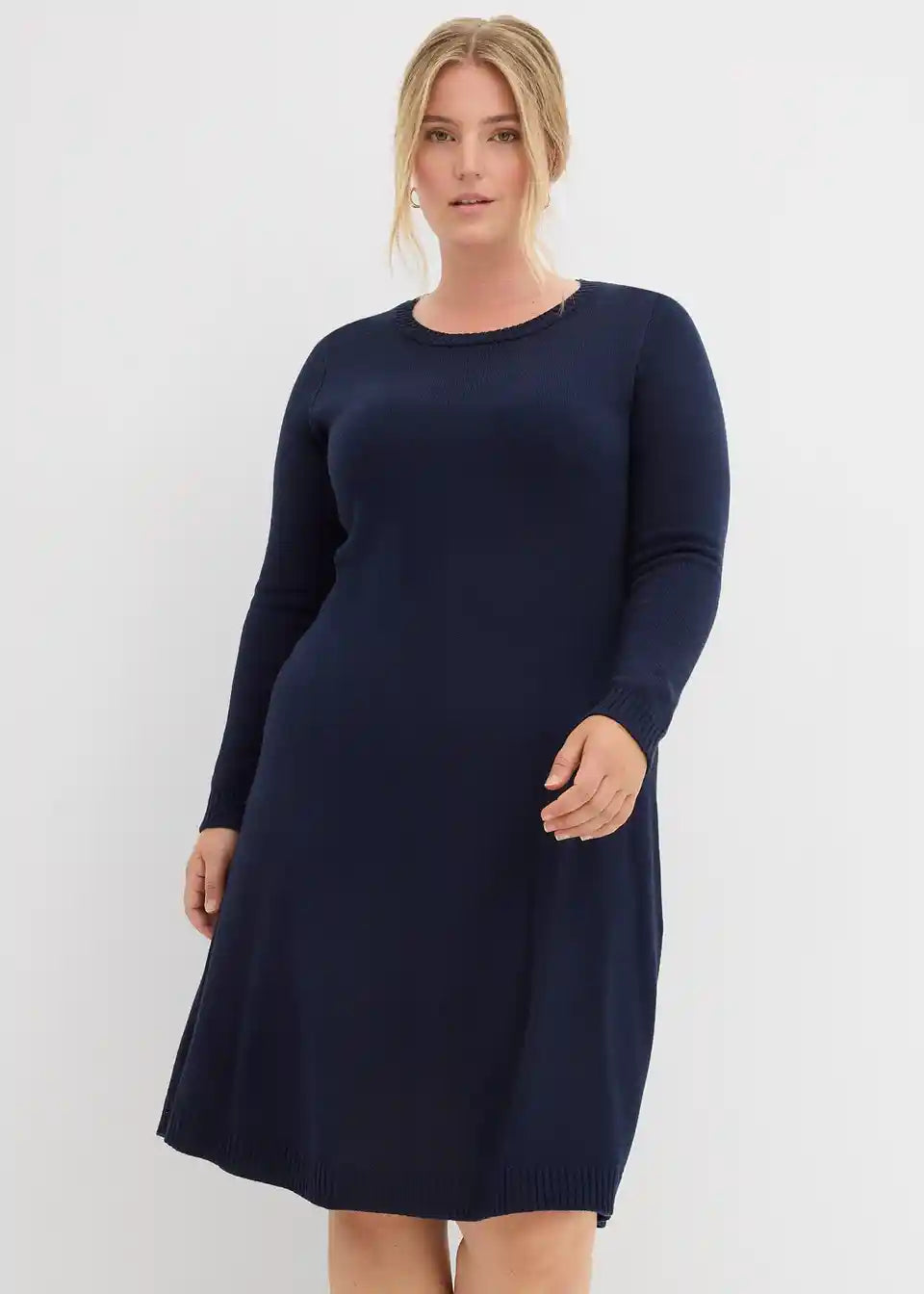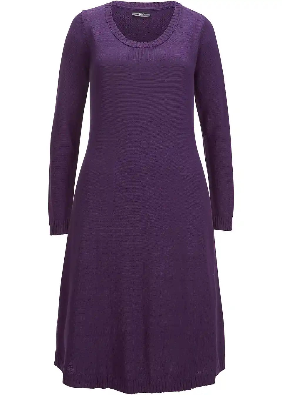 Vsestranska pletena obleka v razširjenem in po telesu padajočem kroju